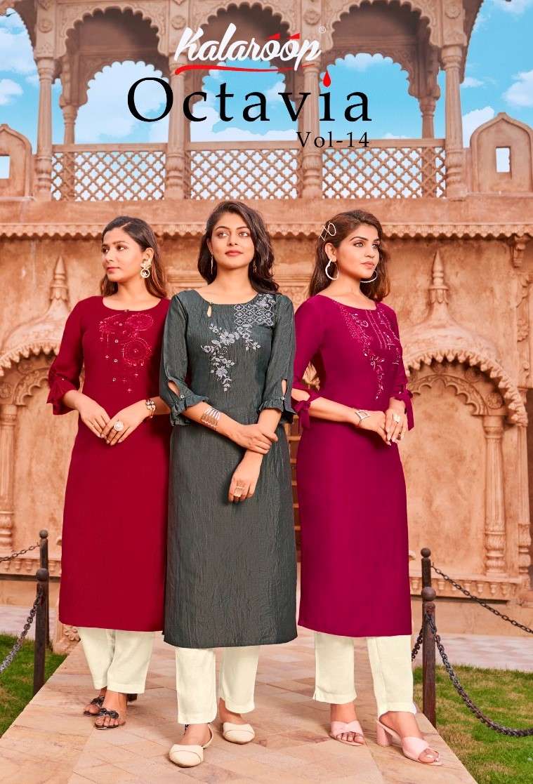 kalaroop present octavia vol 14 stitch straight kurti latest collection