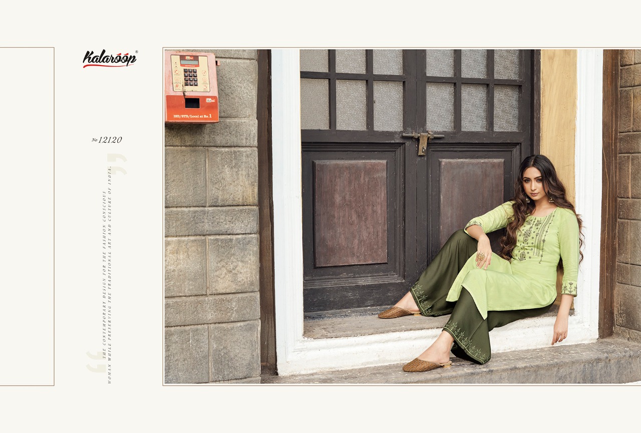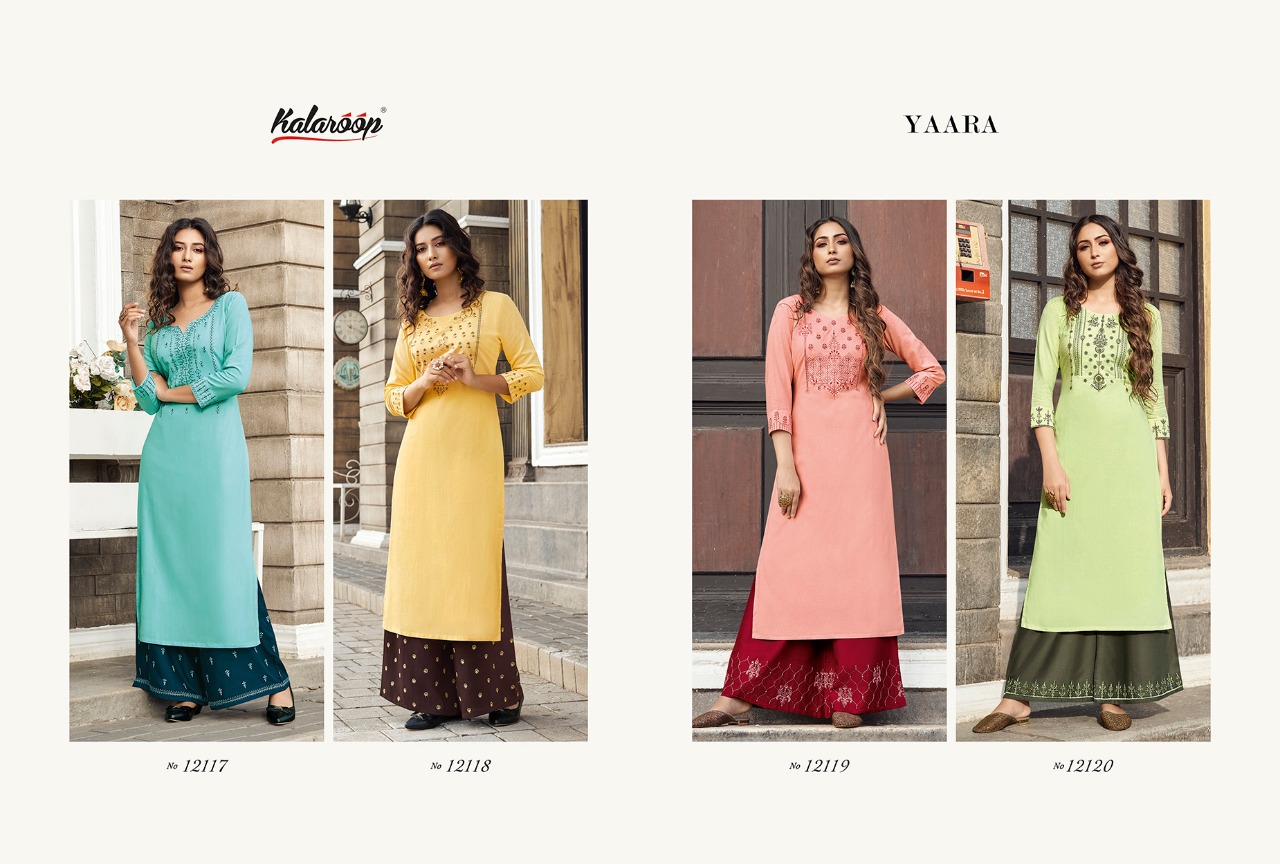 Kalaroop Present Yaara Rayon Work Long Top With Palazzo Collection