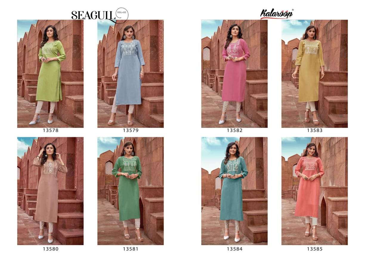 kalaroop seagull vol 5 embroidered work adorable kurtis