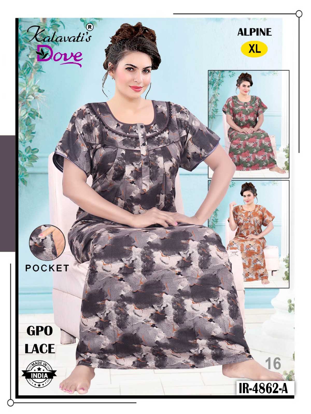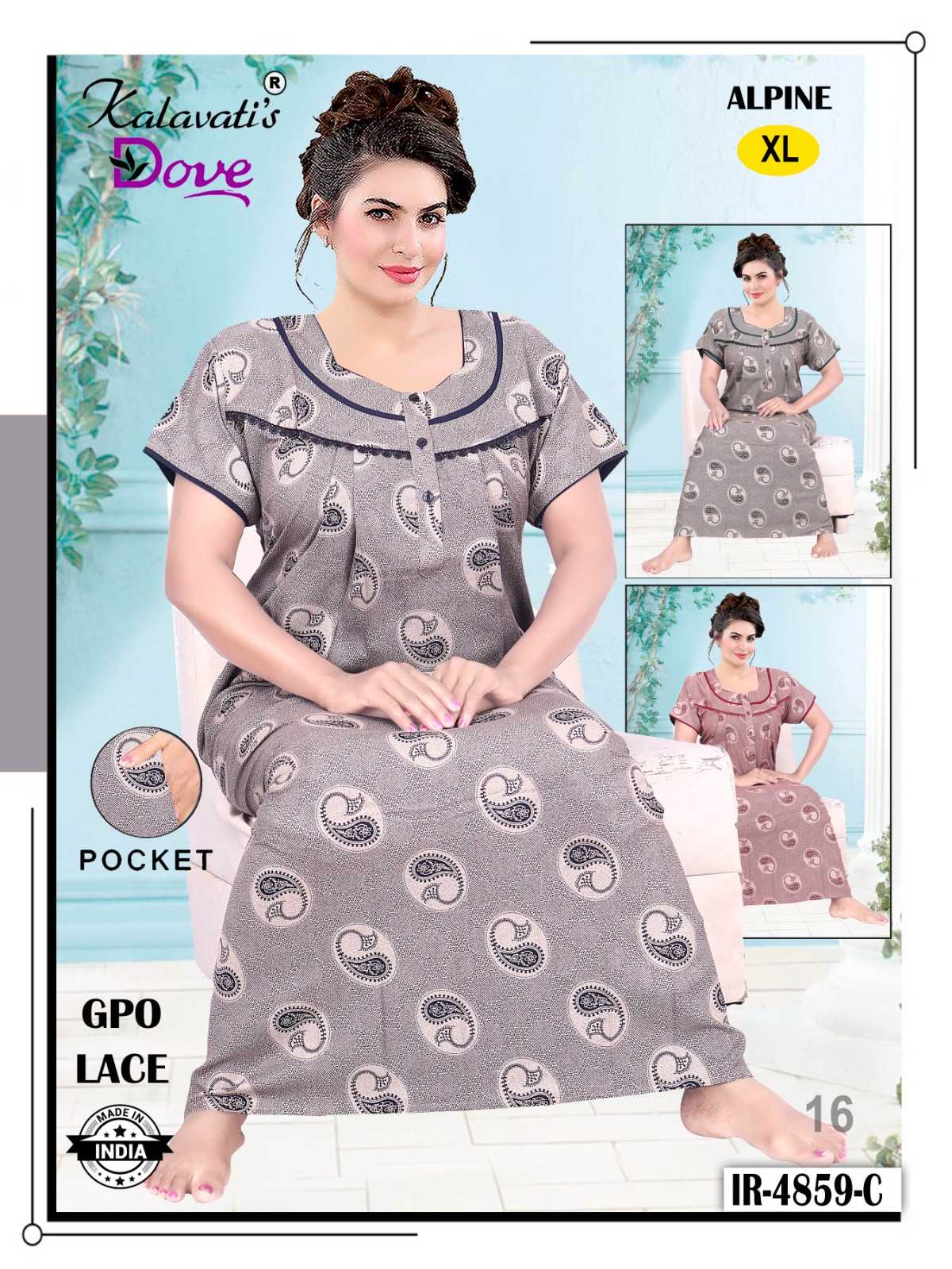 kalavati dove alpine cotton comfortable nighty with pocket women nighty collection