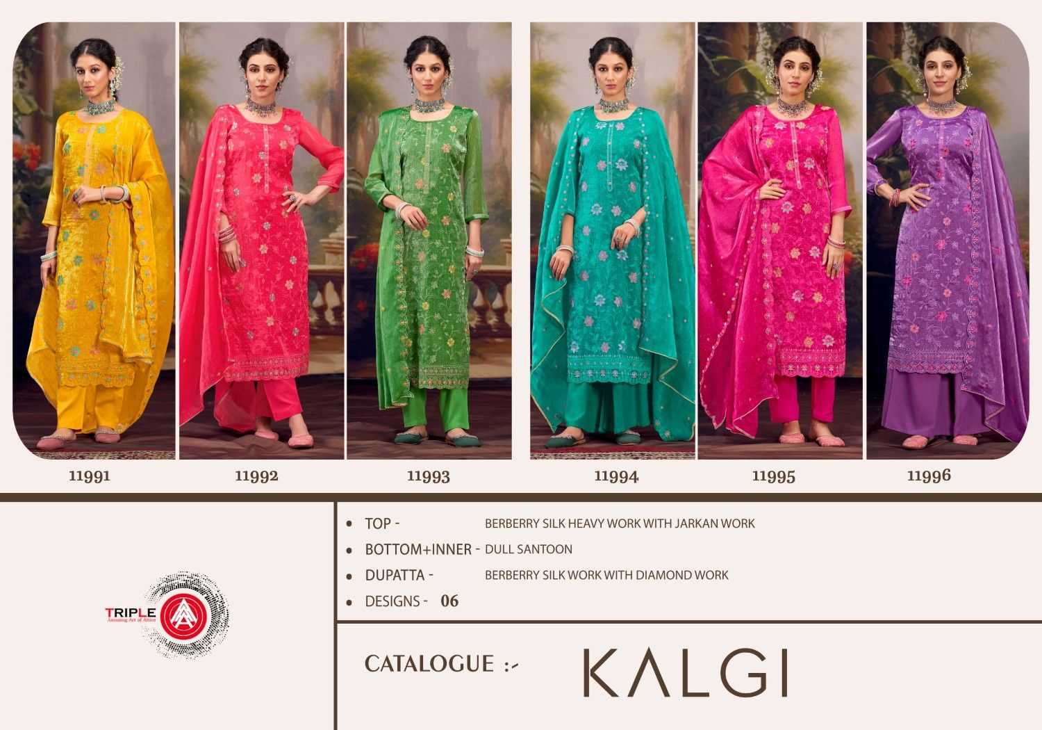 kalgi by triple a different colour berberry silk suits collection