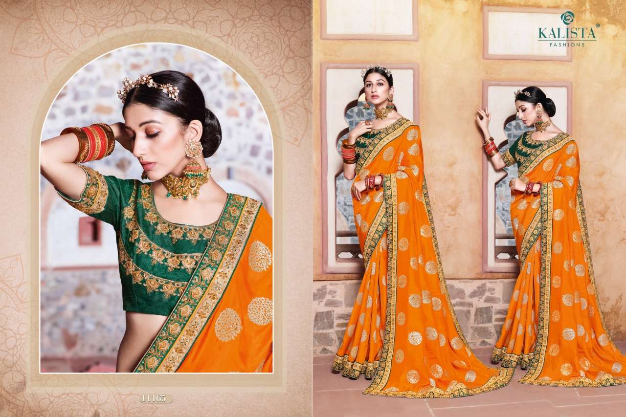 kalista kohinoor gold imported heavy viscose embroidery bridal sarees