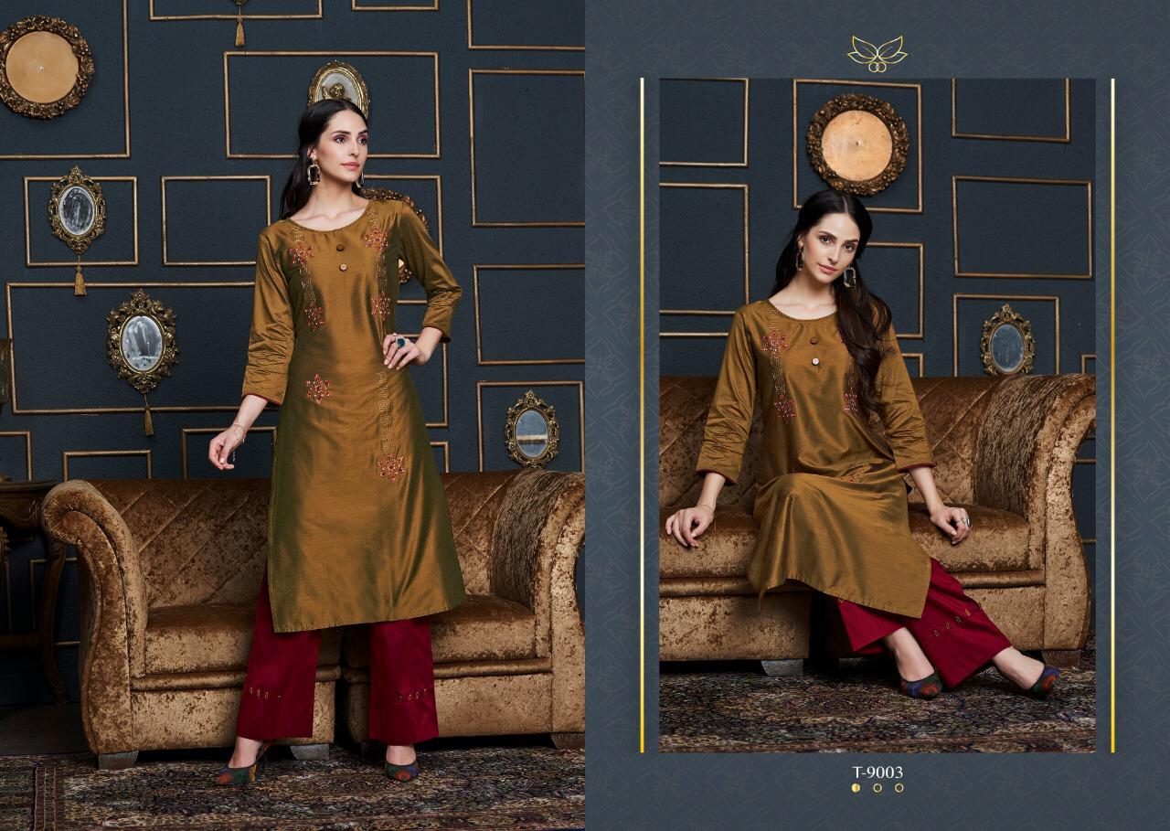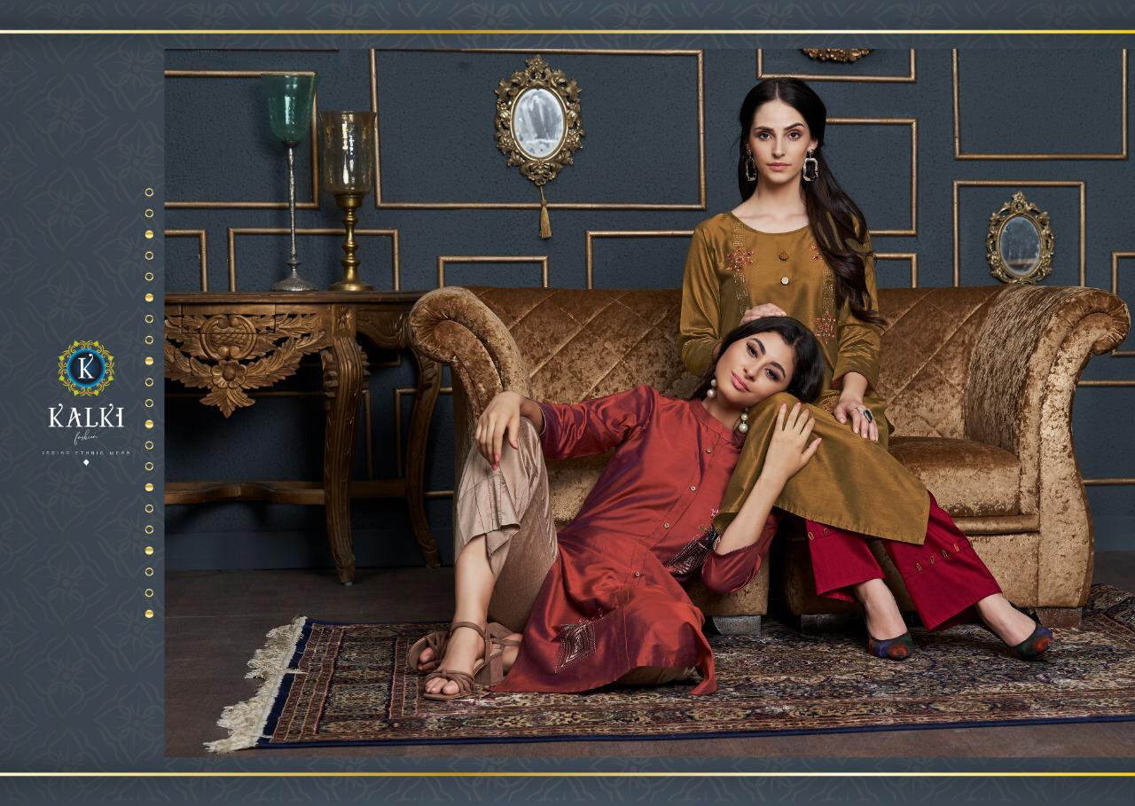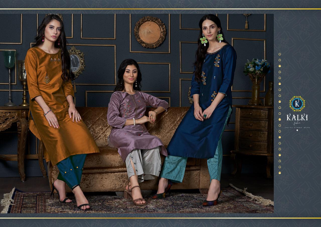 Kalki Trendz Tripling Chanderi Cotton Silk Kurti And Plazzo Concept