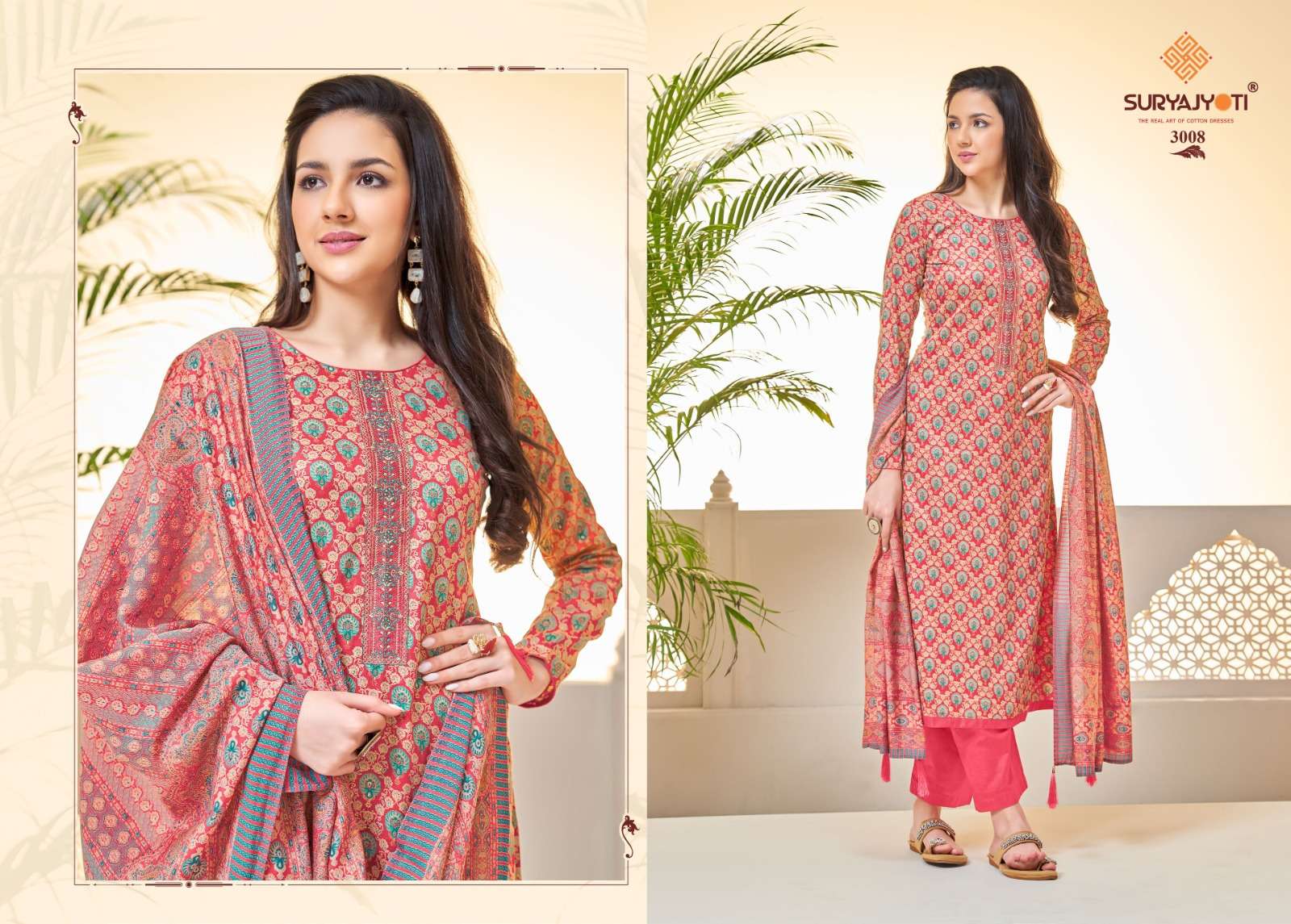 Suryajyoti Cotton Presents Latest Collection Launched on 23-08-2023. Presenting Beautiful collection of 8 PCS with Unstitched .