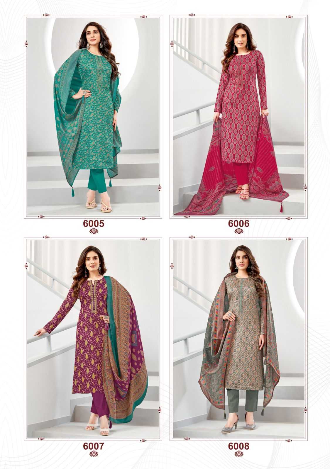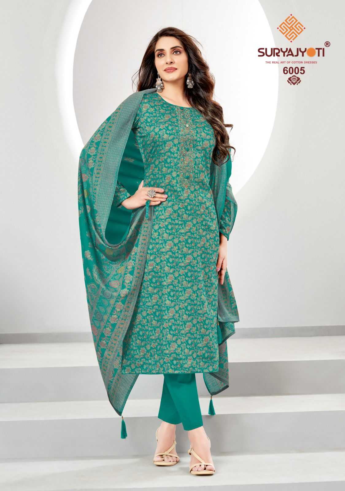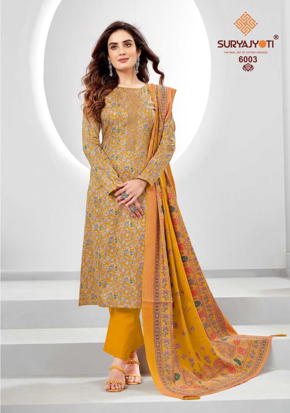 DEAR CUSTOMER WELCOME TO SURYAJYOTI LAUNCHING OF SURYAJYOTI’S NEW FANCY PRINT CATALOG 📕CATALOGUE- KALKI VOL-6 👚TOP- JAAM SATIN DISCHARGE PRINT WITH FOIL AND NECK EMBROIDERY 👖BOTTOM- PURE COTTON 🧣DUPATTA- PURE MODAL SILK DISCHARGE PRINT WITH TESSELS CUT- 2.5-2.5–2:25 RATE- 750/ PACKING- EXCLUSIVE POUCH PACK WITH BAG🧳 |