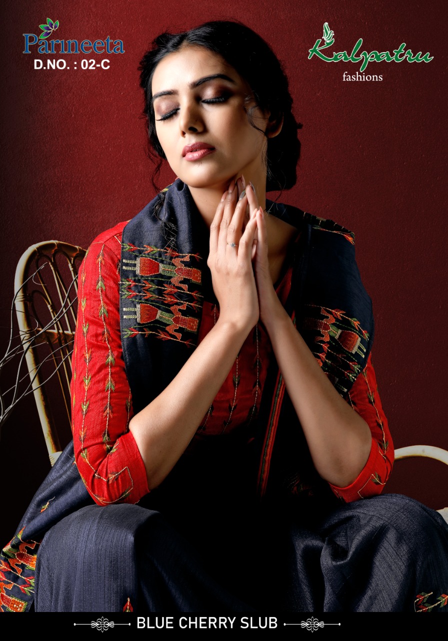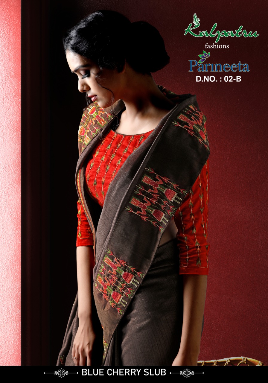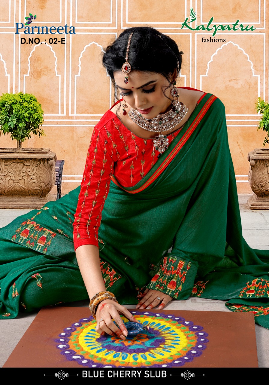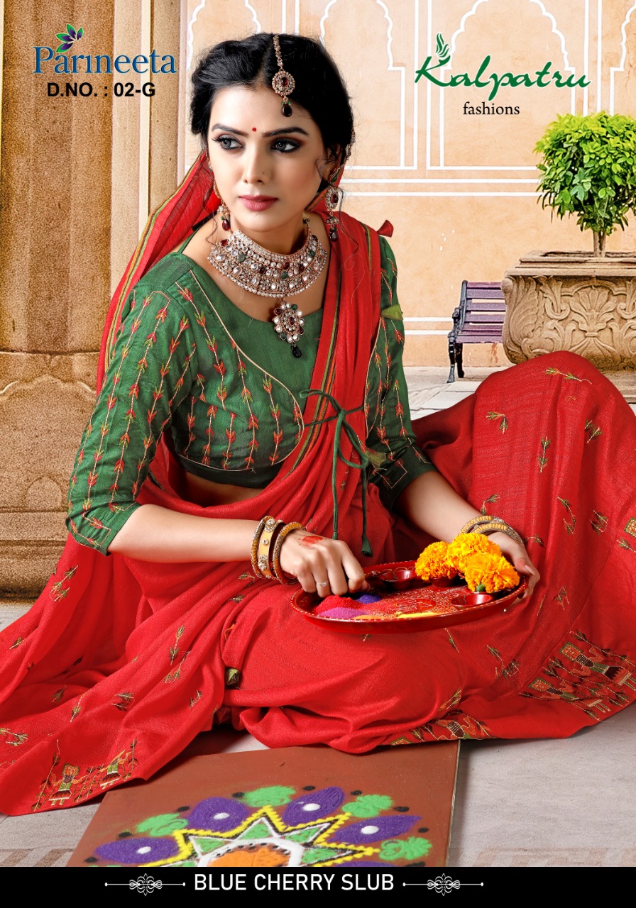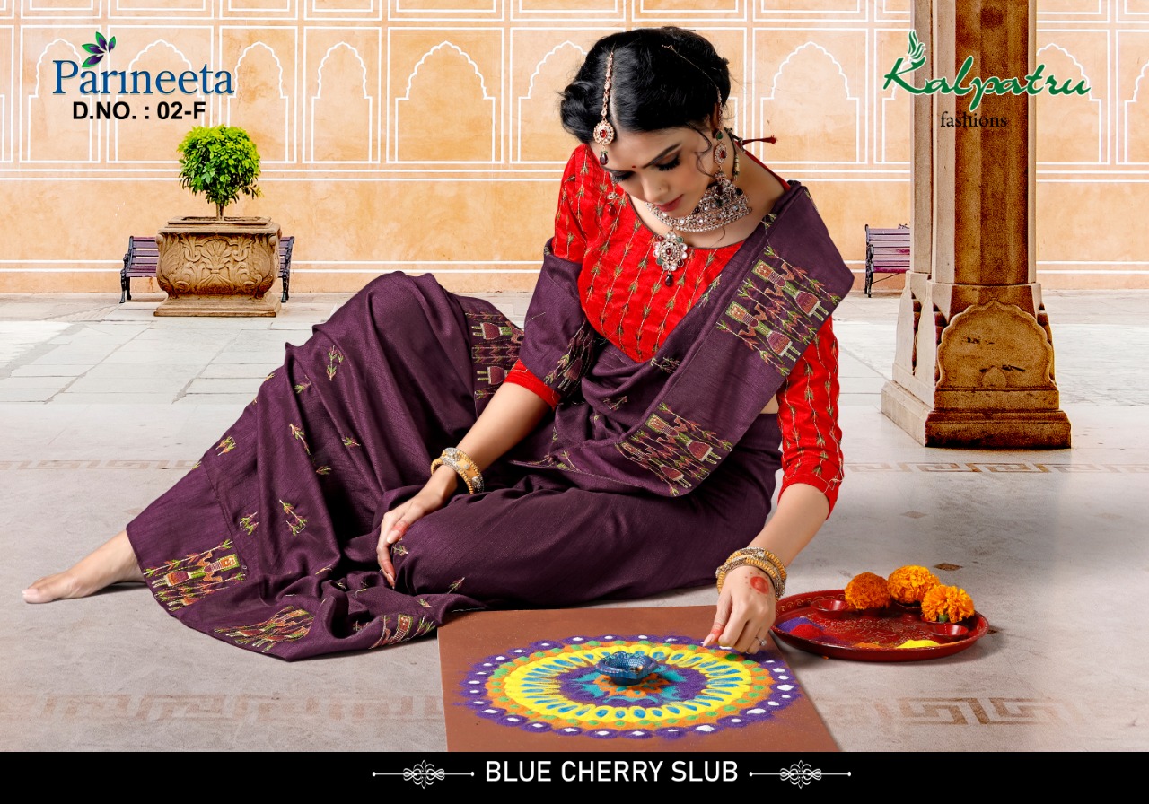 Kalpatru Fashion Pareenita Blue Cherry Slub Heavy Look Designer Saree Wholesale Price
