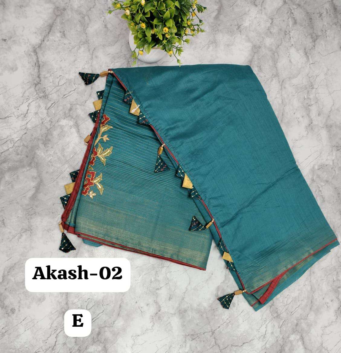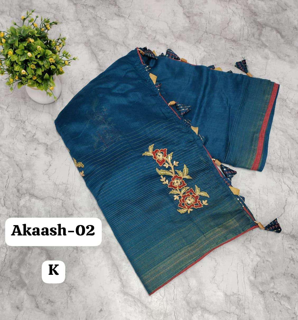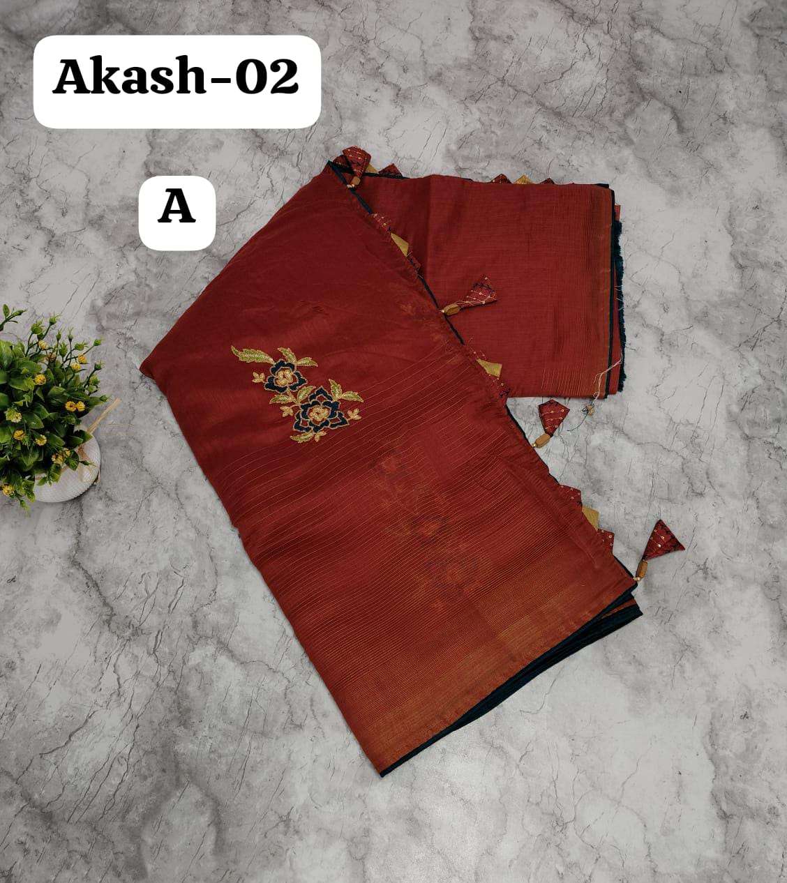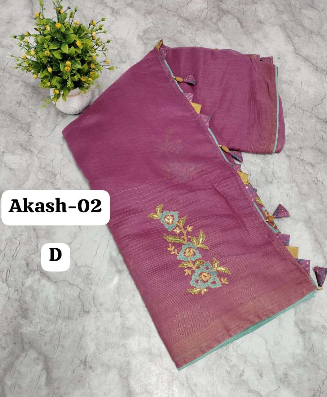 Akash 02 no. -451/- Fabric: Spun cotton Concept: Beautiful embroidery work saree with jari lining Blouse: Contrast work blouse Packing :22-09-2023📌 |