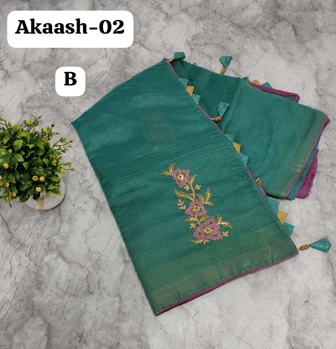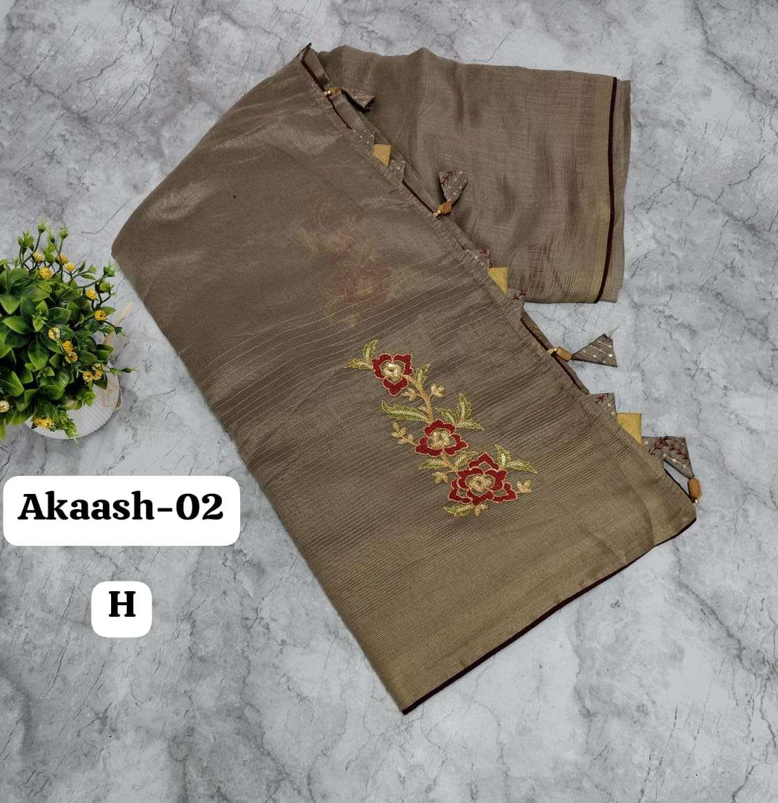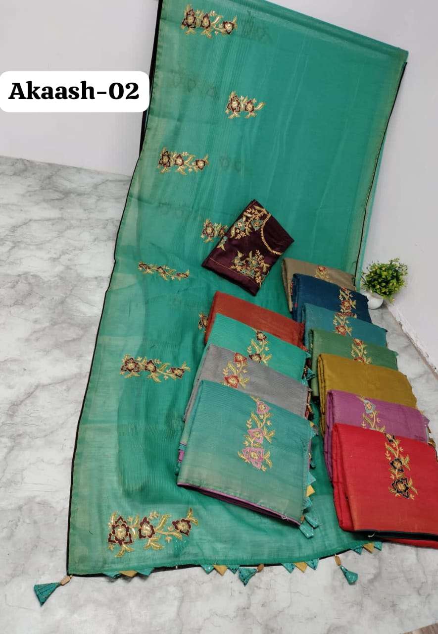 Akash 02 no. -451/- Fabric: Spun cotton Concept: Beautiful embroidery work saree with jari lining Blouse: Contrast work blouse Packing :22-09-2023📌 |