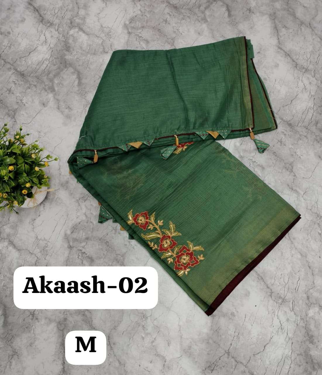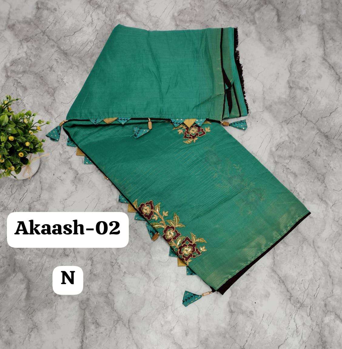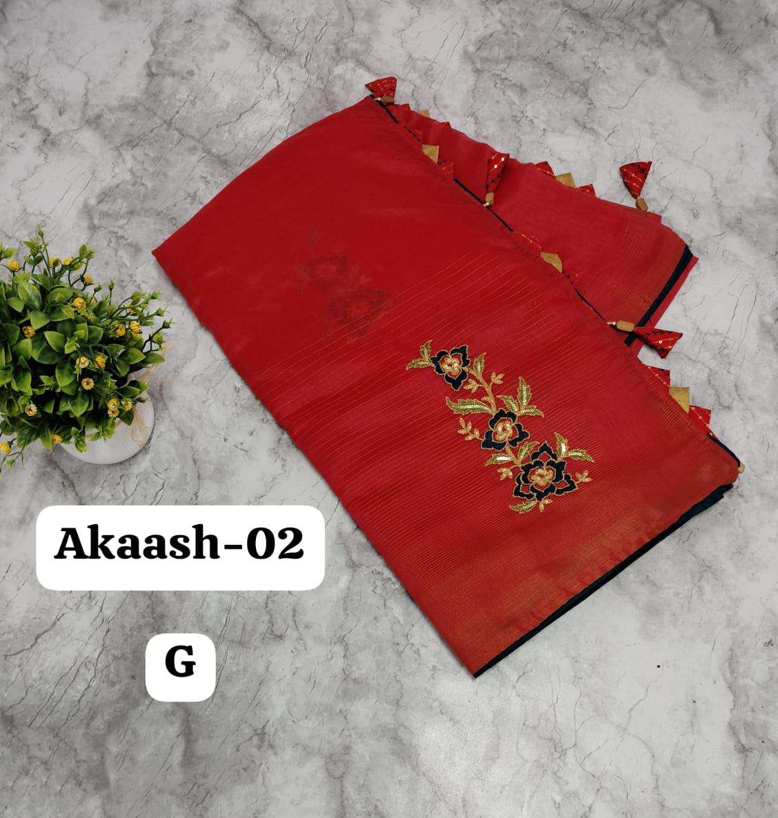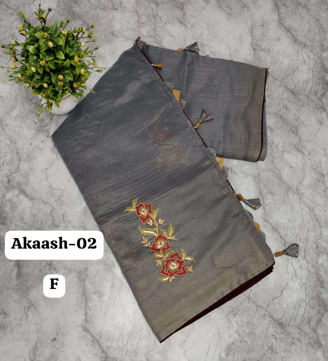 Akash 02 no. -451/- Fabric: Spun cotton Concept: Beautiful embroidery work saree with jari lining Blouse: Contrast work blouse Packing :22-09-2023📌 |