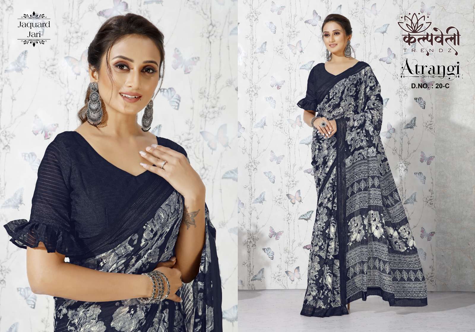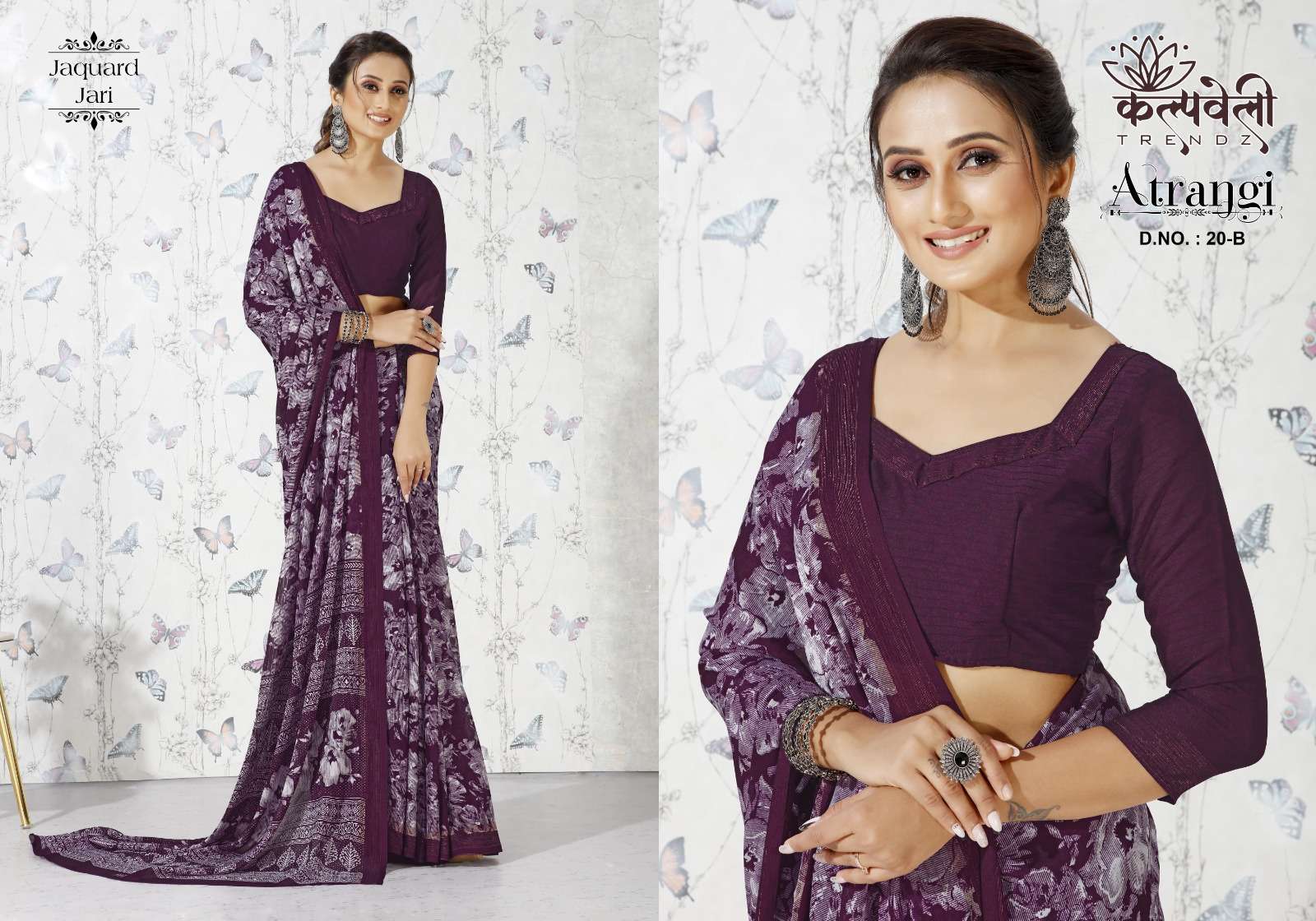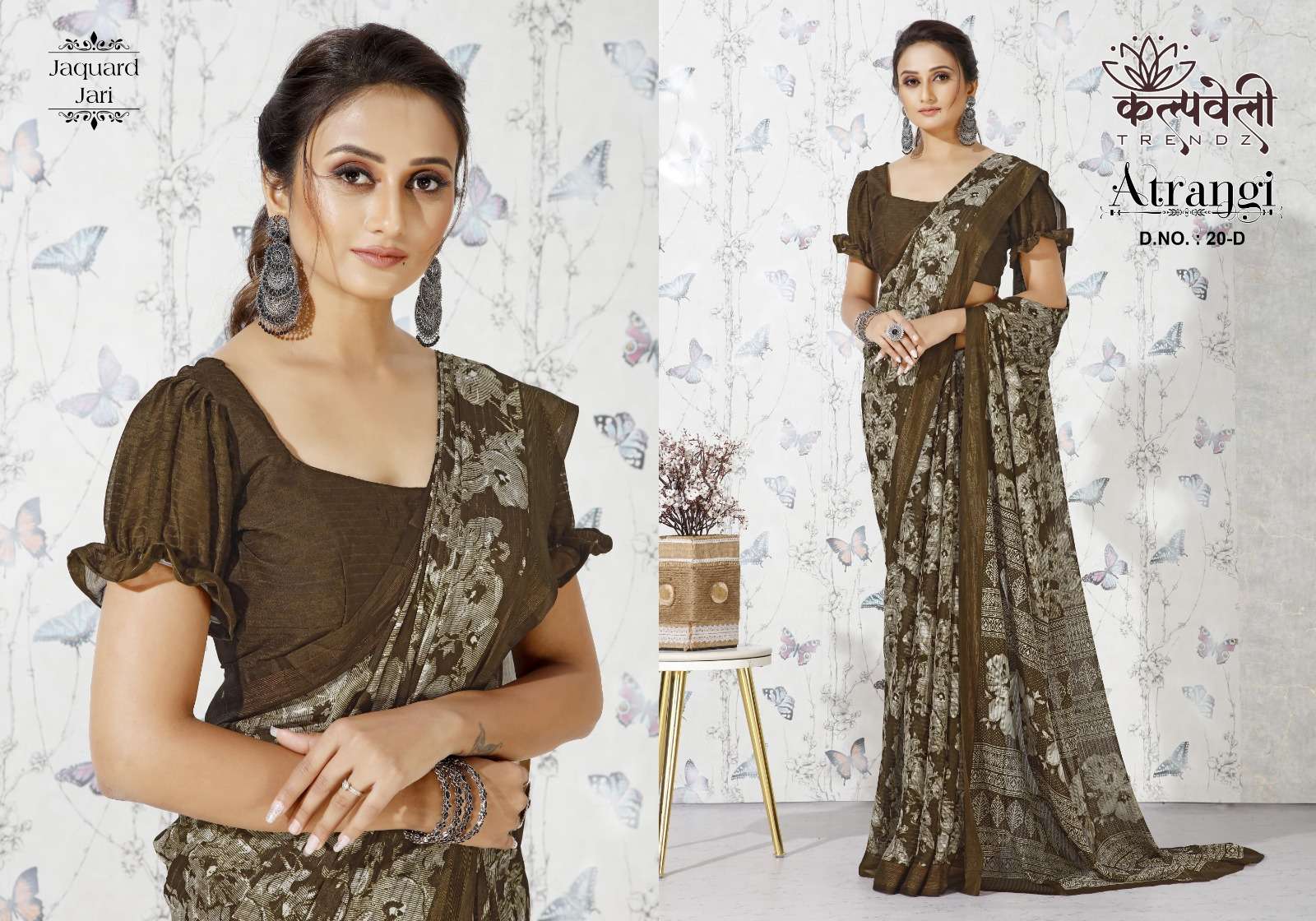 Atrangi 20 no. -511/- Concept: Beautiful jacquard jari design Blouse:*matching print blouse*