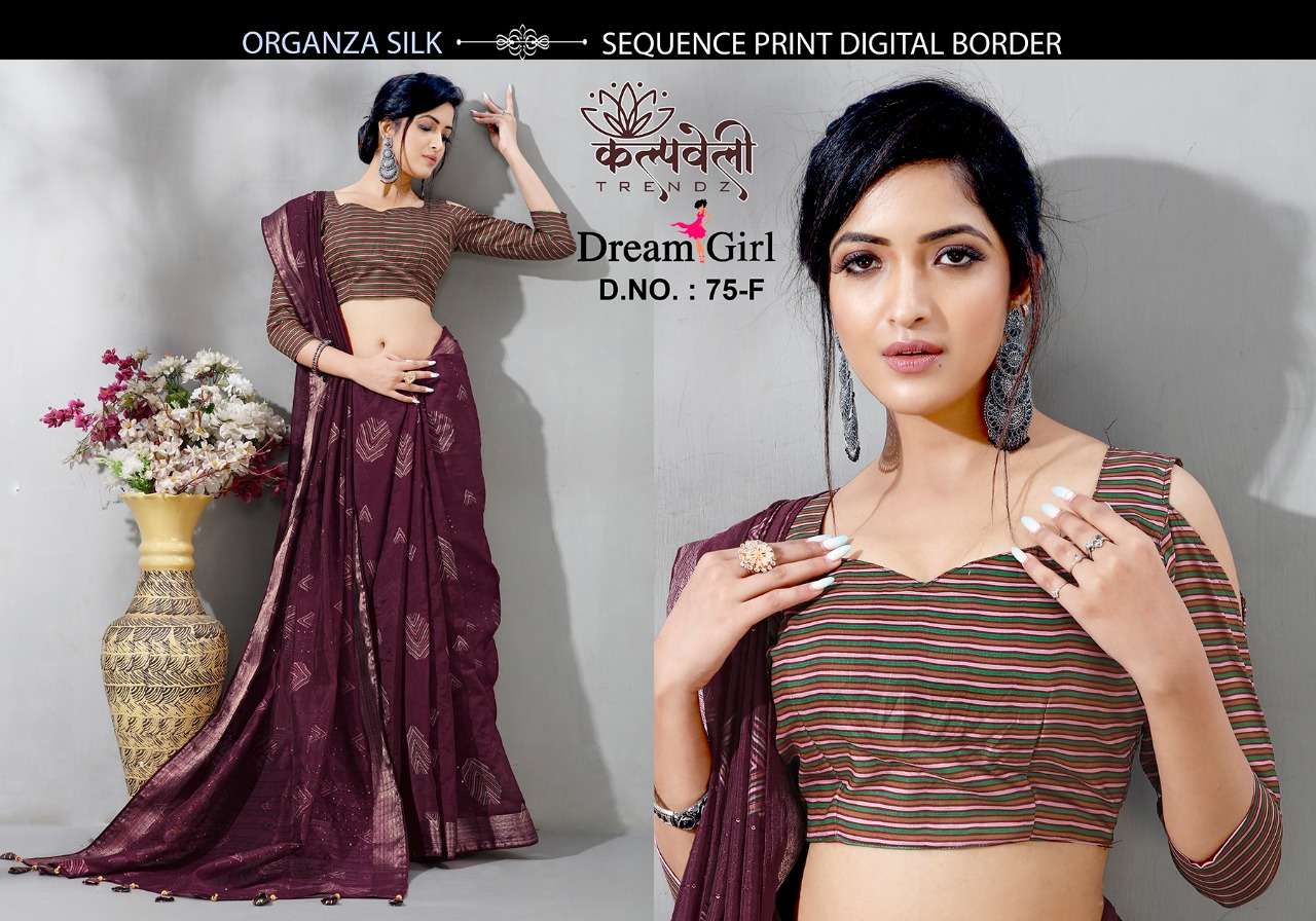kalpavelly dreamgirl 75 design organza silk saris wholesale