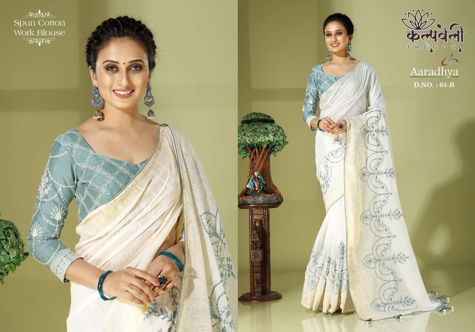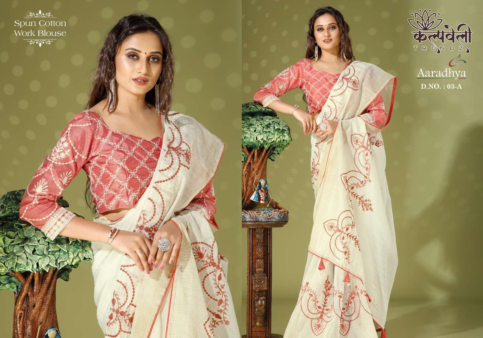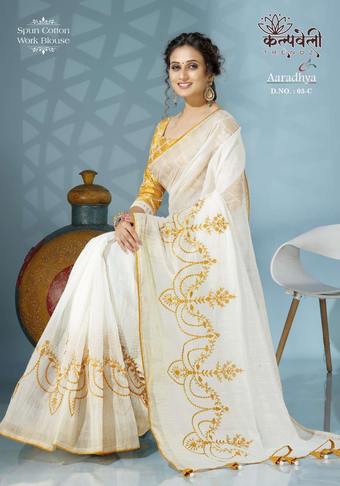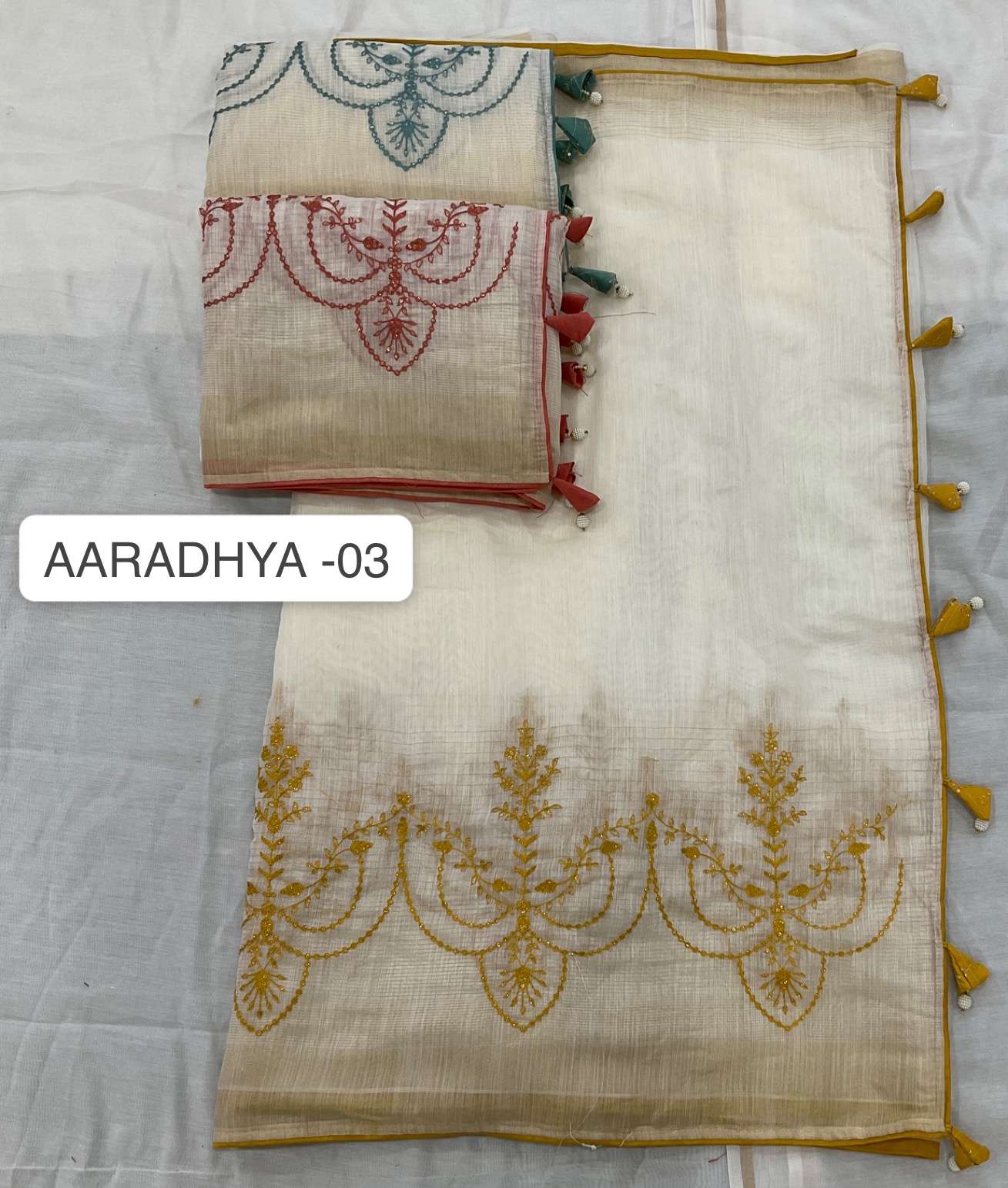 Aradhya 03 no. -1080/- Fabric: Spun cotton Concept: Thread flower work Blouse: Work blouse 3 different 🎨colors available |
