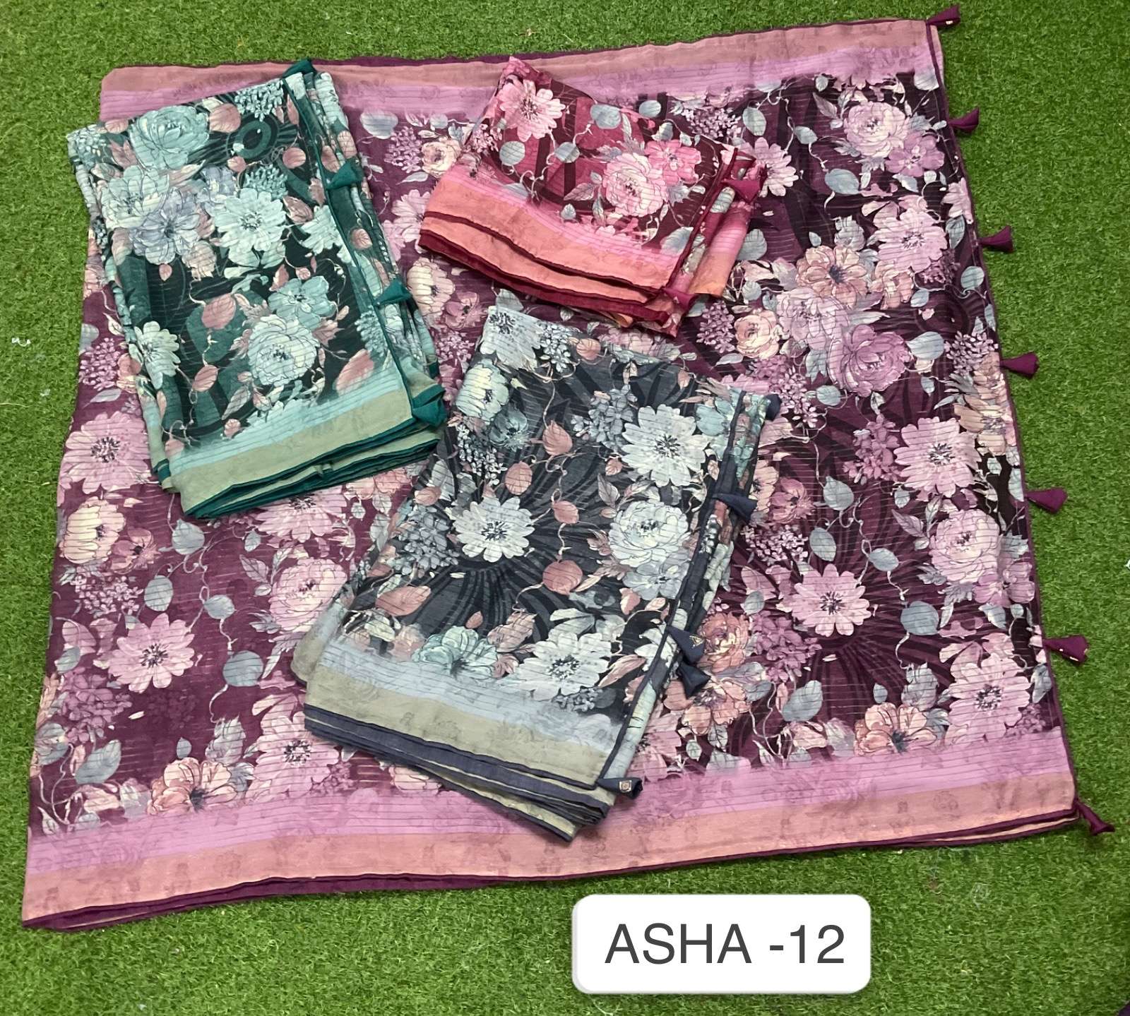 Asha 12 no. -580/- Fabric: Georgette fabric Concept: Big size flowers print design Blouse:Butti blouse Packing :04.09.2023📌 |