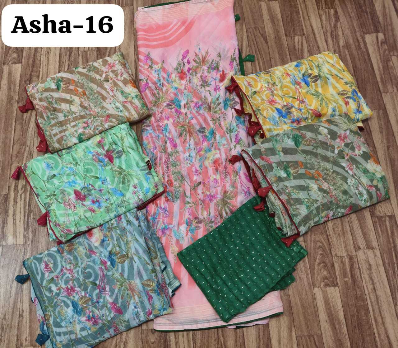 Asha 16 no. -580/- Fabric: mono georgette Concept: New flowers print with jari lining Blouse:fancy blouse 6 color🎨 available