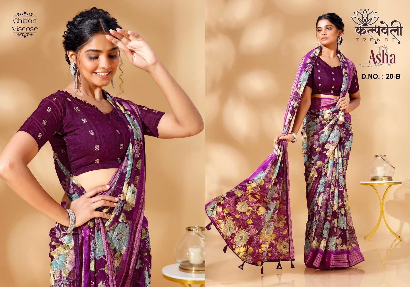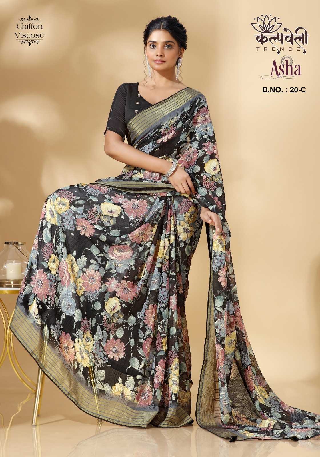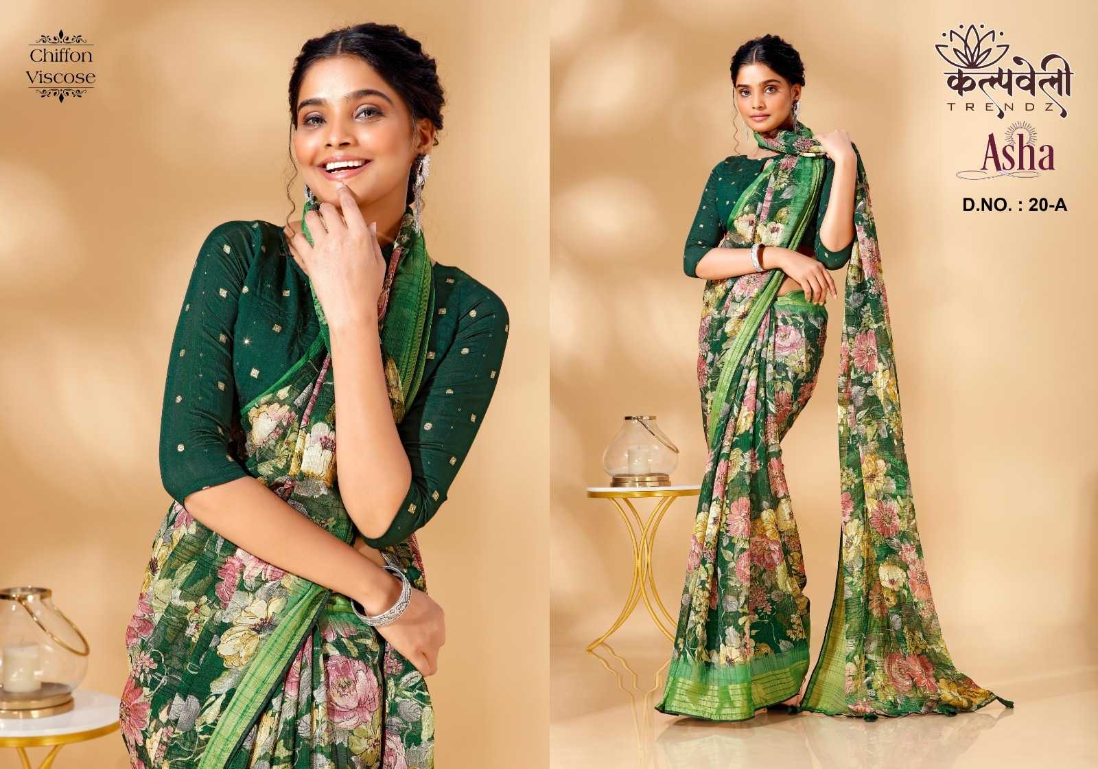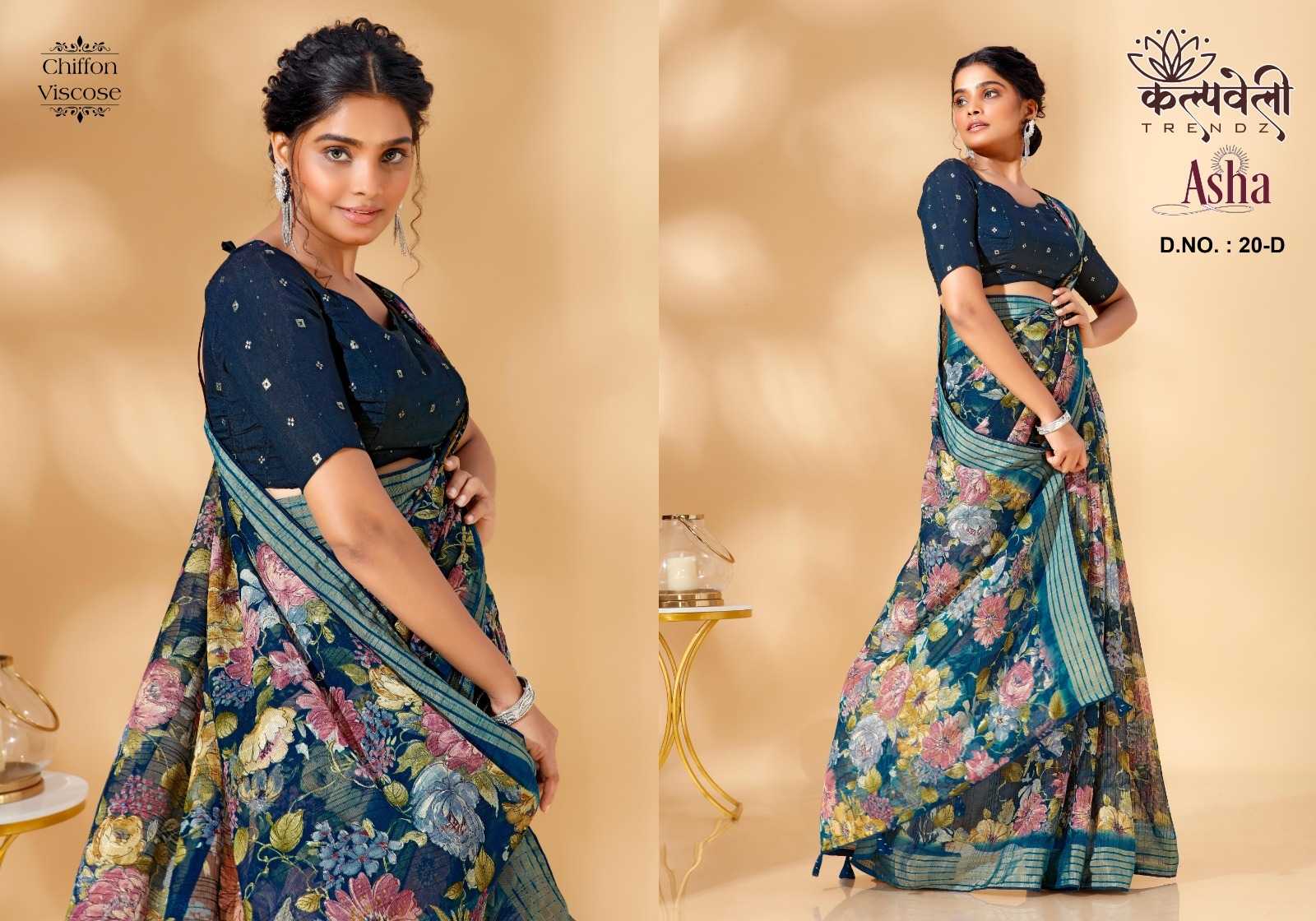 kalpavelly trendz asha 20 flower print sarees with fancy blouse