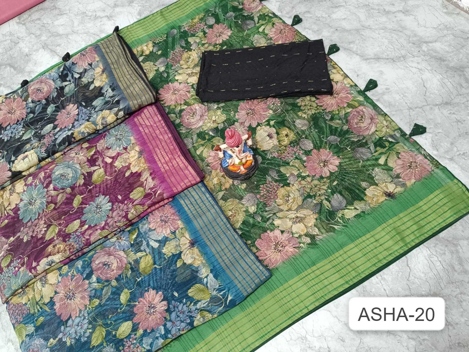 Asha 20 no. -580/- Fabric: chiffon viscose Concept: New flowers print with jari lining Blouse:fancy blouse 4 color🎨 available