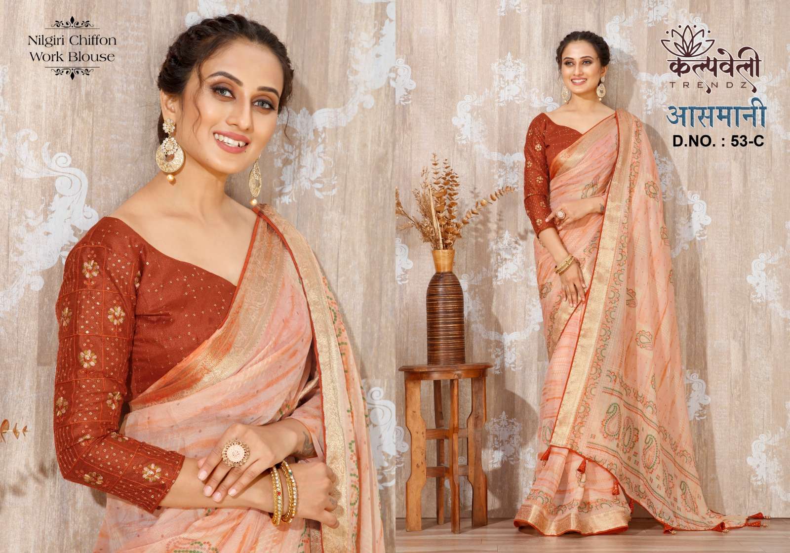 kalpavelly trendz ashmani 53 fancy print designs chiffon sarees