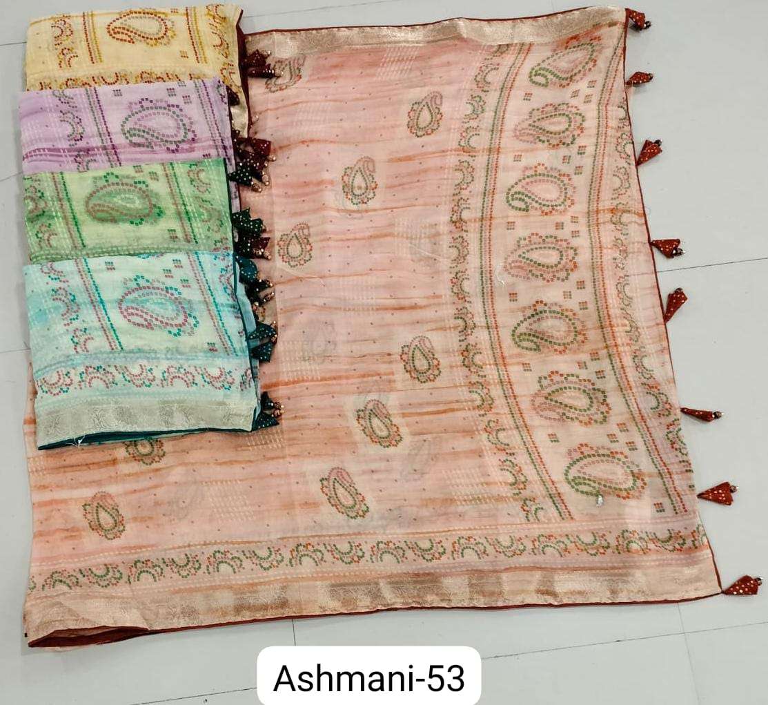 Asmani 53no. -875/- Fabric: Nilgiri chiffon Concept: print design on chiffon saree with light color🎨 matching Blouse:work blouse