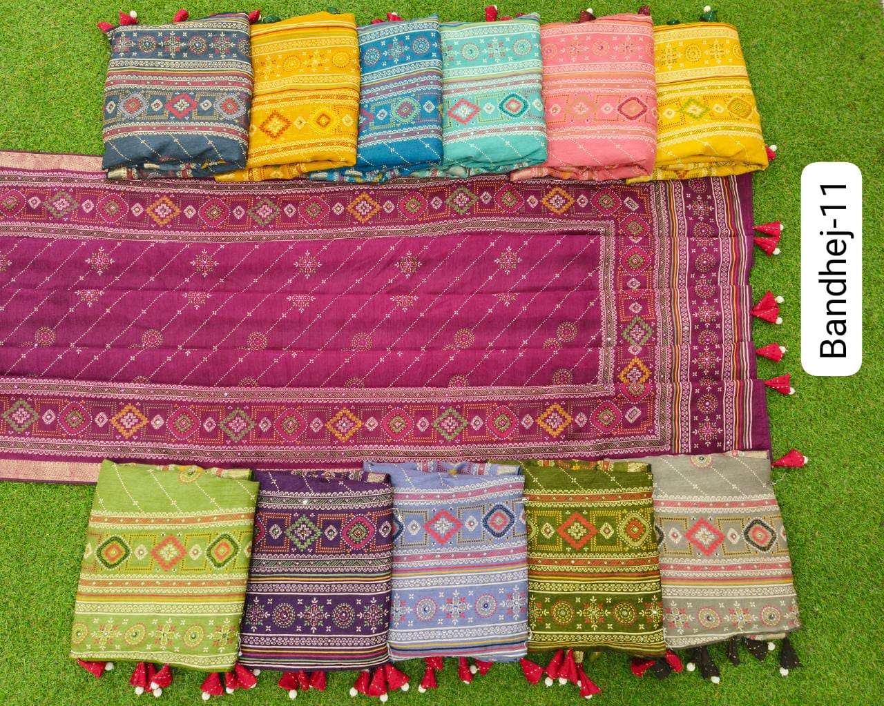 kalpavelly trendz bandhej 11 fancy dola silk saree bundle