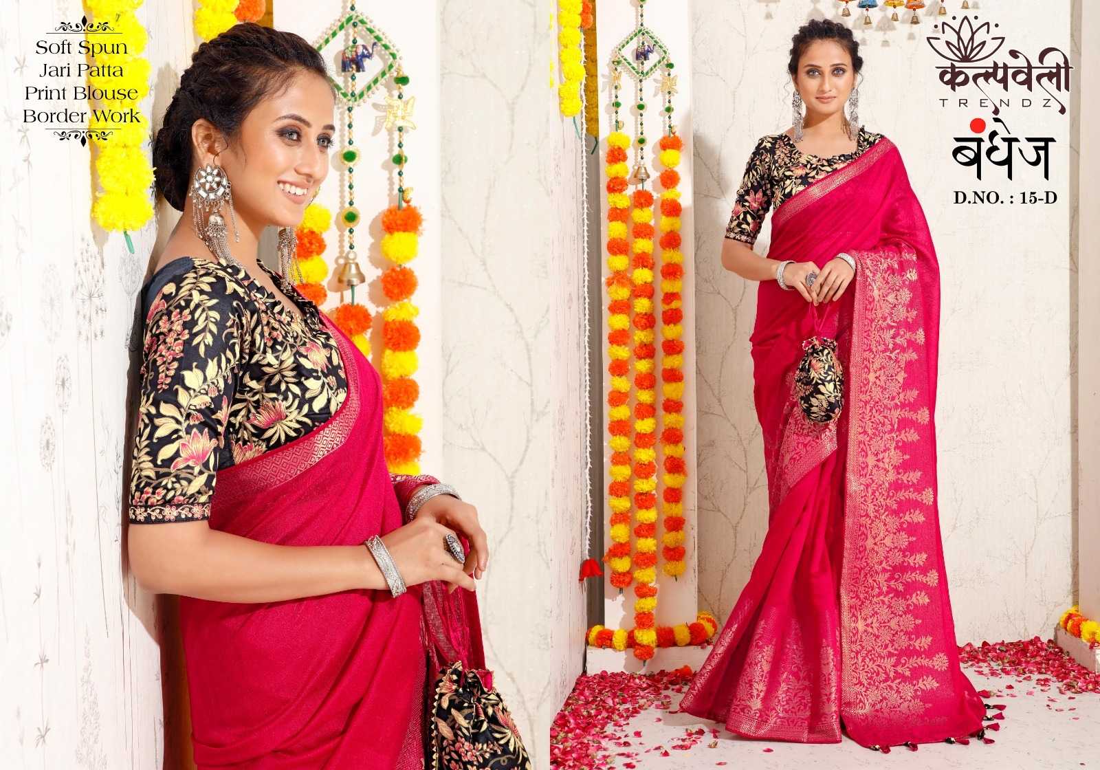 kalpavelly trendz bandhej 15 amazing diwali collection beautiful saree with blouse purse