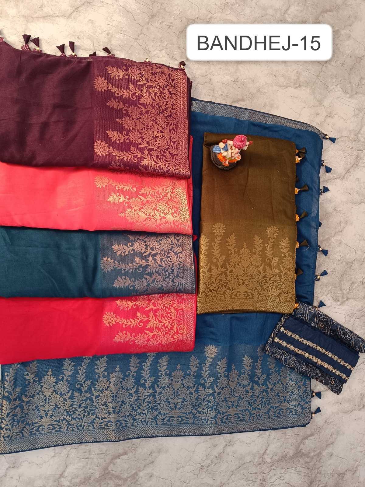bandhej 15 no. -931/- Fabric: soft Spun Concept: Jacquard design Blouse:print blouse whit purse👝 Packing : 25/10/2023 📌 |