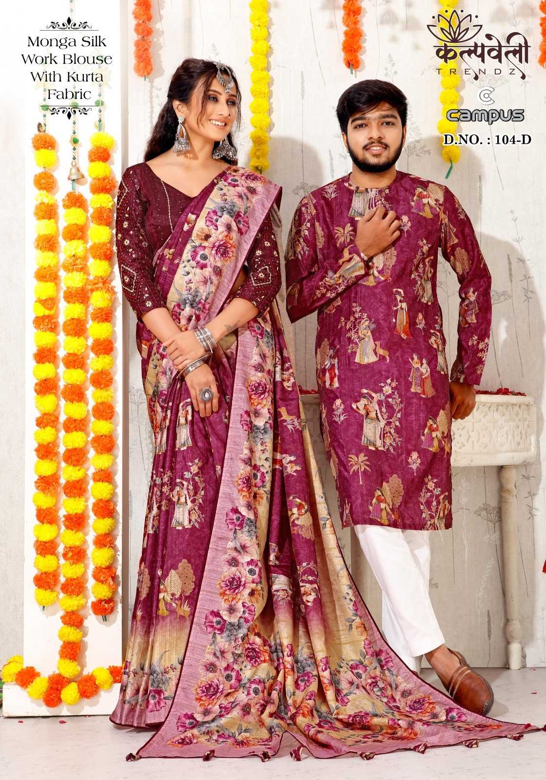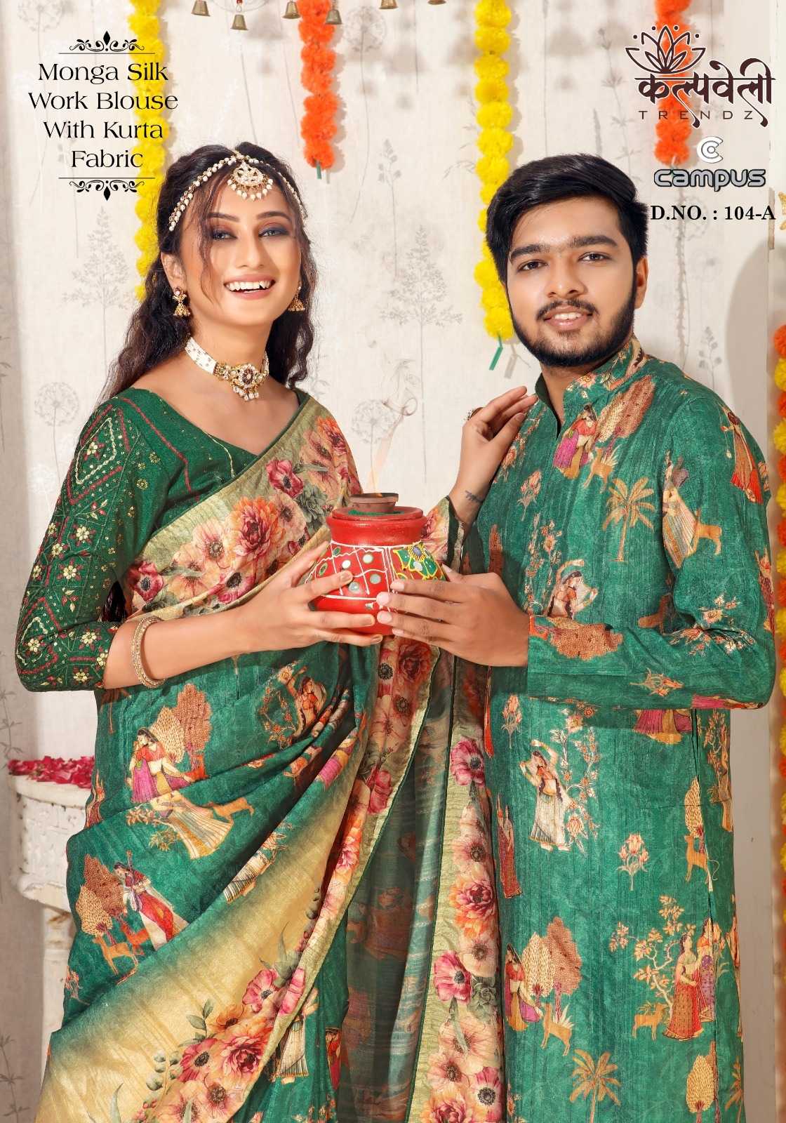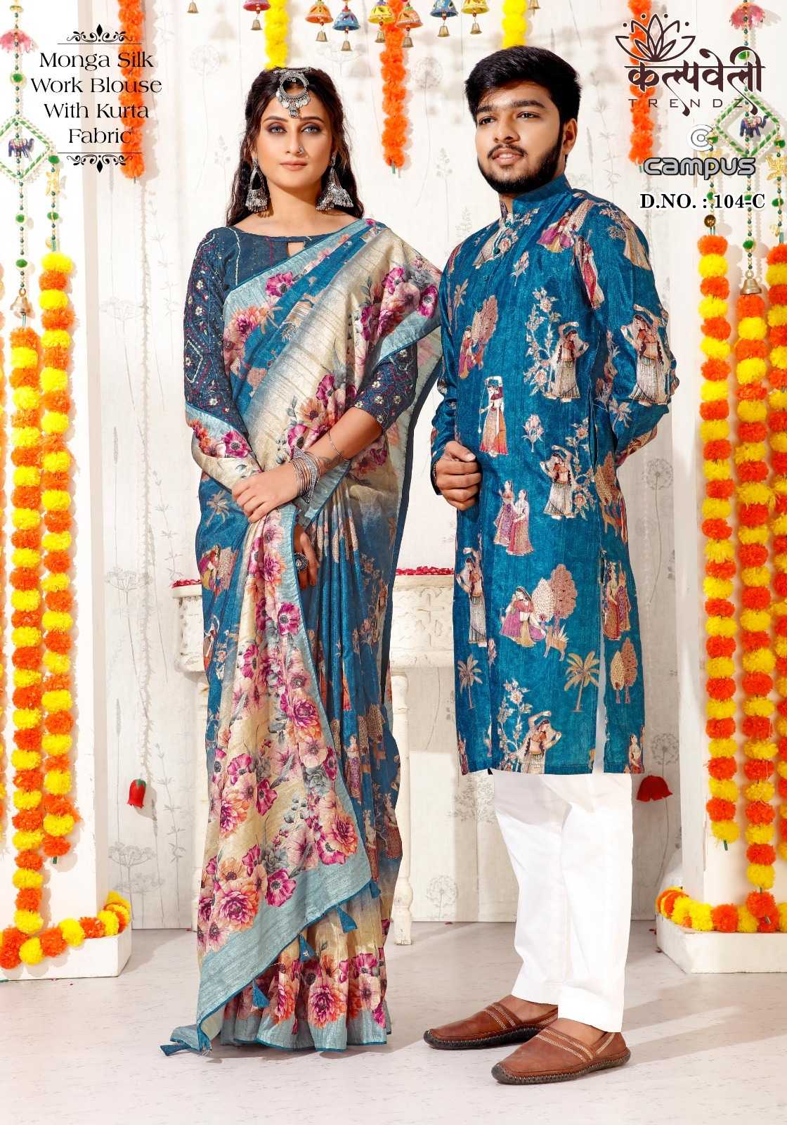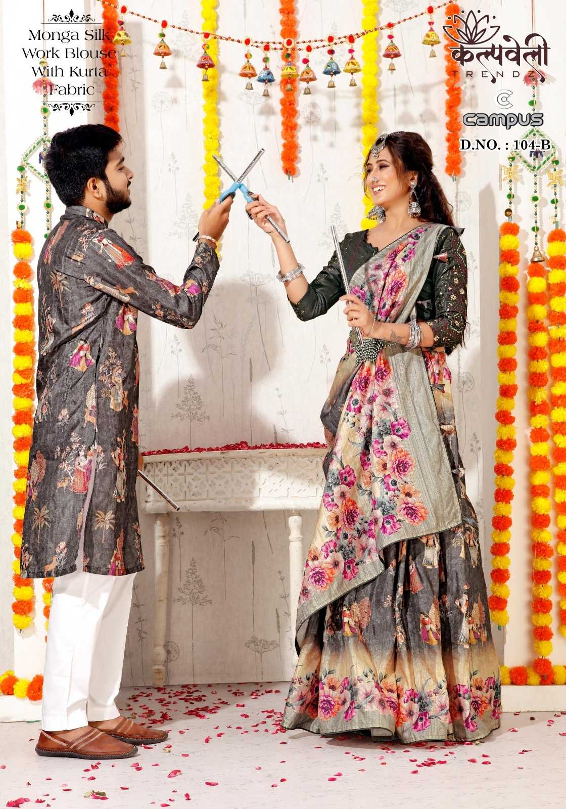 kalpavelly trendz campus 104 fancy silk saree with unstitch kurta for couples navratri wear
