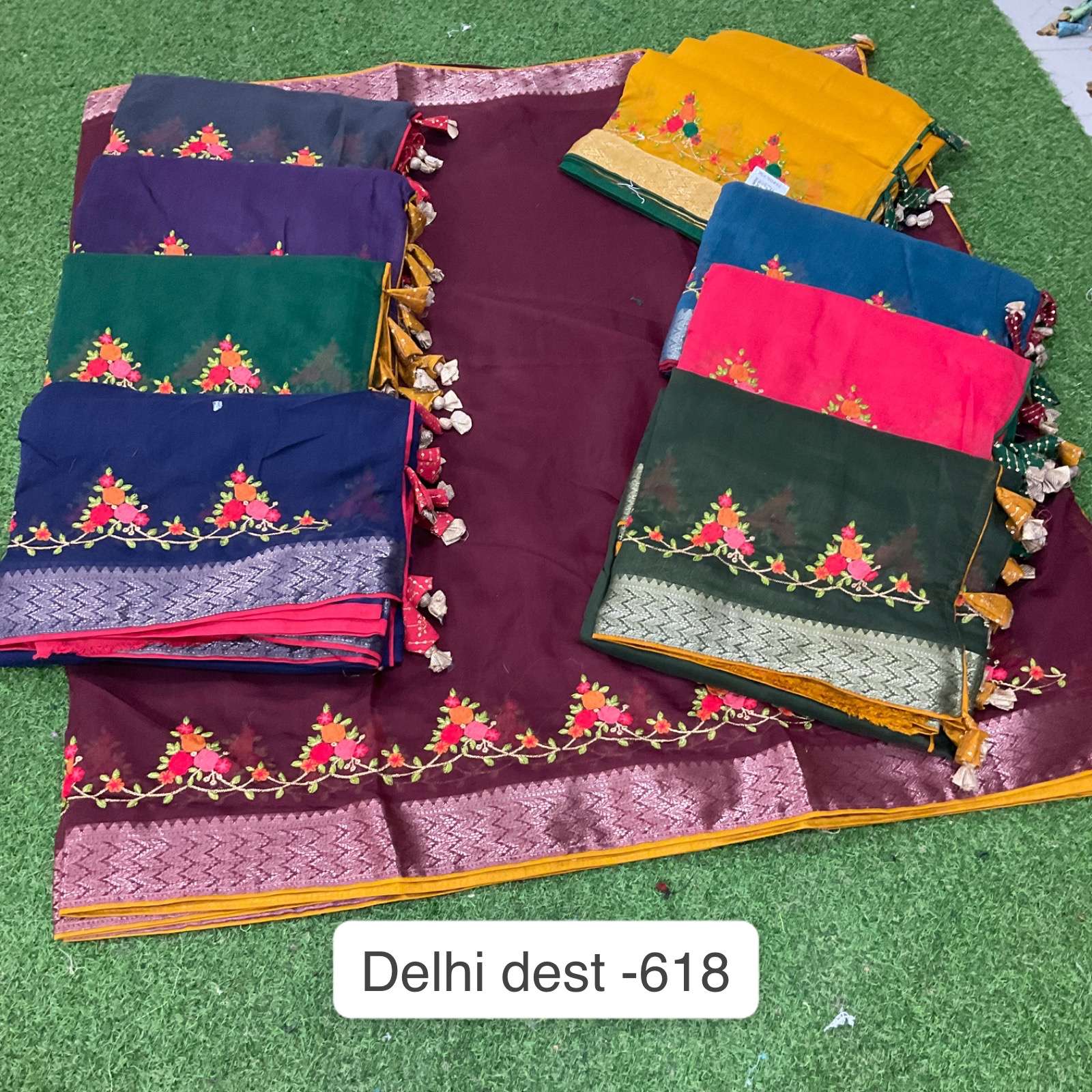 Delhi test 618 no. -950/- Fabric: Spun cotton Concept: Exclusive embroidery work on this saree Beautiful✨ color 🎨 available Blouse: Work blouse Packing : 02.09.2023📌 |