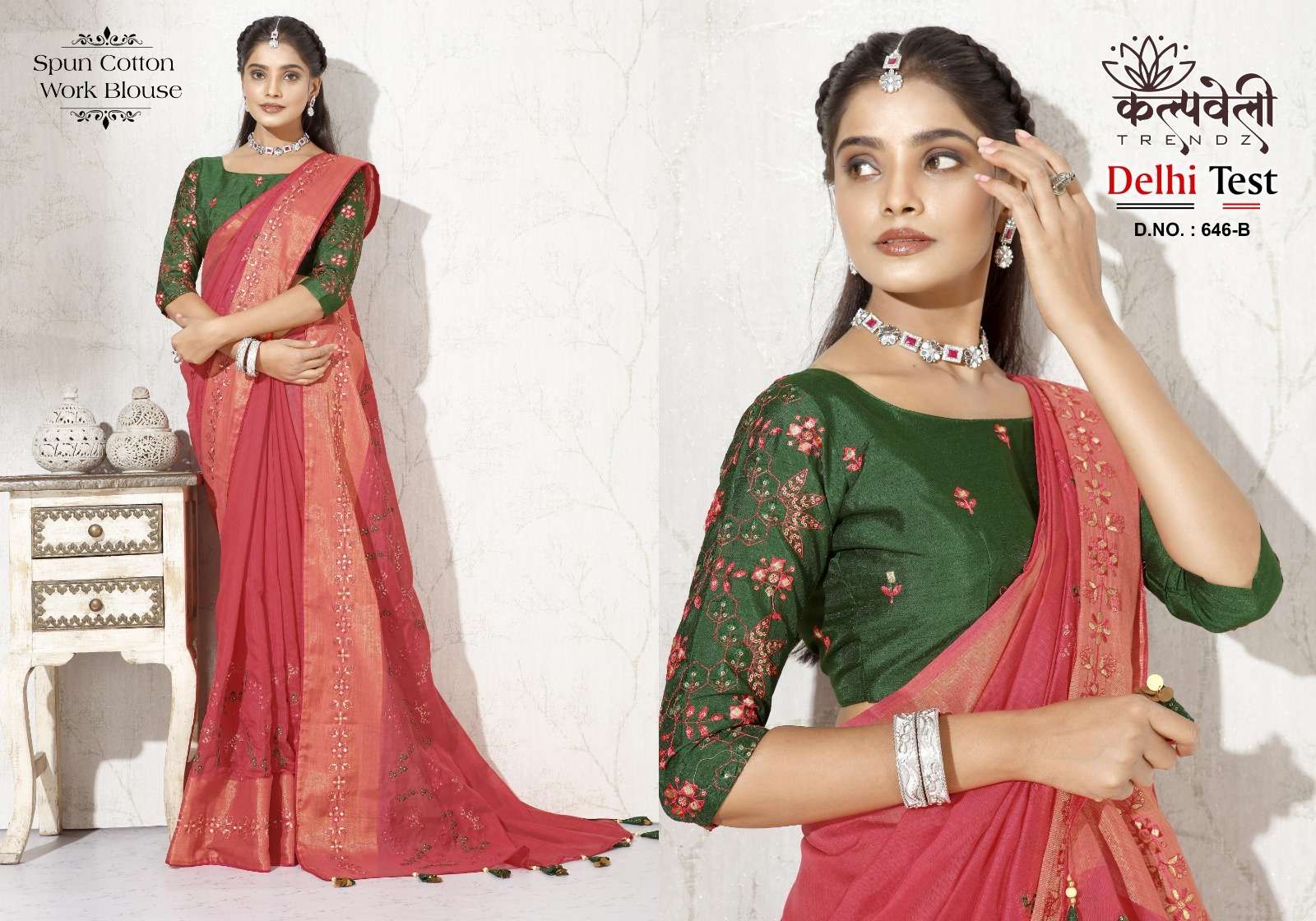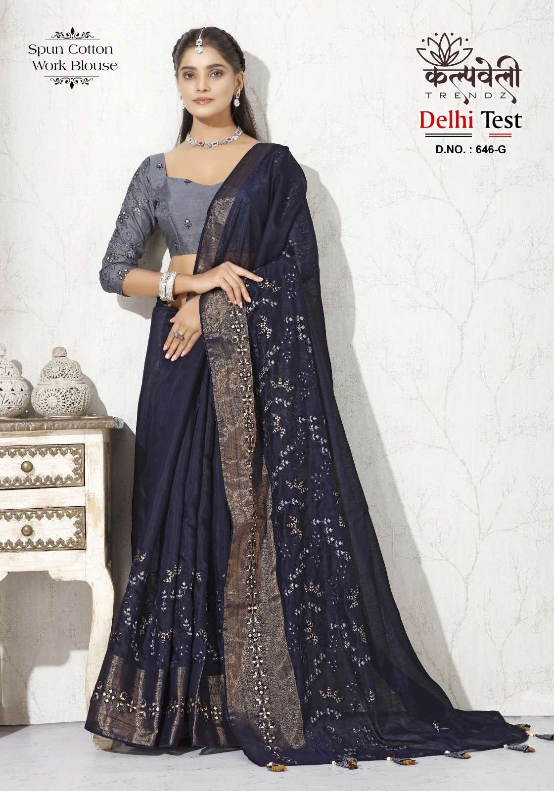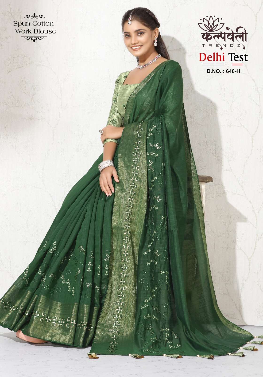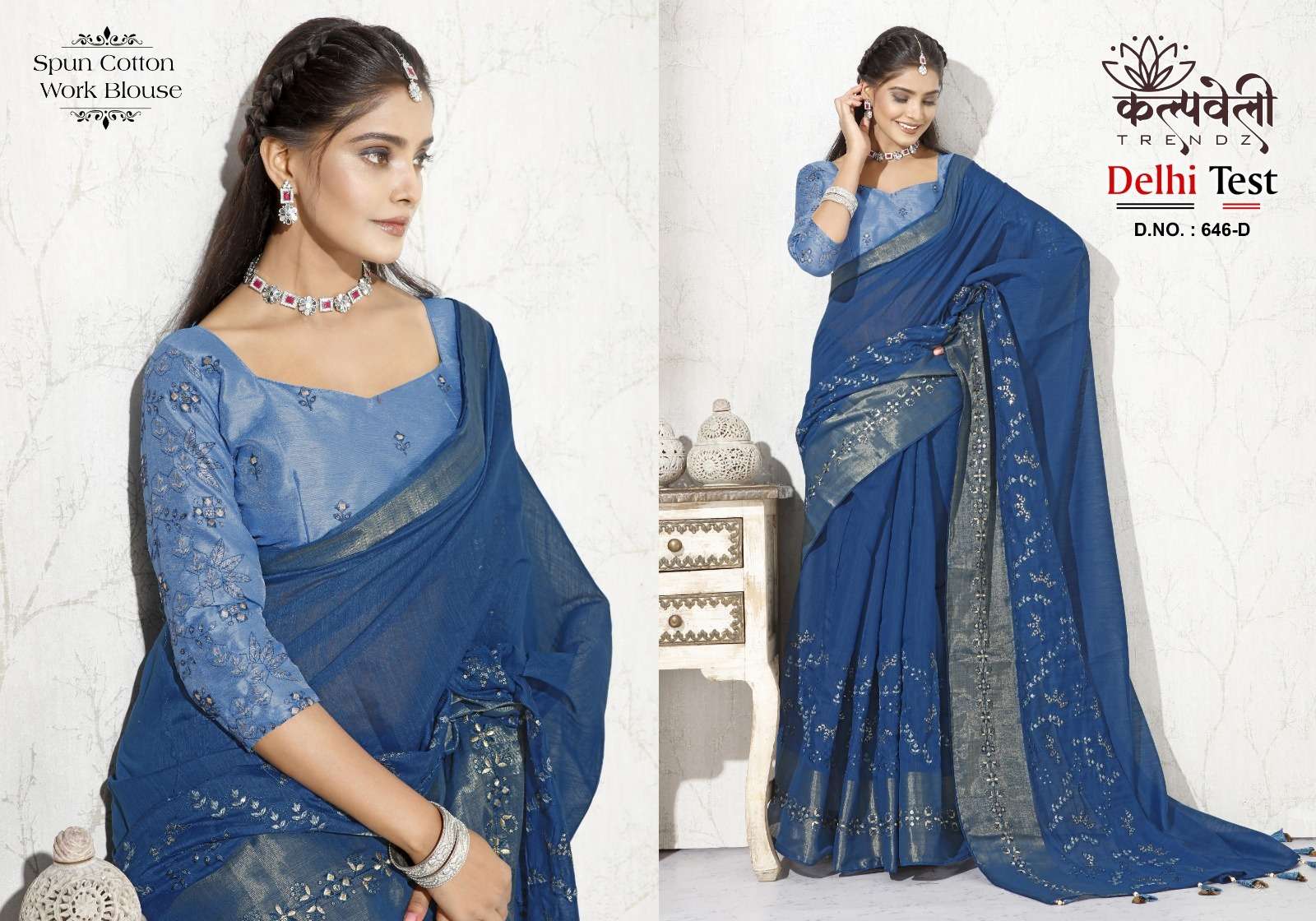 kalpavelly trendz delhi test 646 fancy embroidery work spun cotton saree wholesaler