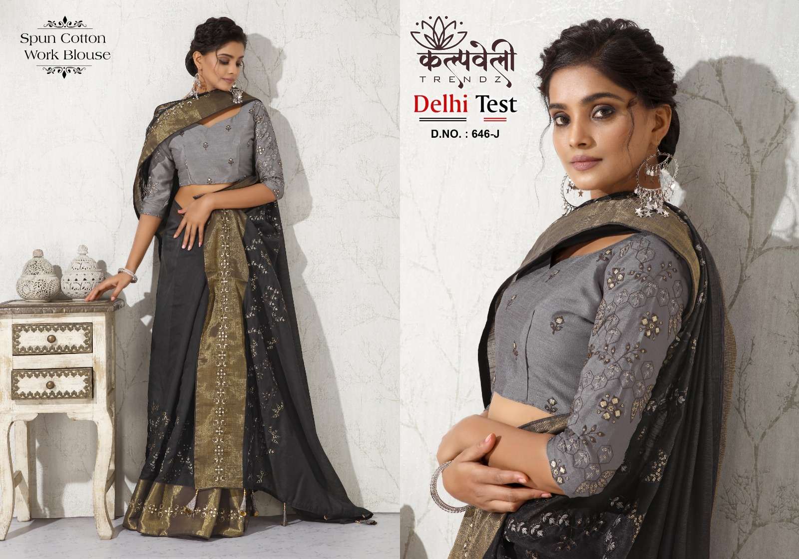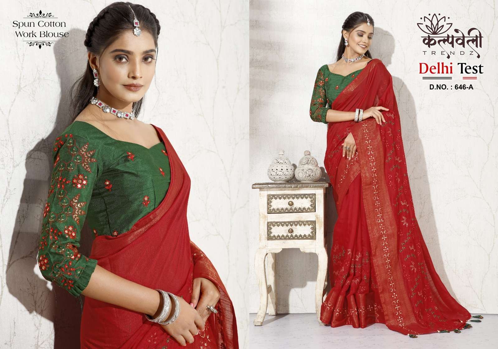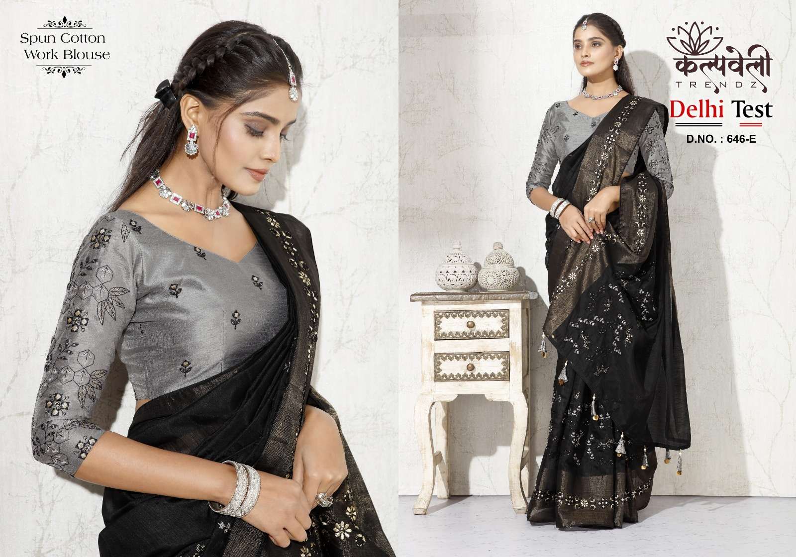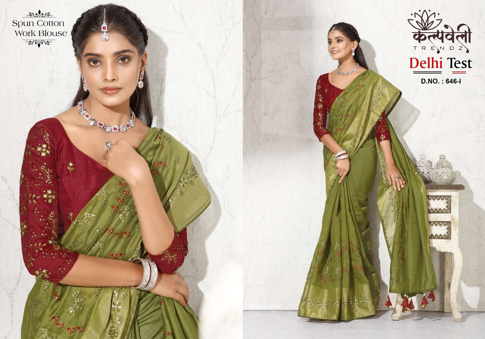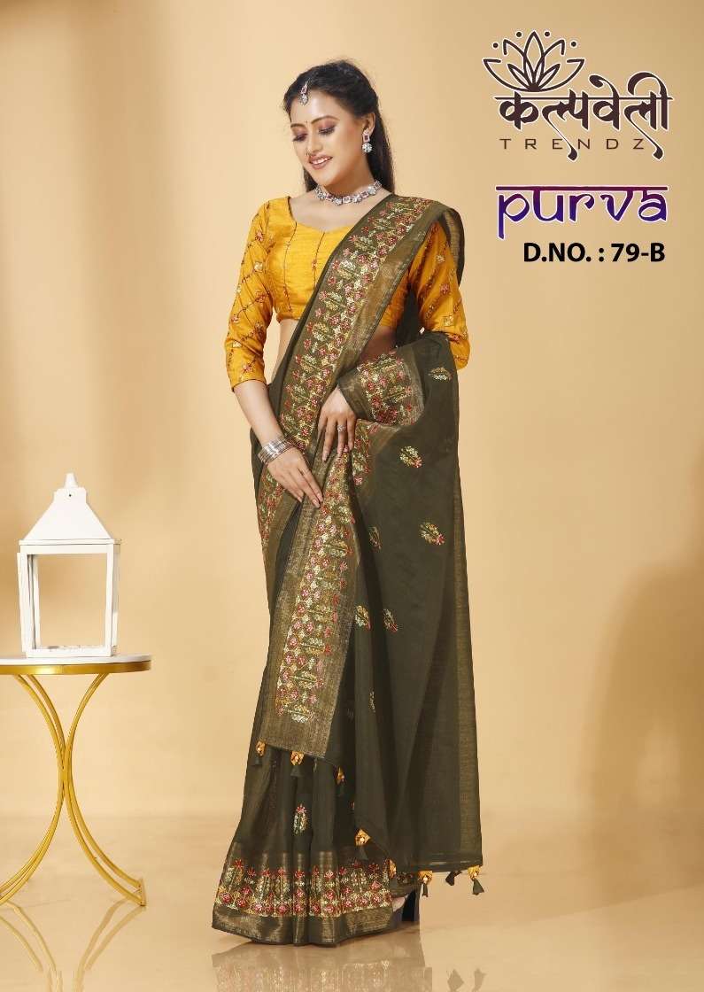 kalpavelly trendz delhi test 646 fancy embroidery work spun cotton saree wholesaler