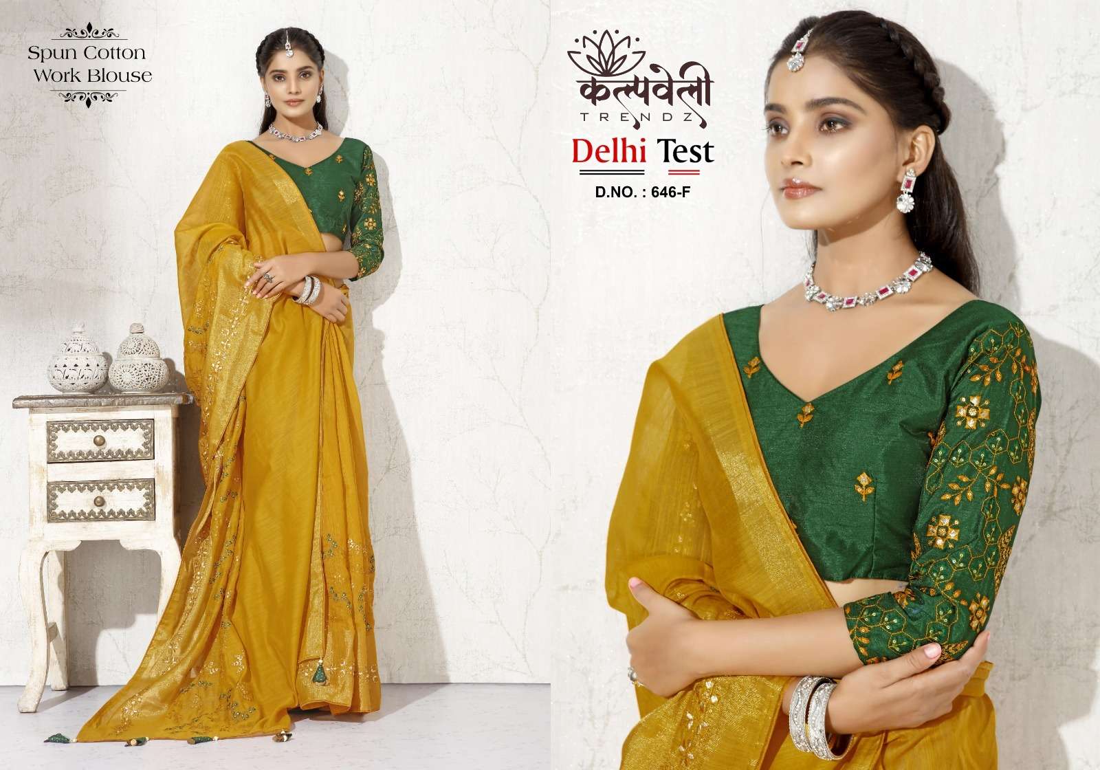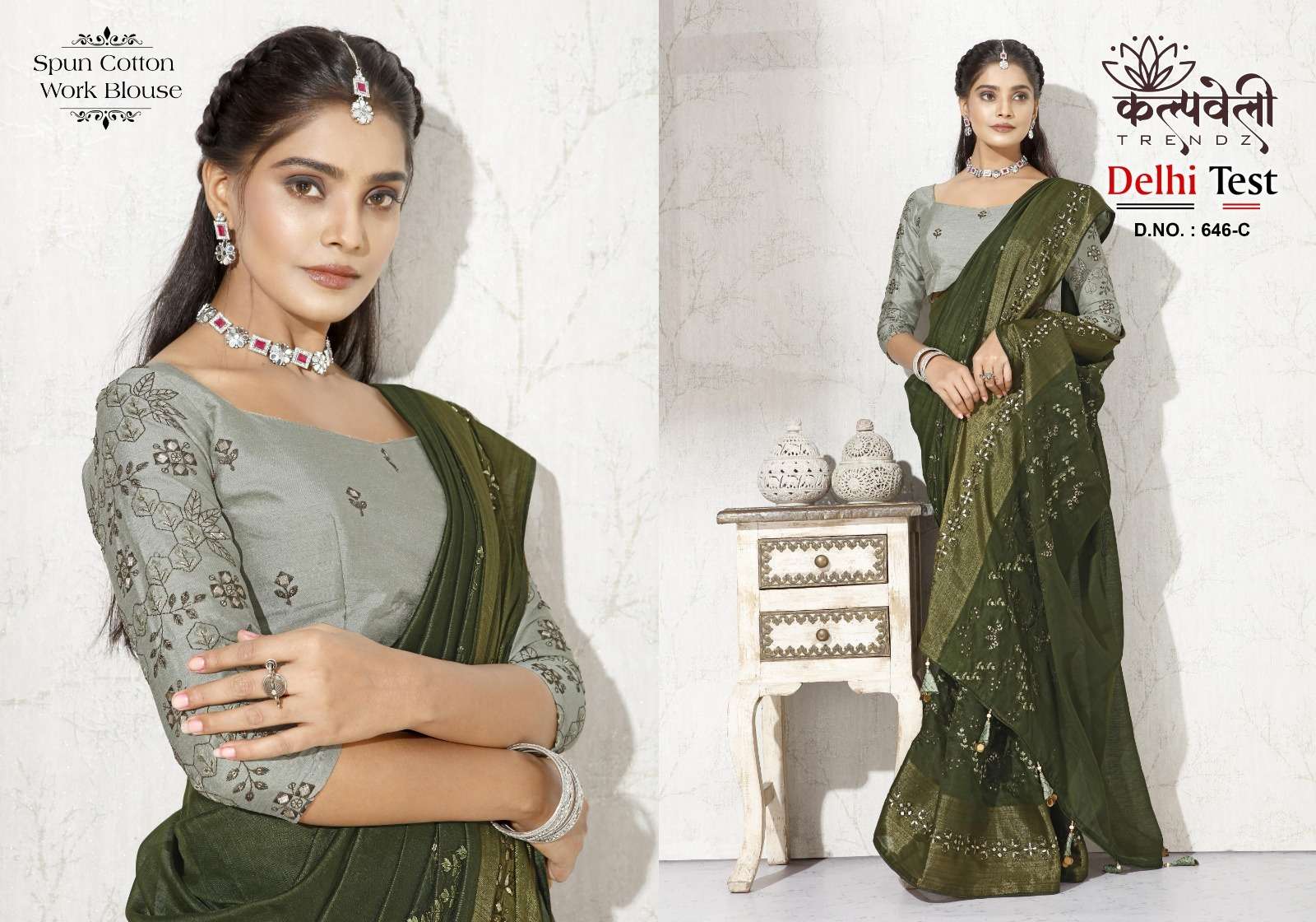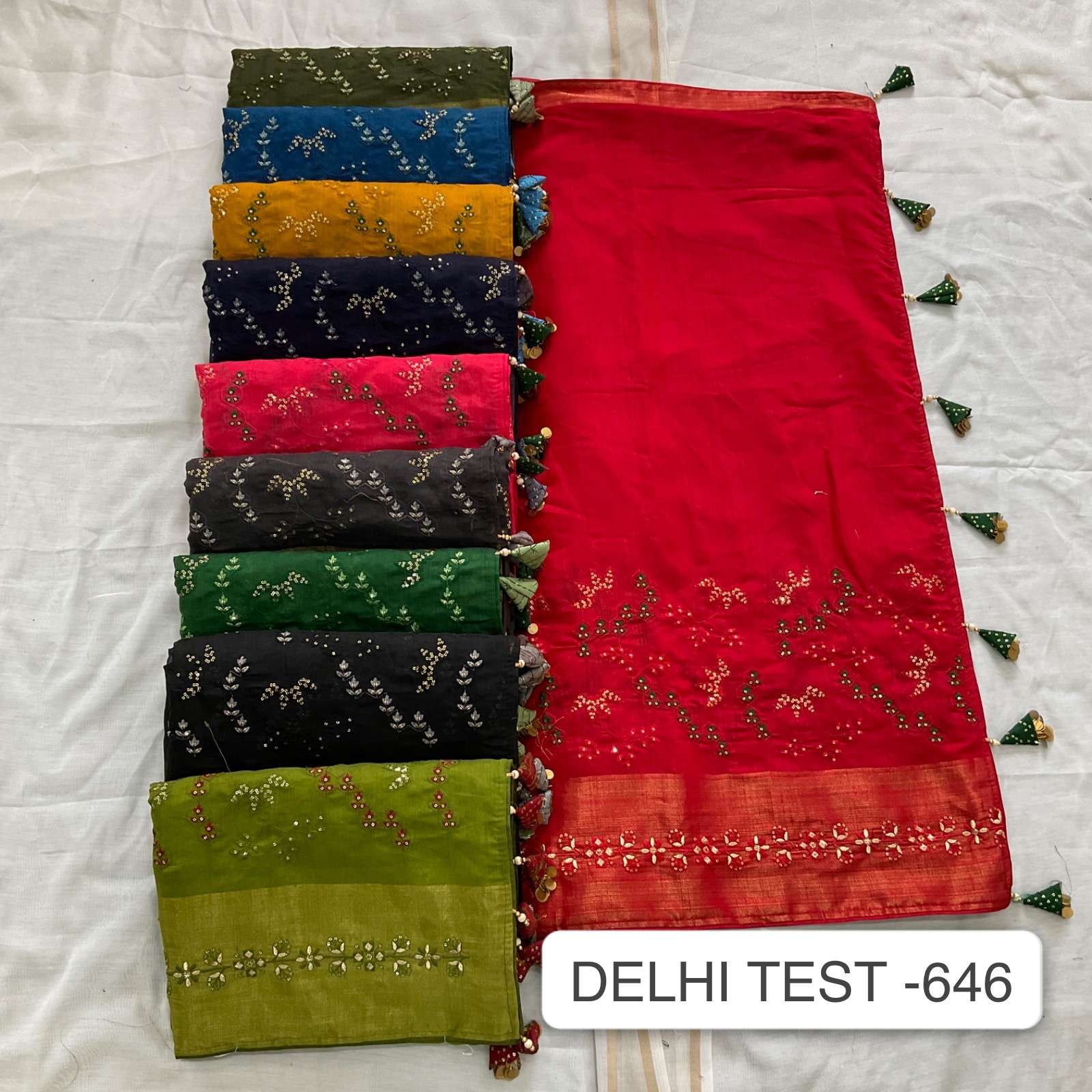 Delhi test 646 no. -950/- Fabric: Spun cotton Concept: Fancy embroidery work design Blouse: matching🧵 work blouse Packing : 20.09.2023📌 |