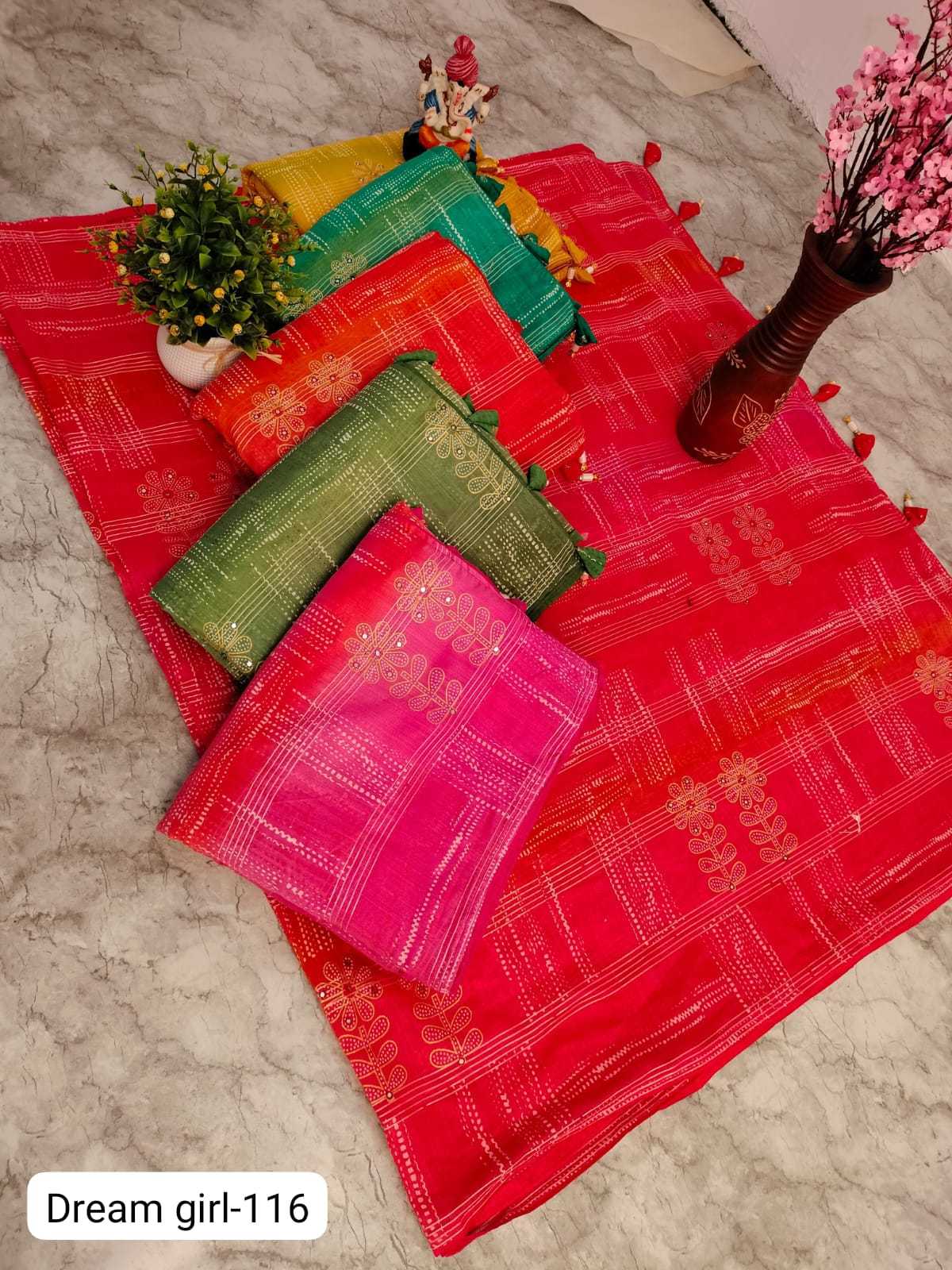 Dream girl 116 no. -899/- Fabric: Soft cotton saree Concept: new concept beautiful design mirror work Blouse: matching blouse Packing : 28-10-2023📌 |