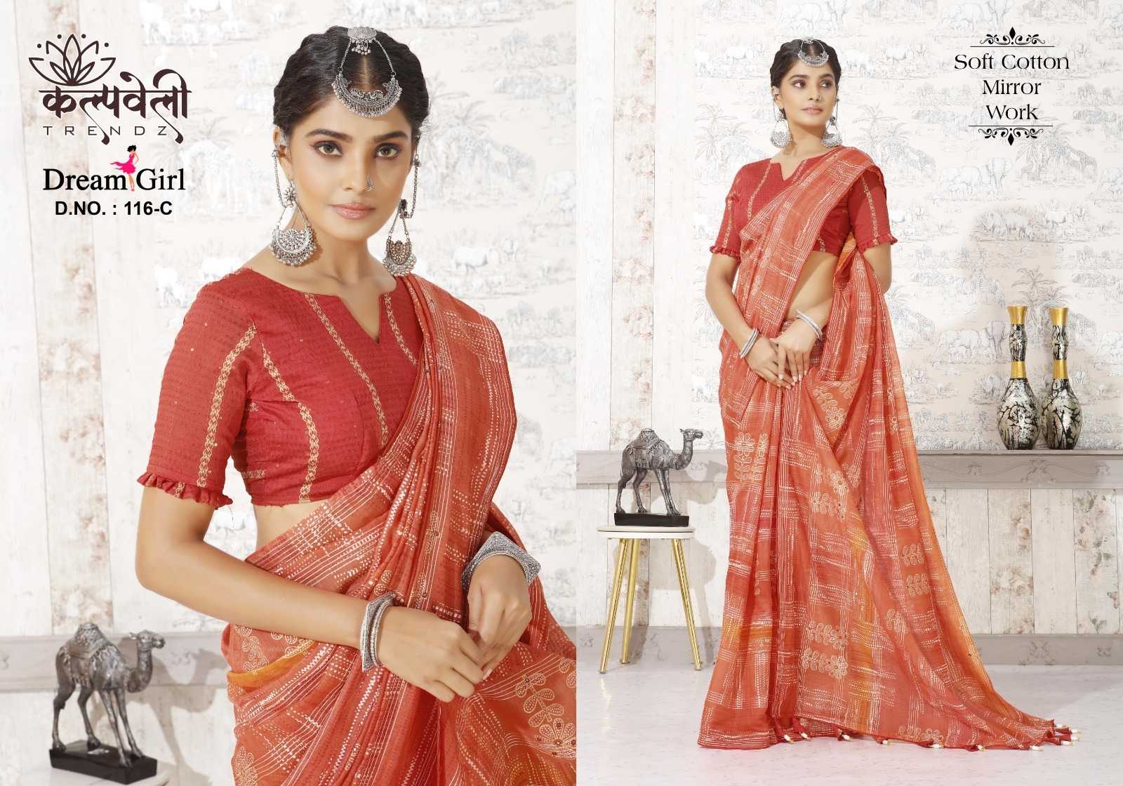 kalpavelly trendz dream girl 116 mirror work saree with matching blouse