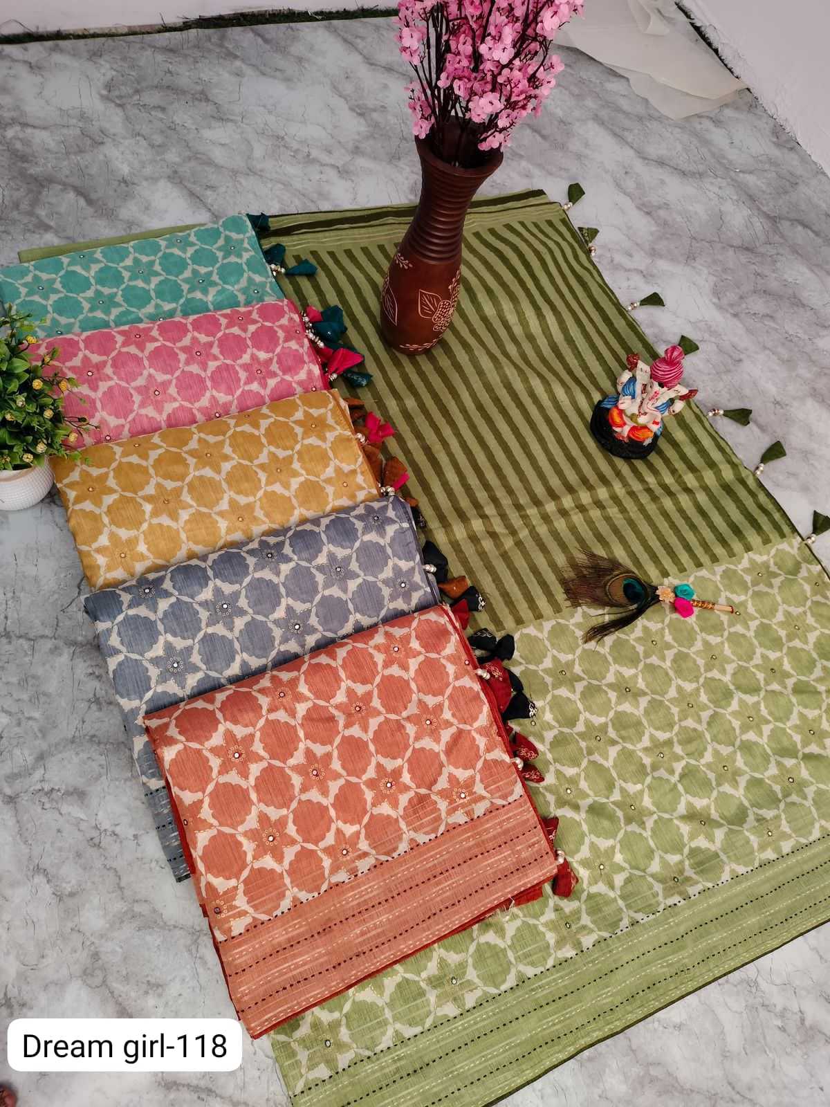 Dream girl 118 no. -899/- Fabric: Resham silk saree Concept: All new beautiful design mirror work with katha border Blouse: matching blouse Packing : 12-10-2023📌 |