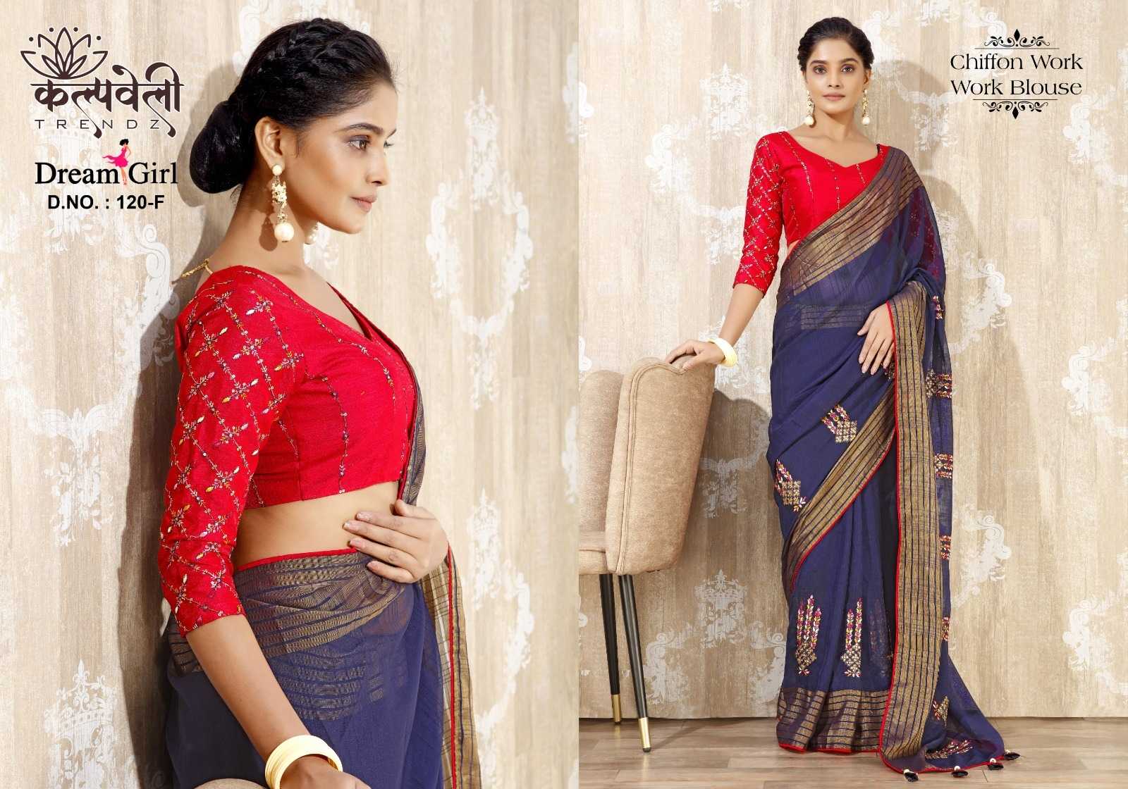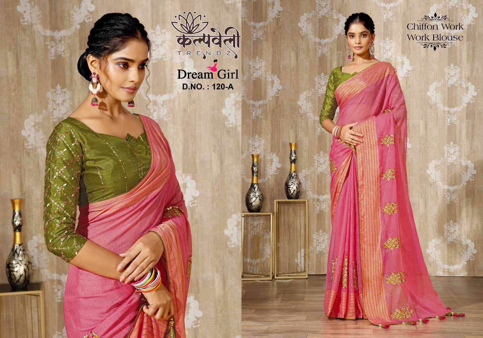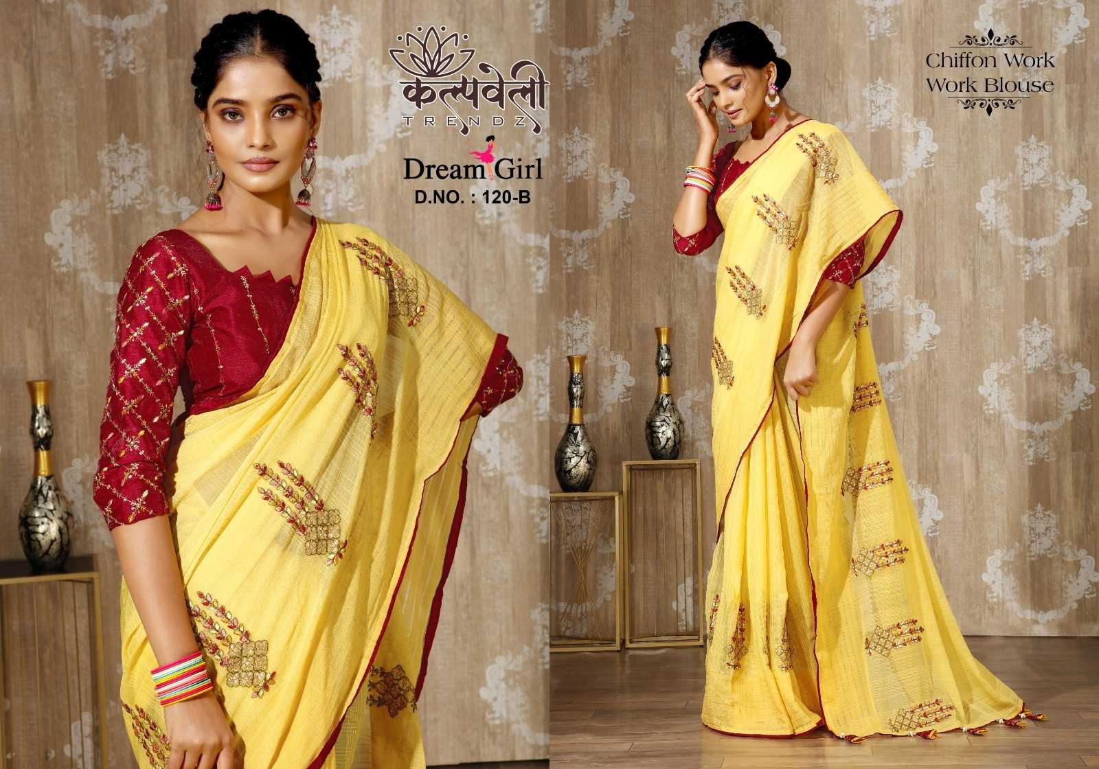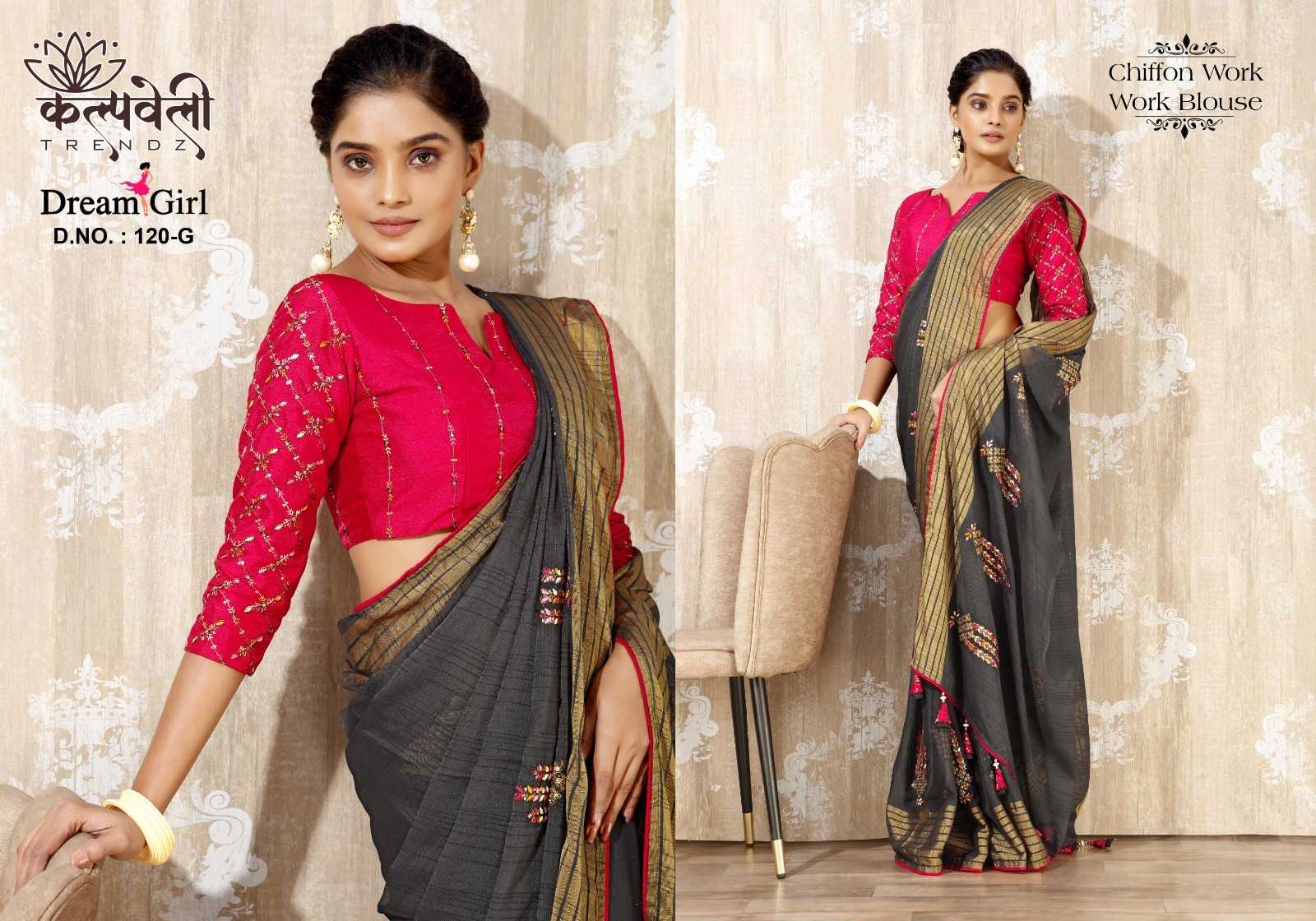 kalpavelly trendz dream girl 120 amazing fancy work chiffon saree collection