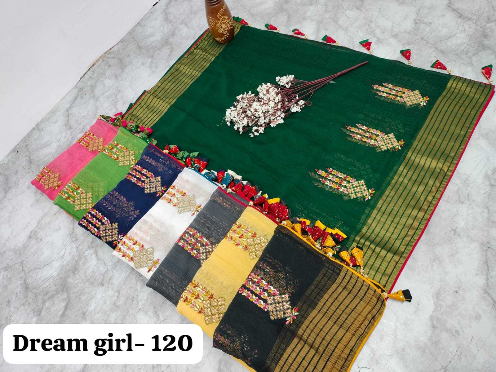 dream girl- 120 no. -899/- Fabric: Nilgiri chiffon Concept: Beautiful✨ embroidery work Blouse- contrast work blouse New concept in work Packing : 13.10.2023📌 |