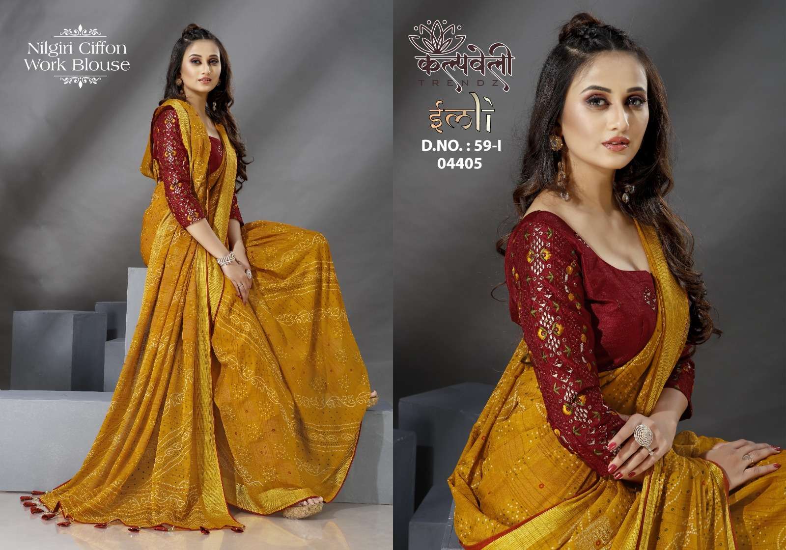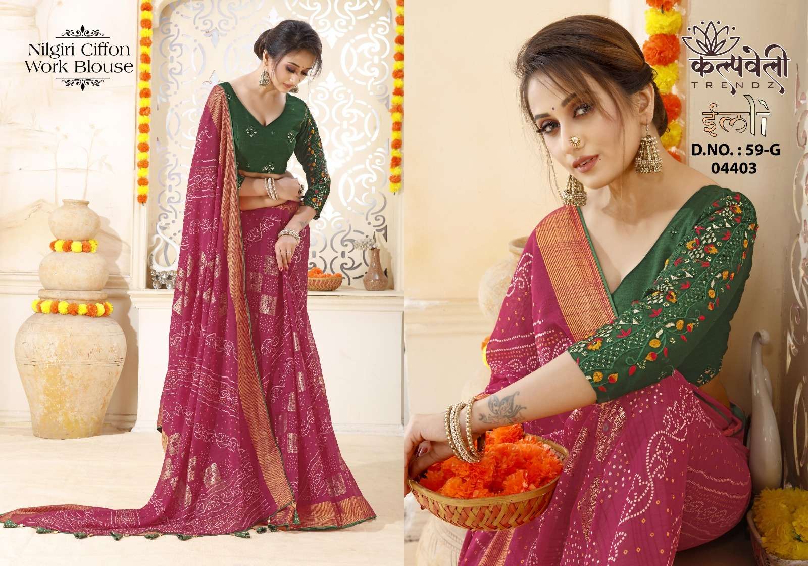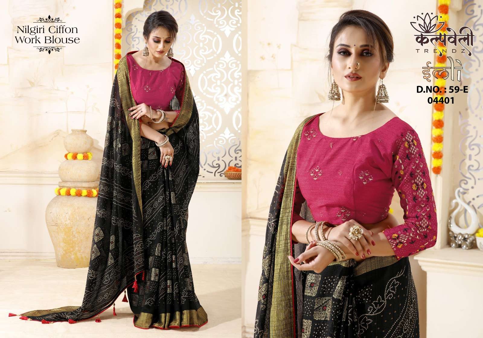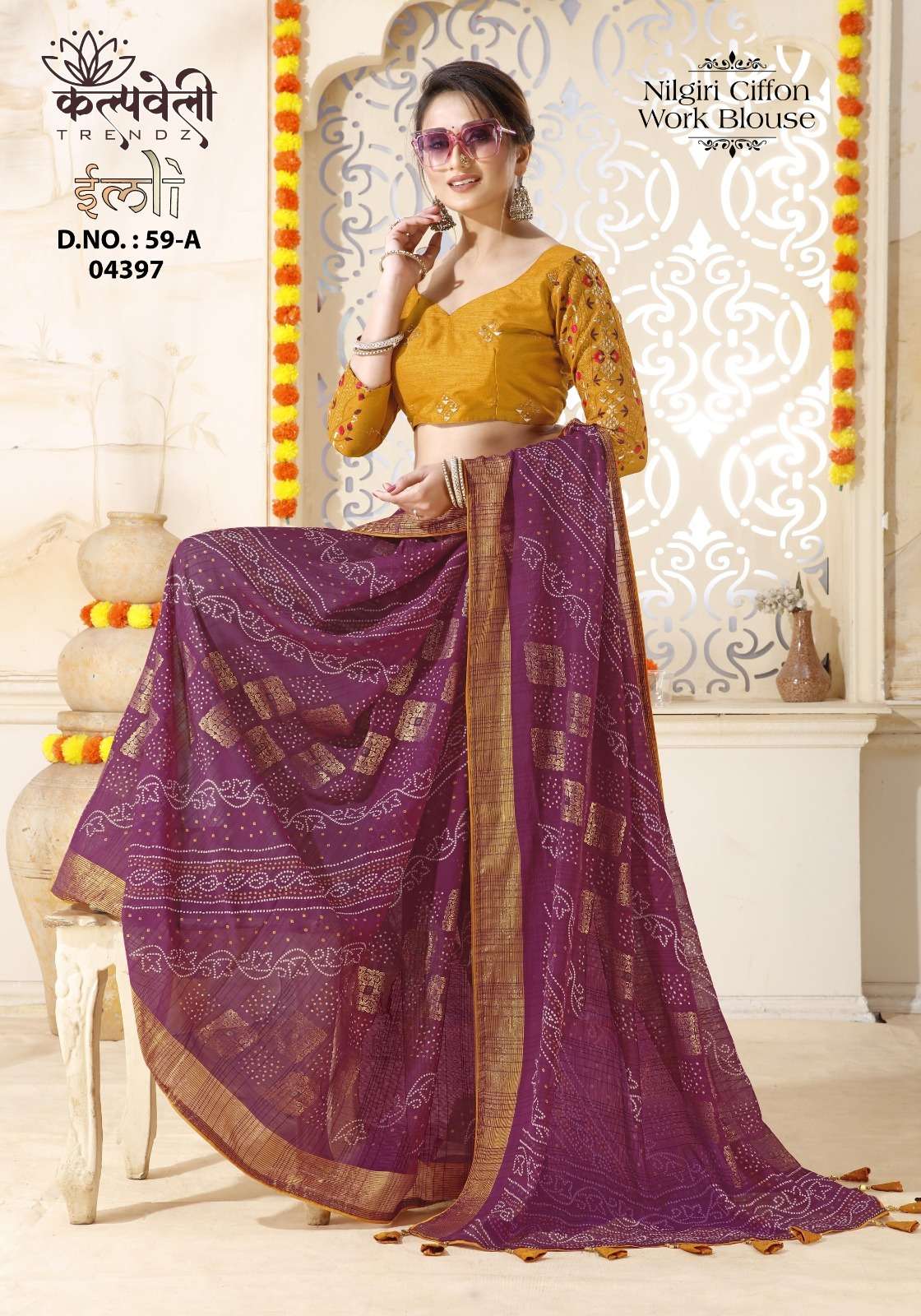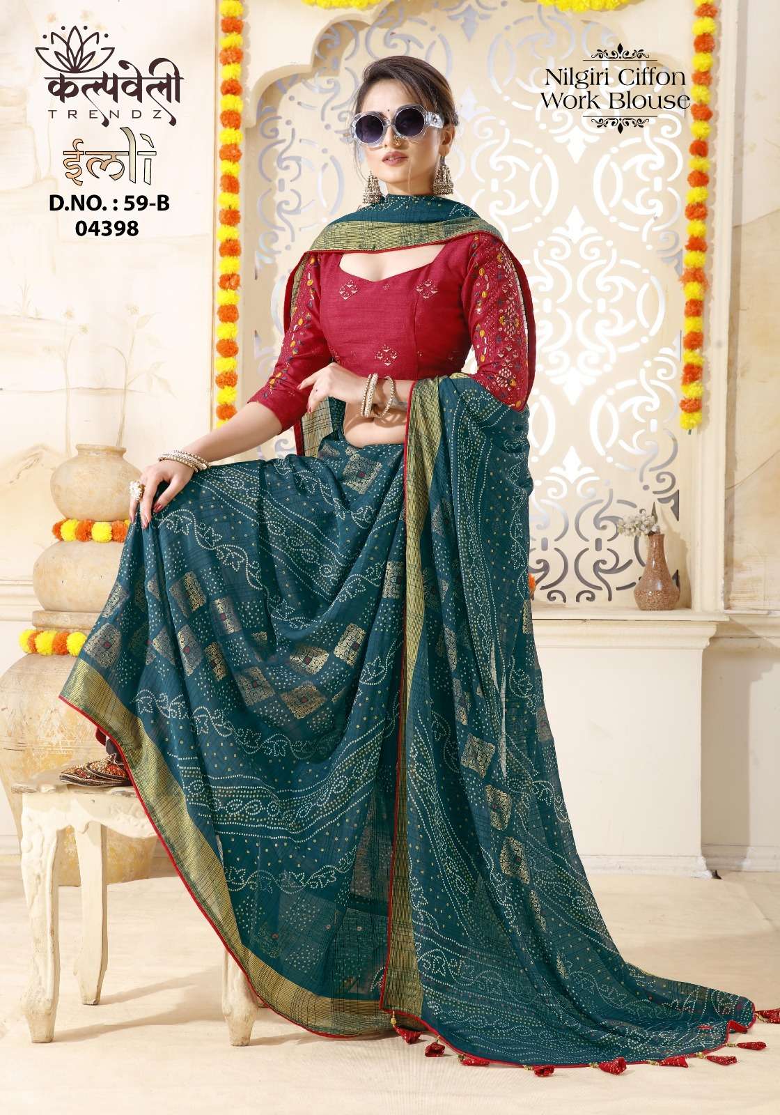 kalpavelly trendz imli 59 bandhej leheriya print chiffon saree collection
