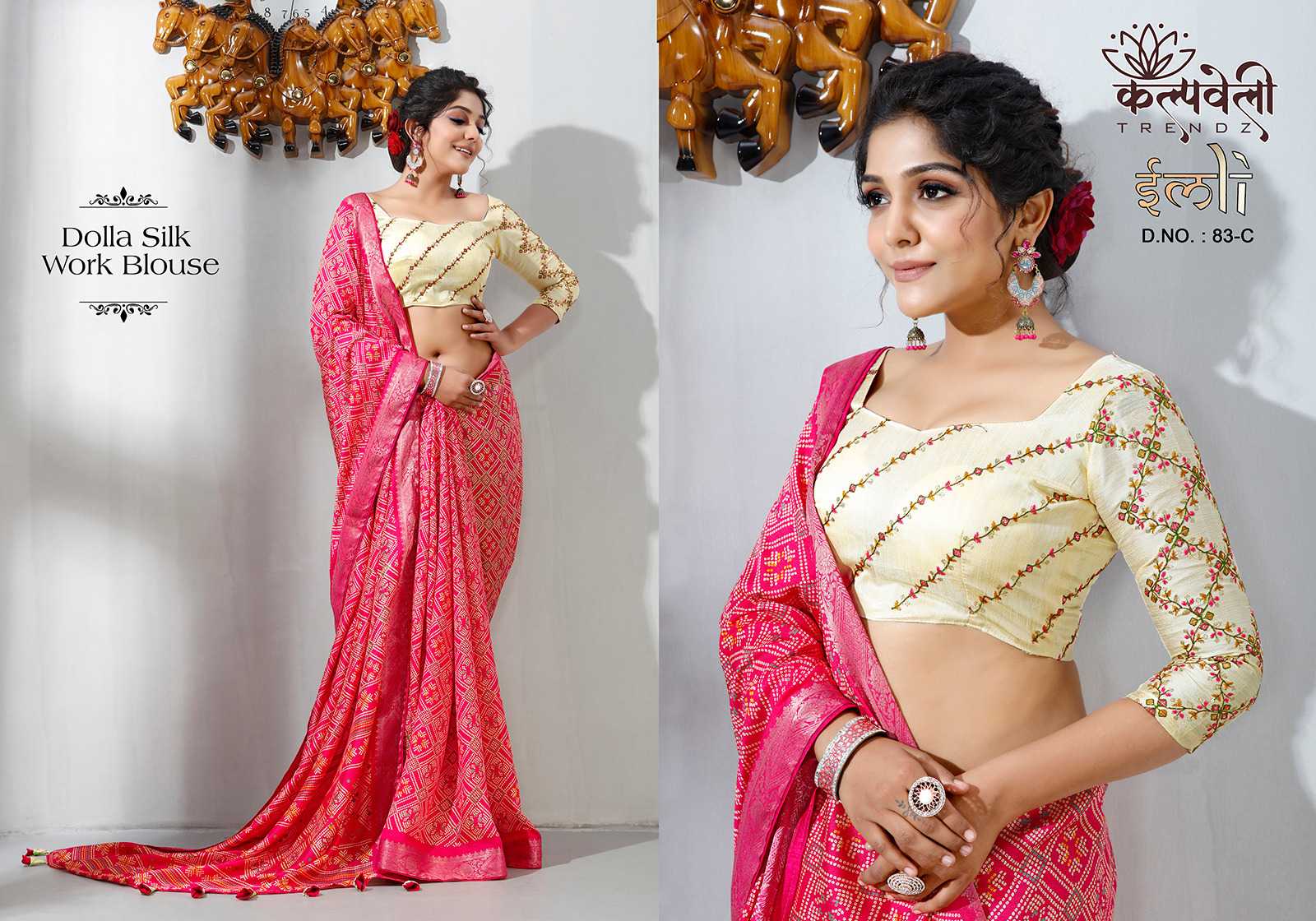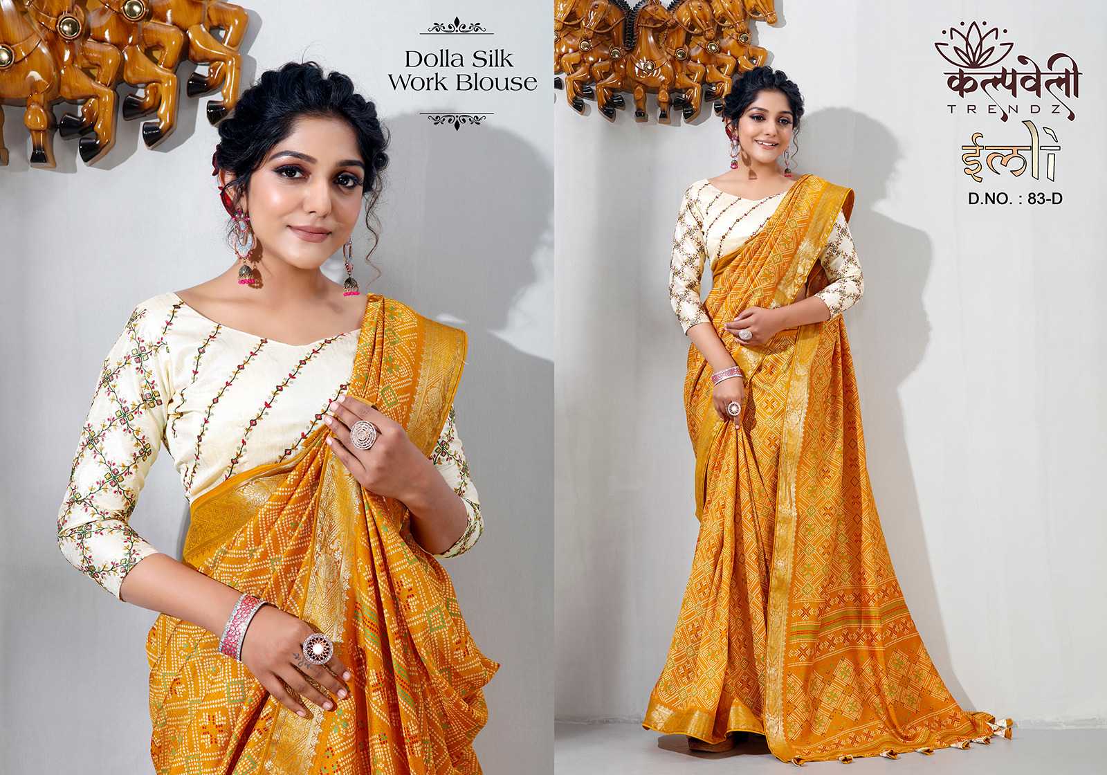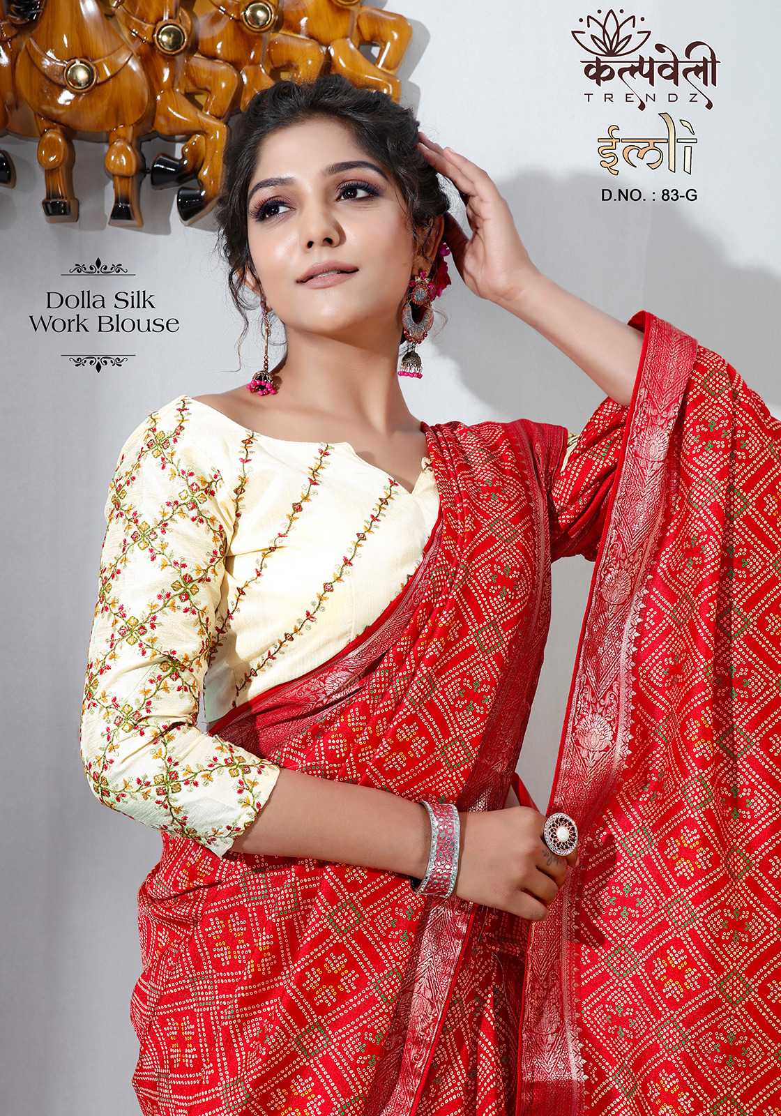 kalpavelly trendz imli 83 dola silk bandhani print saree collection