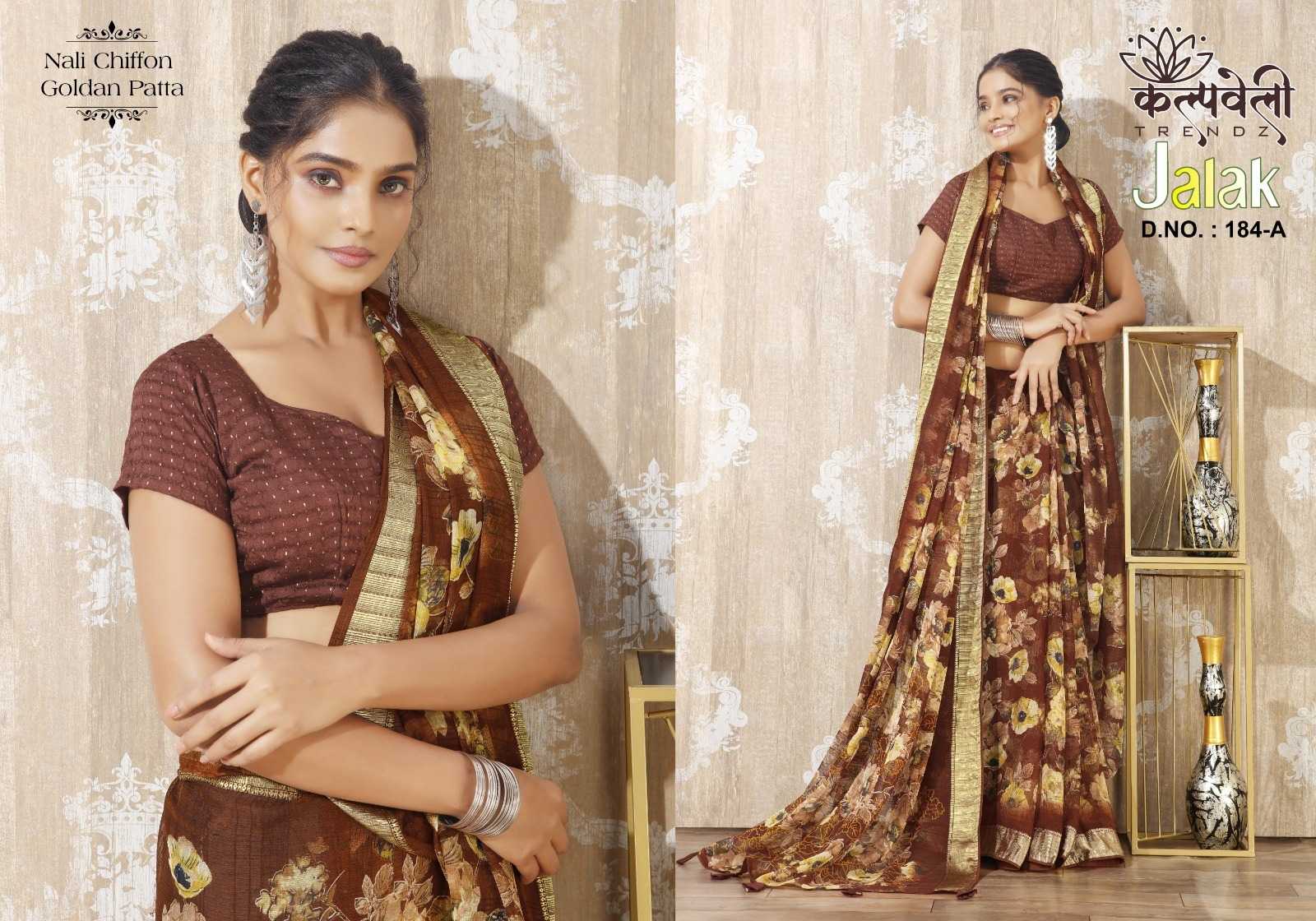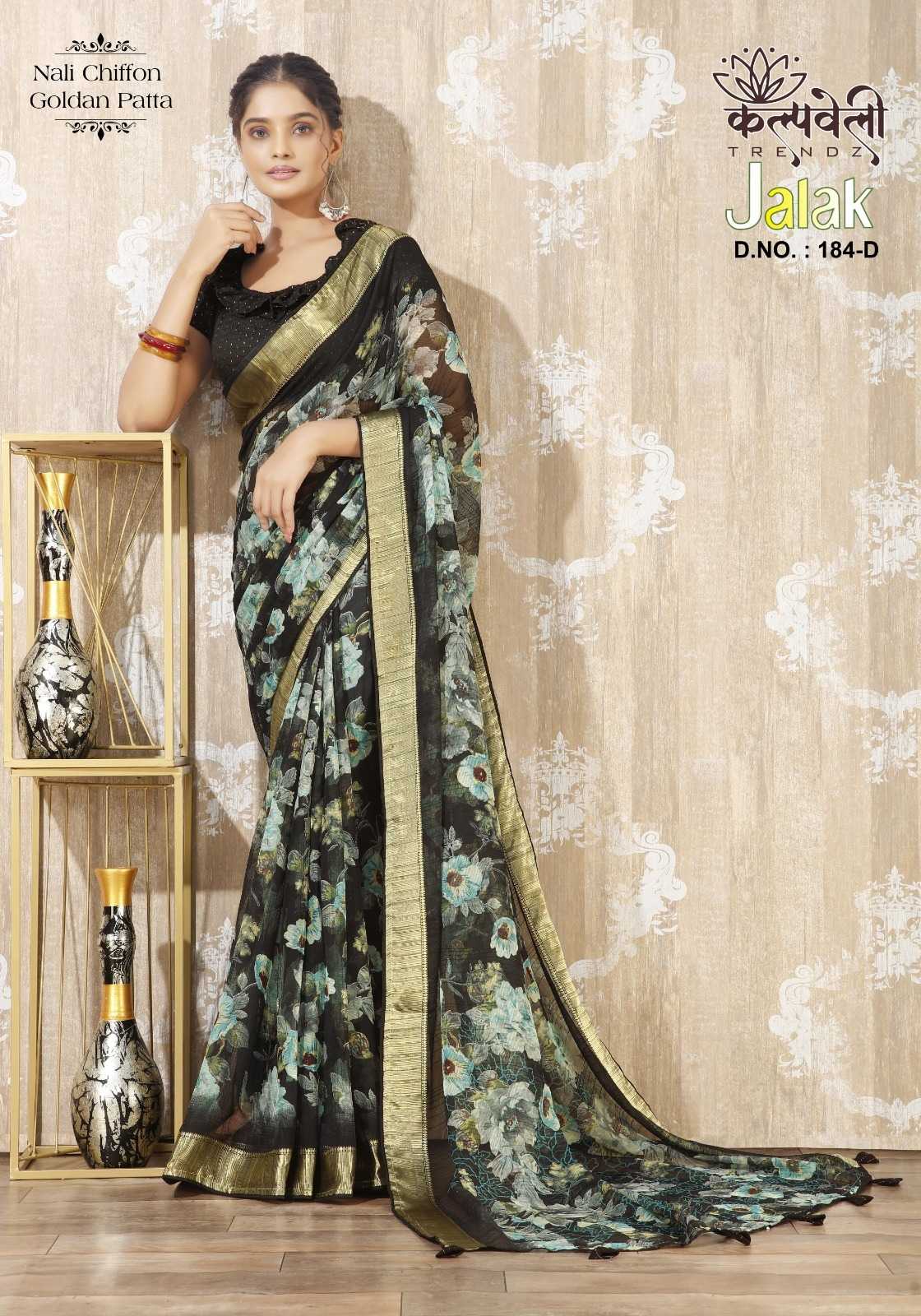 jalak 184no. -599/- Fabric: Nali chiffon Concept: New flowers print with goldan patta Blouse:fancy blouse Packing : 07-10-23🔥🔥📌 |
