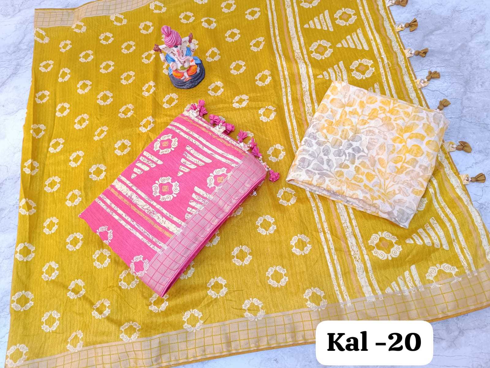 kal 20 no. -745/- Fabric: silk jacquard Concept: beautiful design in silk Blouse:print blouse Packing : .08-11-23 |