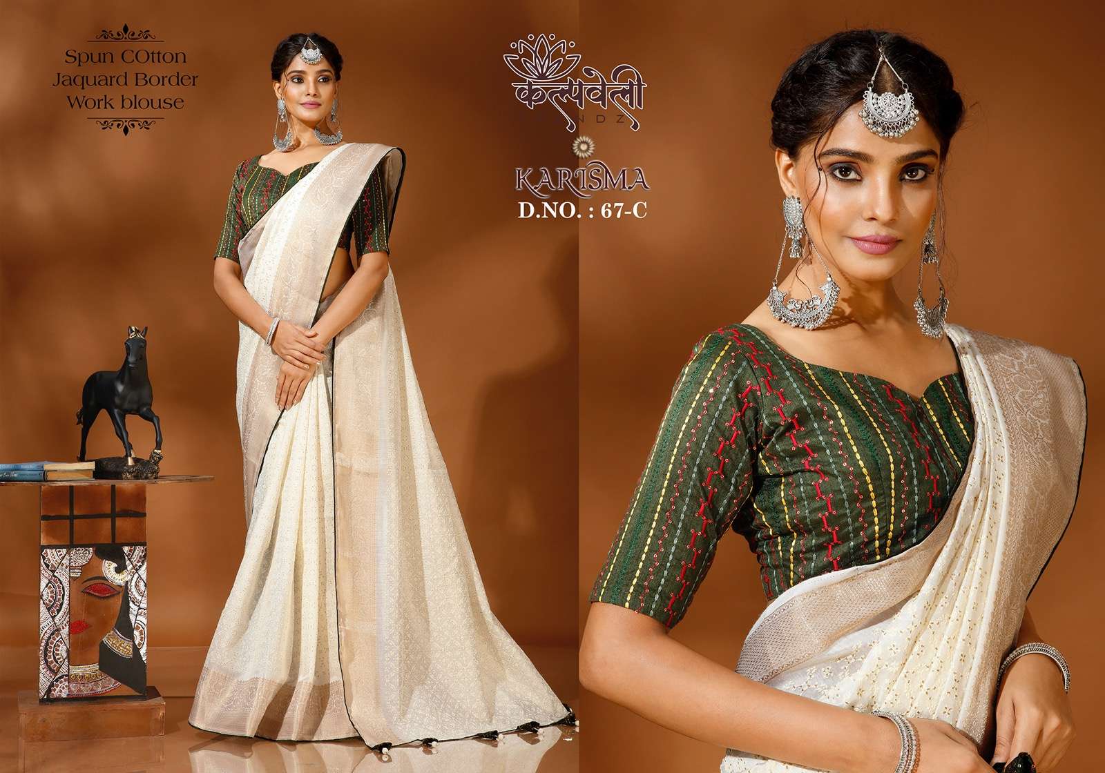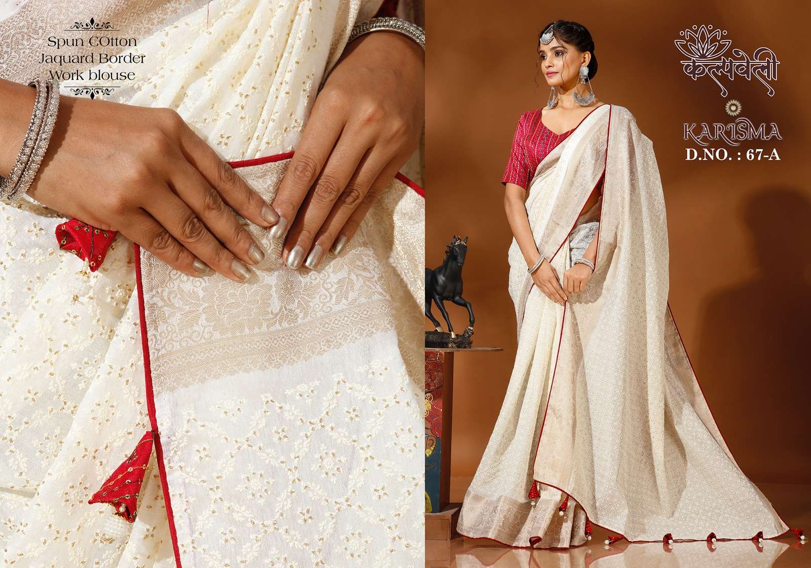 Karisma 67 no. -1050/- Fabric: Spun cotton Concept: beautiful work design Special white Blouse: work blouse |