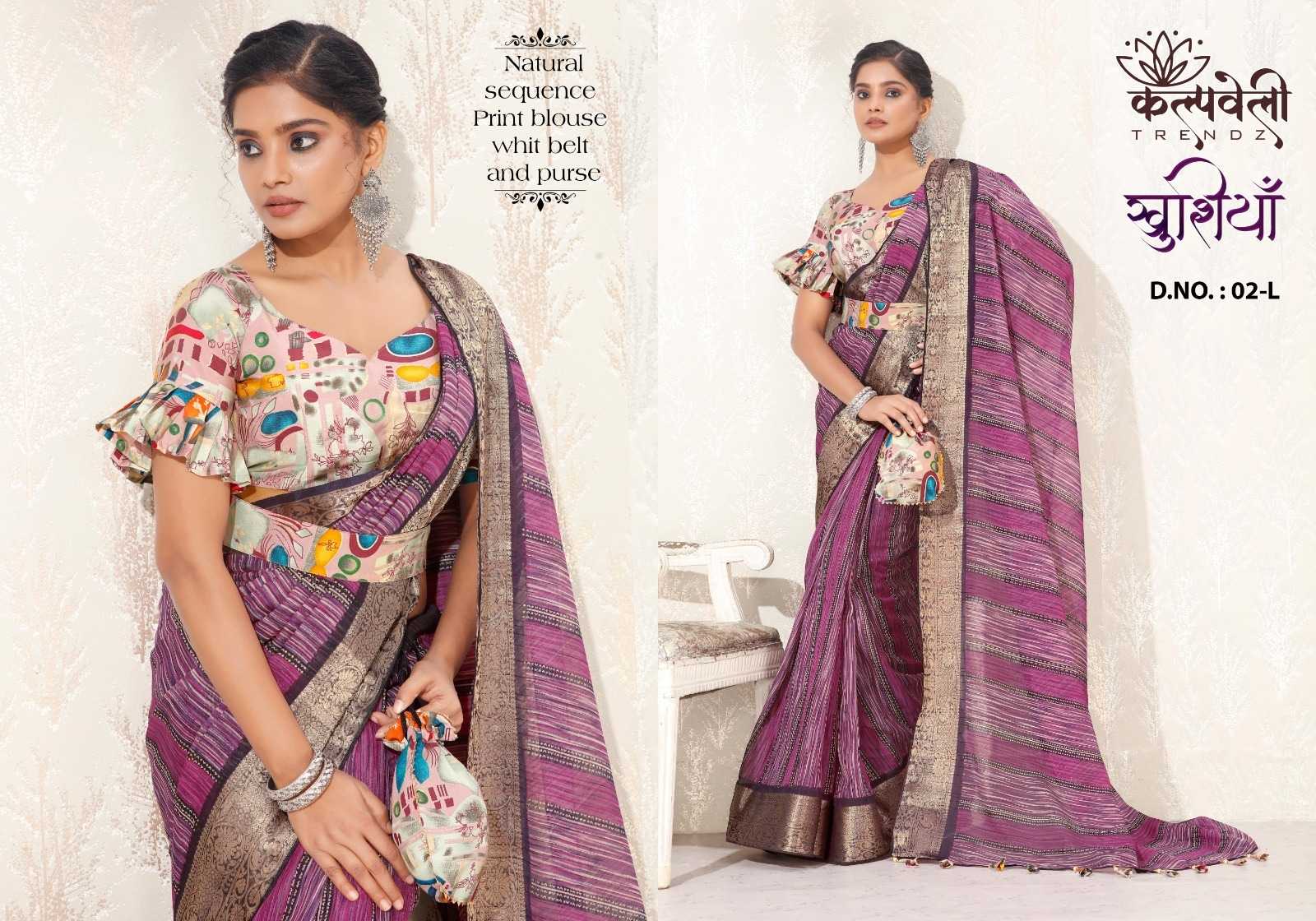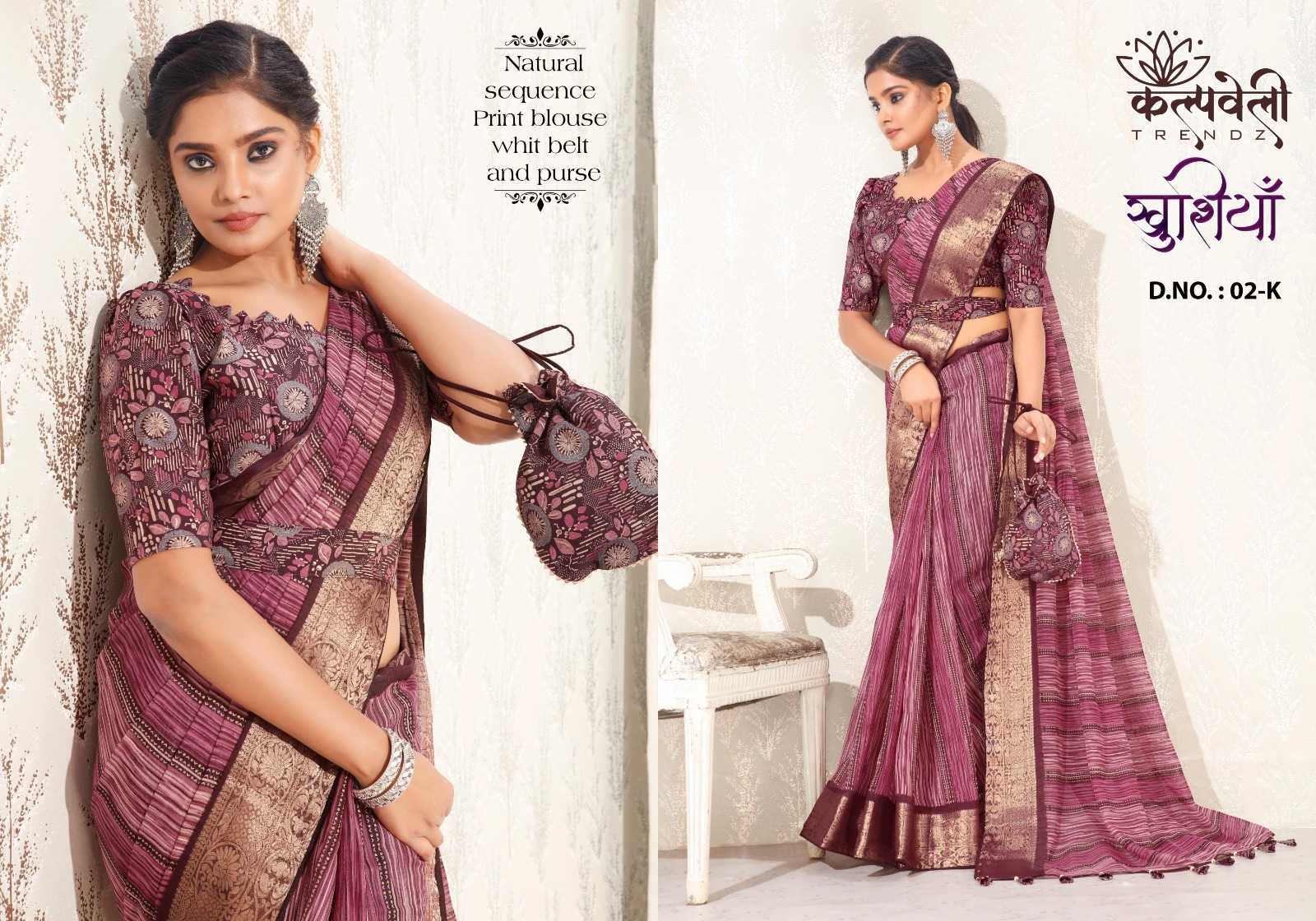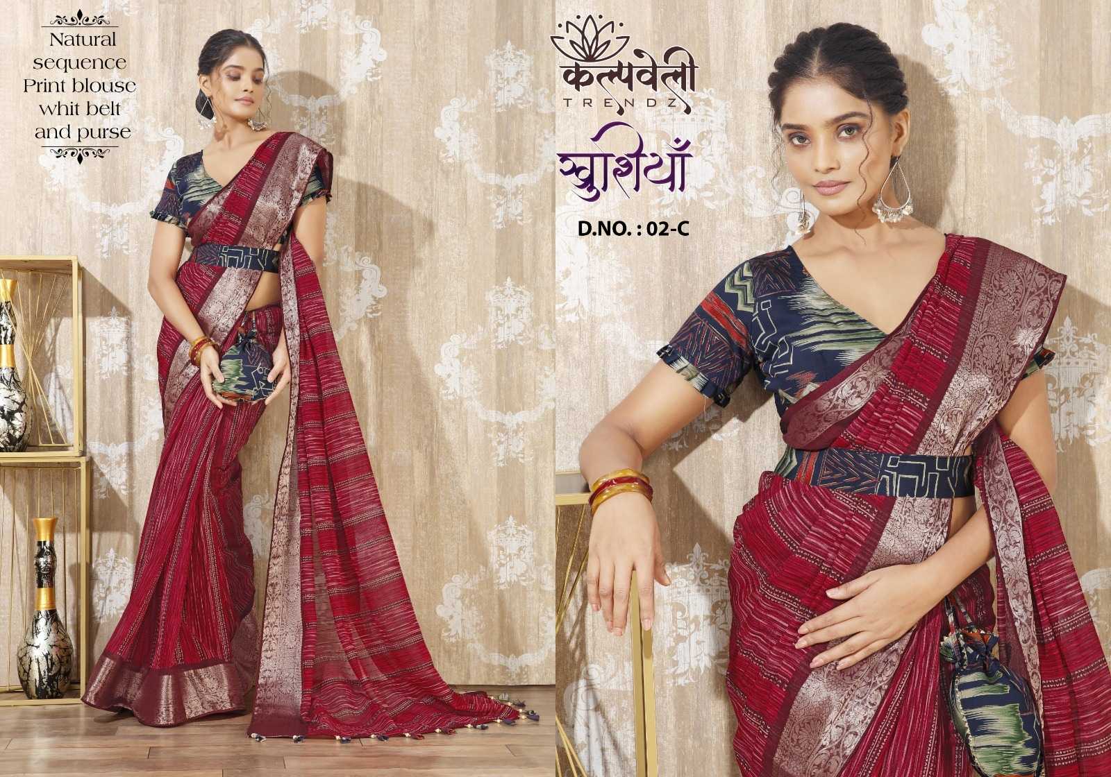 kalpavelly trendz khushiyan 2 fancy saree with print blouse and purse catalog