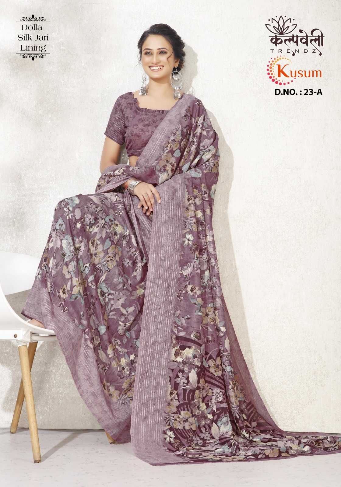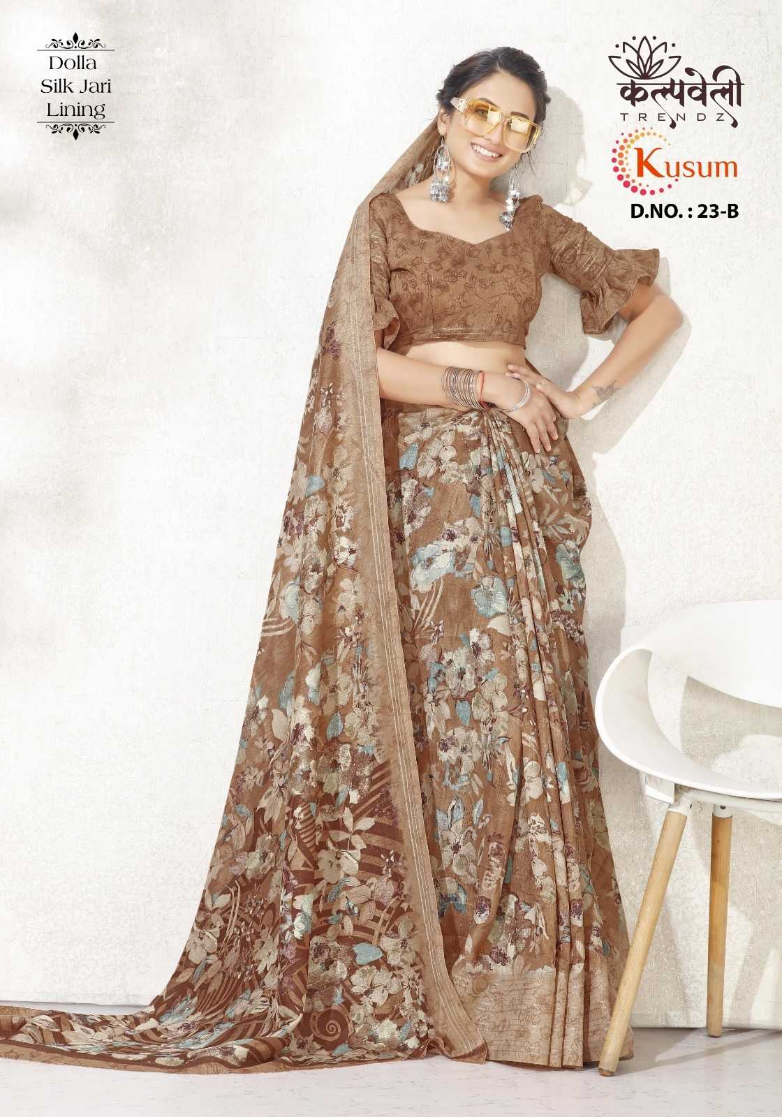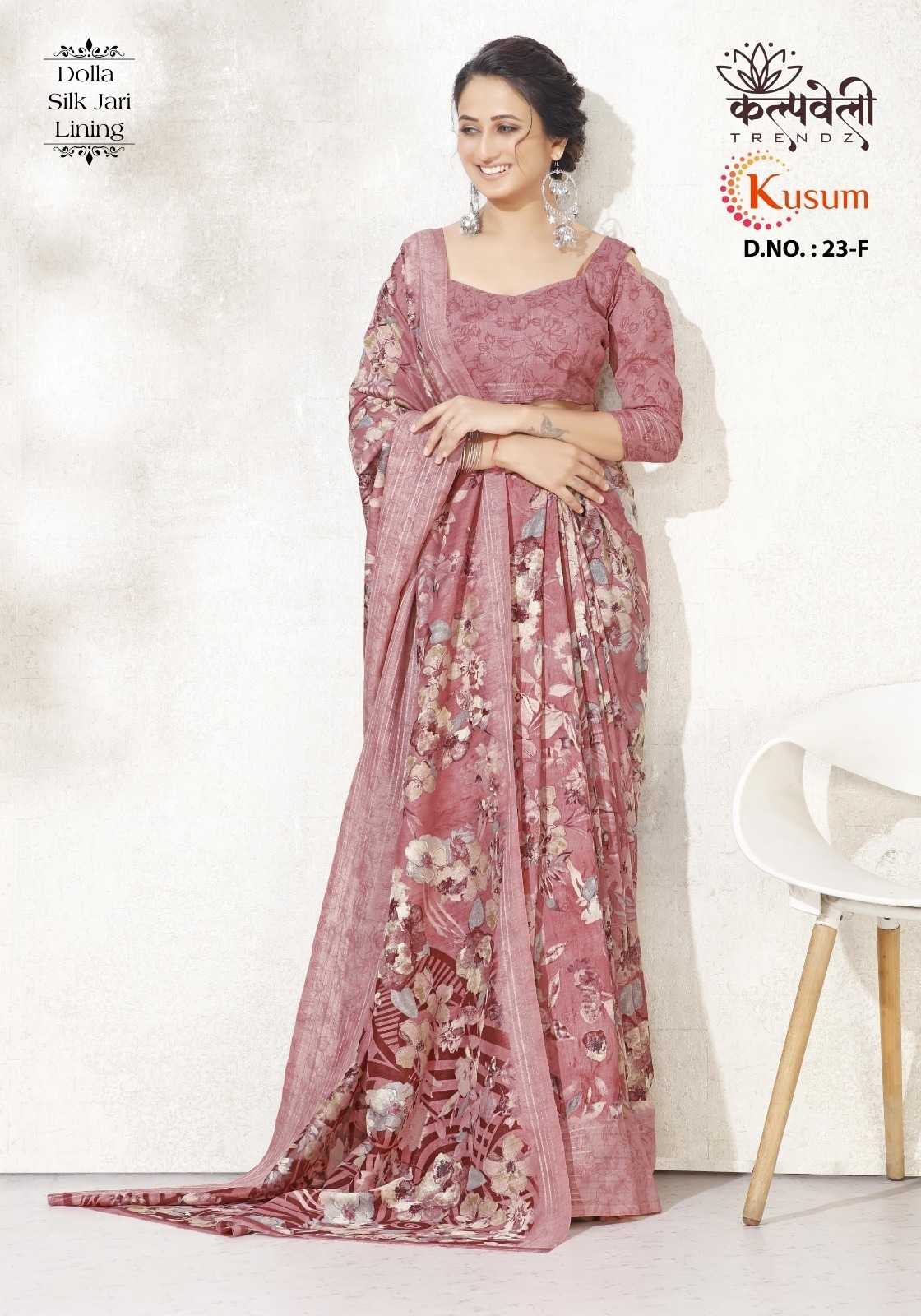 kalpavelly trendz kusum 23 adorable flower print dola silk saree collection