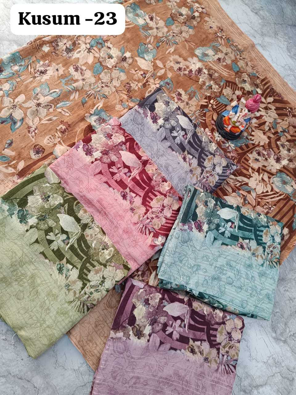 Kusum 23 no. -490/- Fabric: Dolla silk Concept: Flowers🌸🌺 print saree with jari lining Blouse: matching blouse Packing : 11-10-2023📌 |