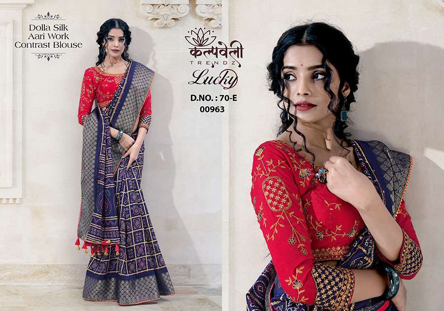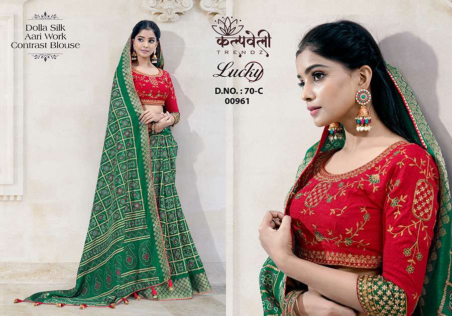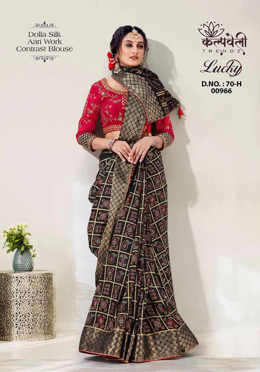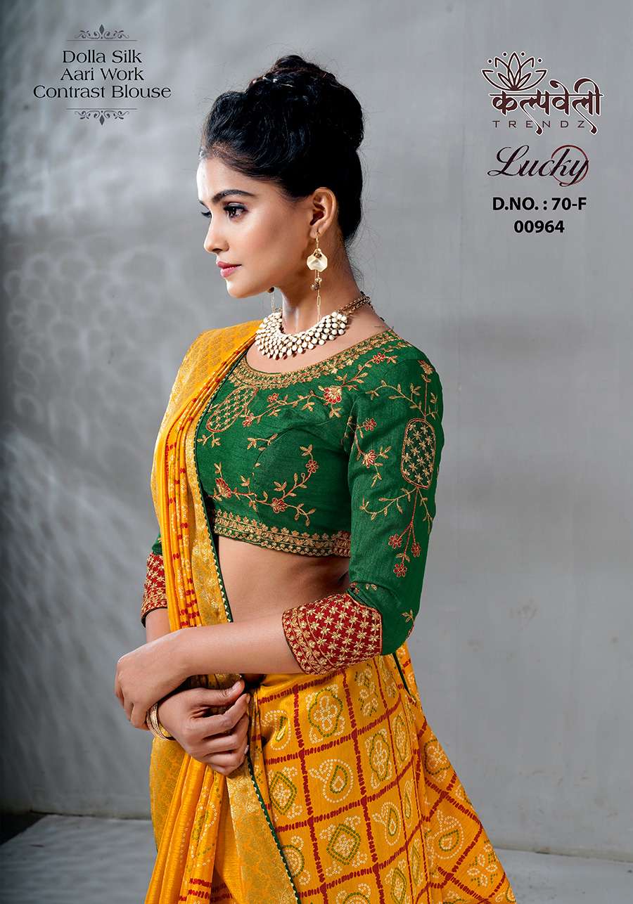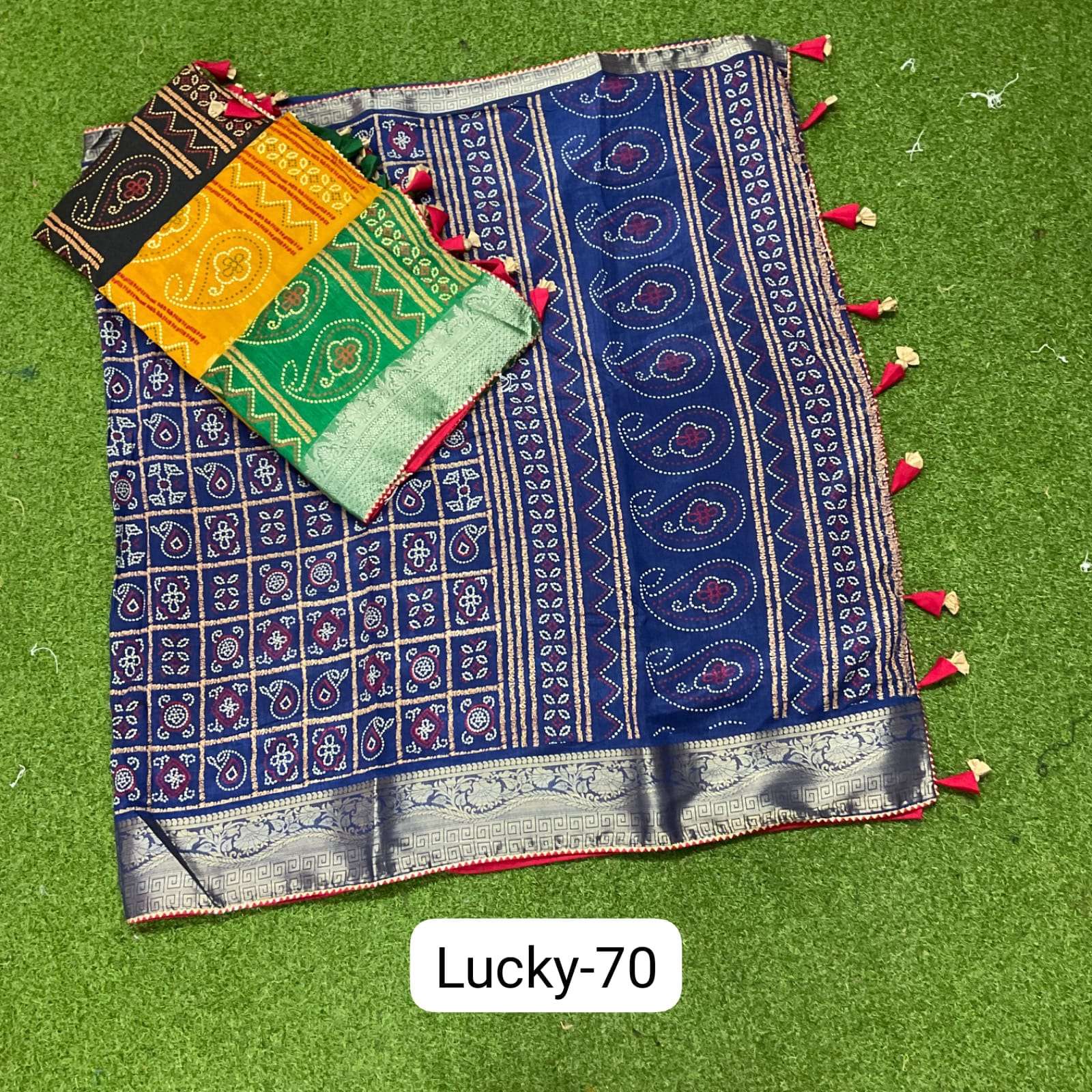 kalpavelly trendz lucky 70 fancy bandhani print silk sarees online supplier