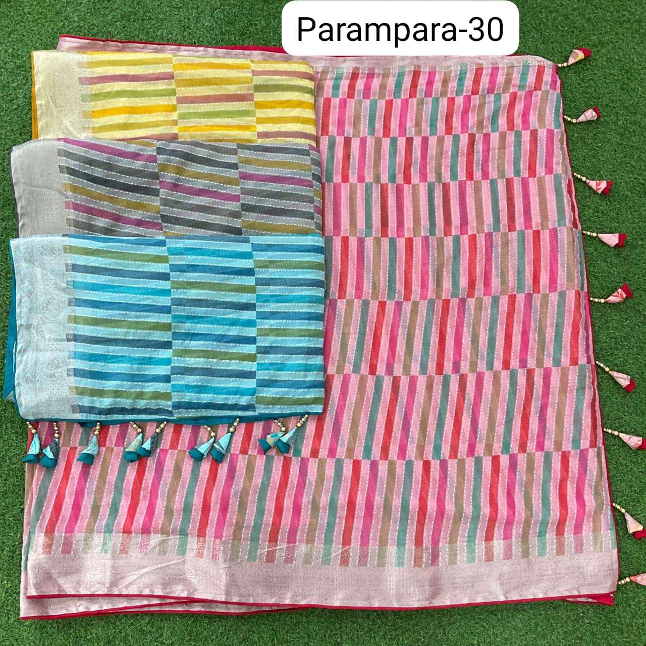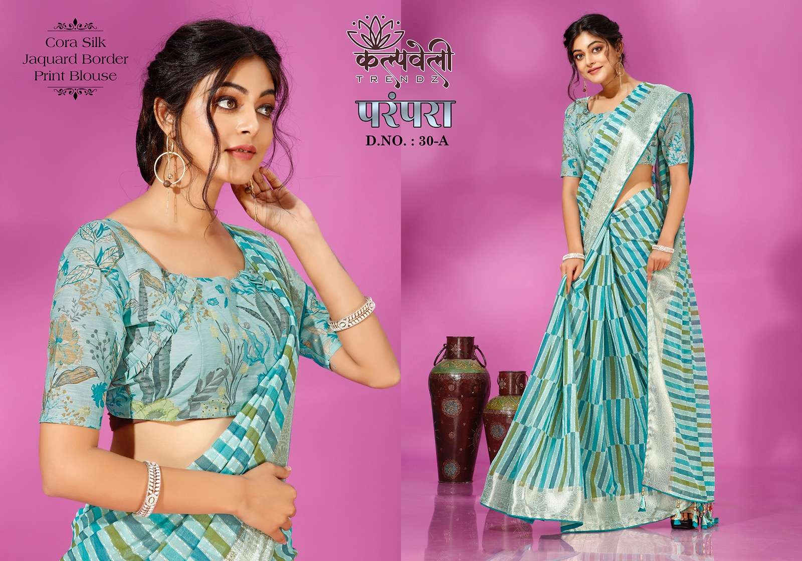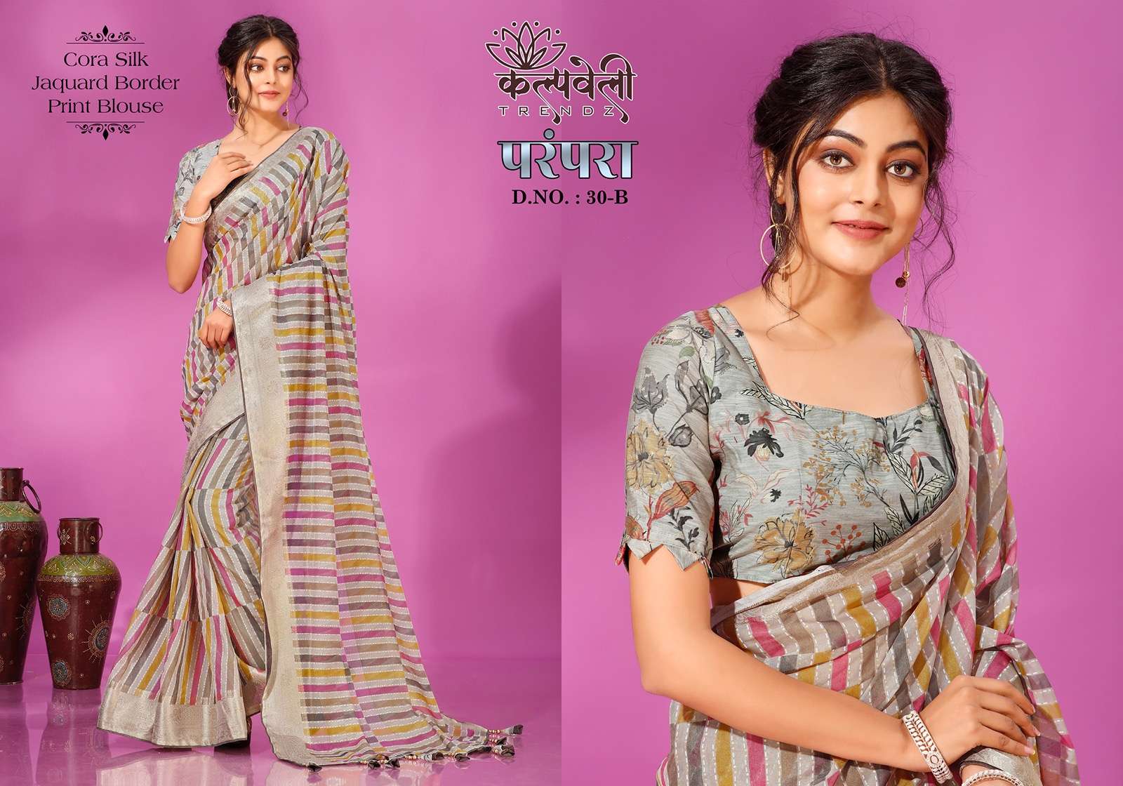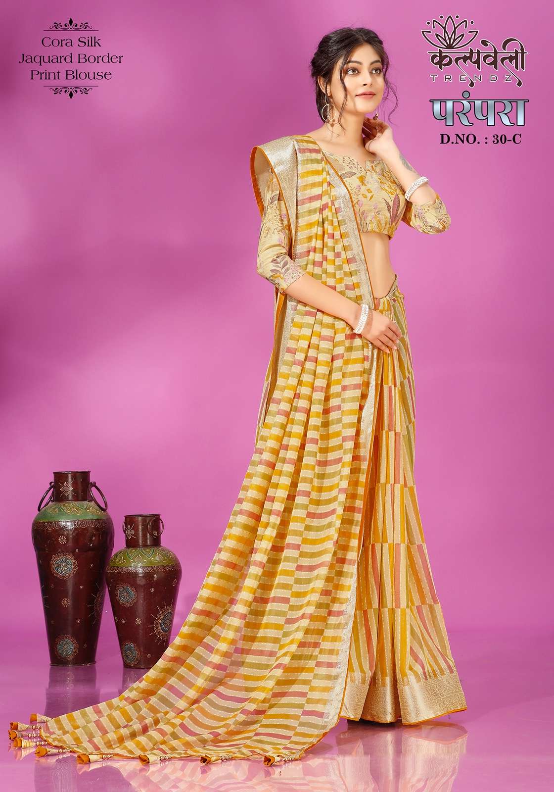 Parampara 30 no. -965/- Fabric: corra silk Concept: Beautiful print design with jacquard border pattern