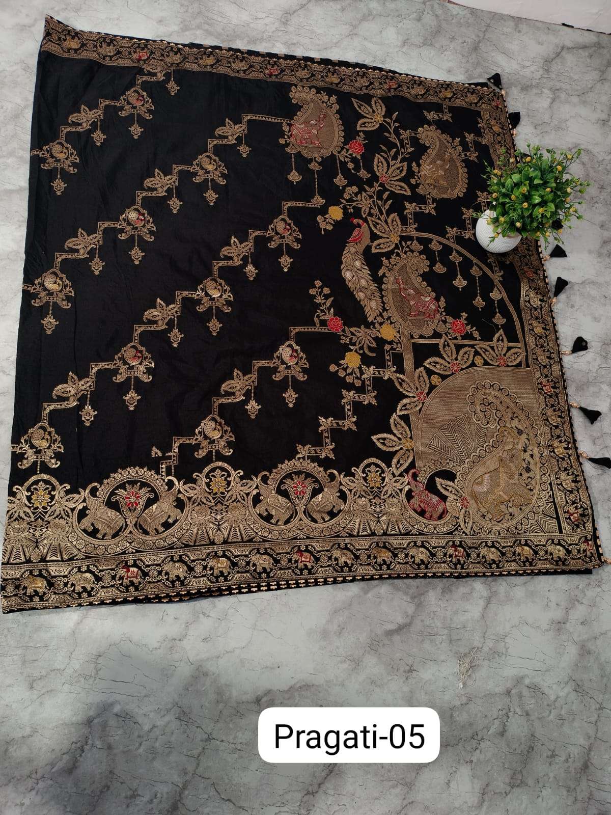 Pragati 05 no. -1450/- Fabric: Nylon saree Concept: Viscose jari patta saree with classic design Blouse: matching blouse