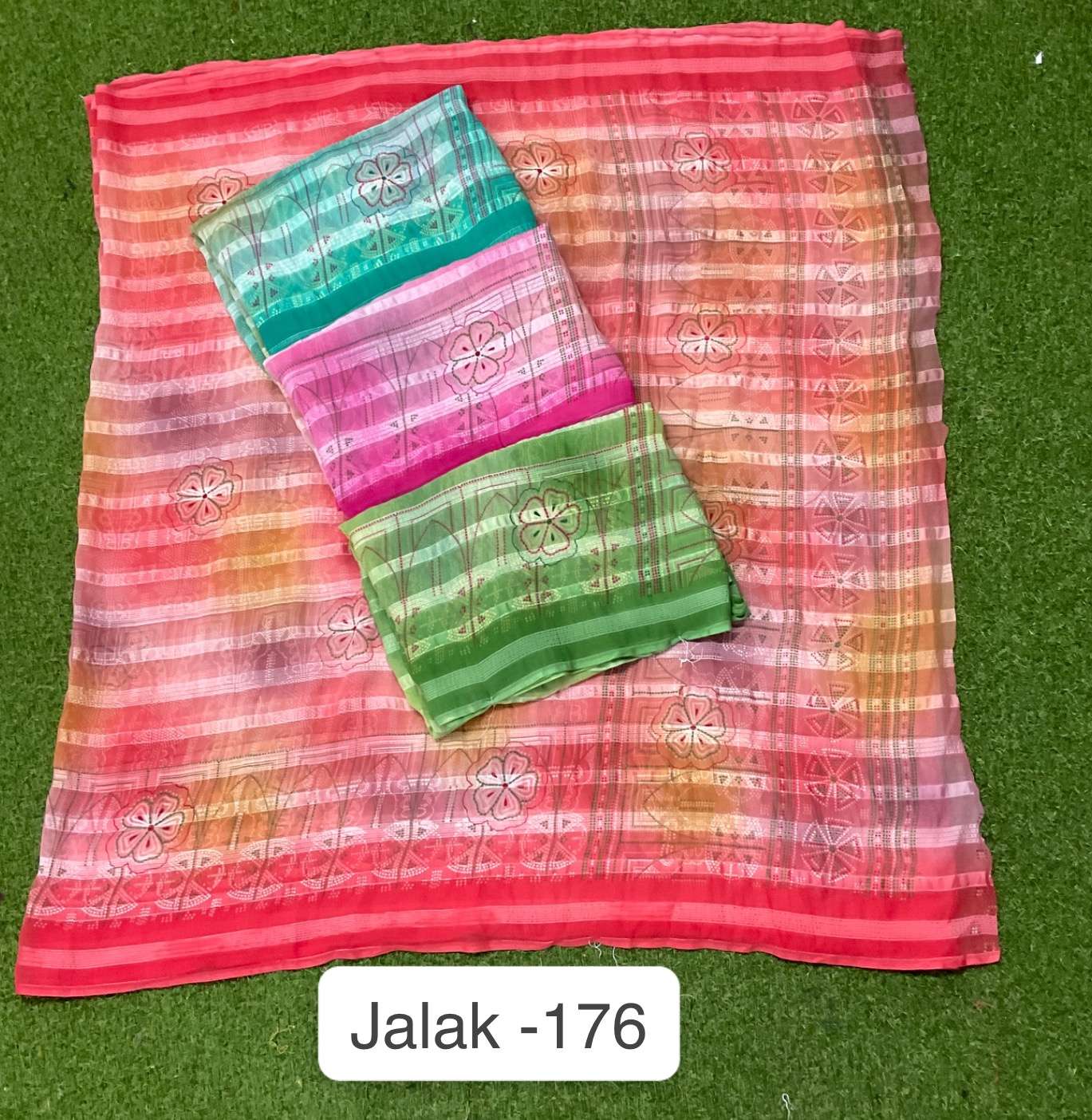 Jalak 181no. -599/- Fabric: Chiffon saree Concept:Beautiful flowers print with jari lining border Blouse: Butti blouse Packing : 08.10.2023📌 |