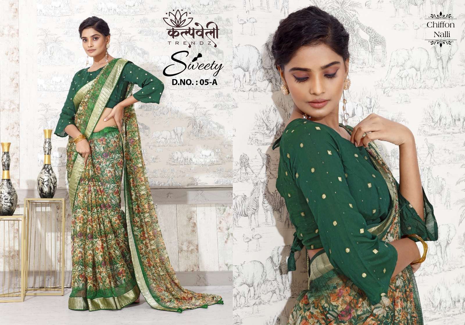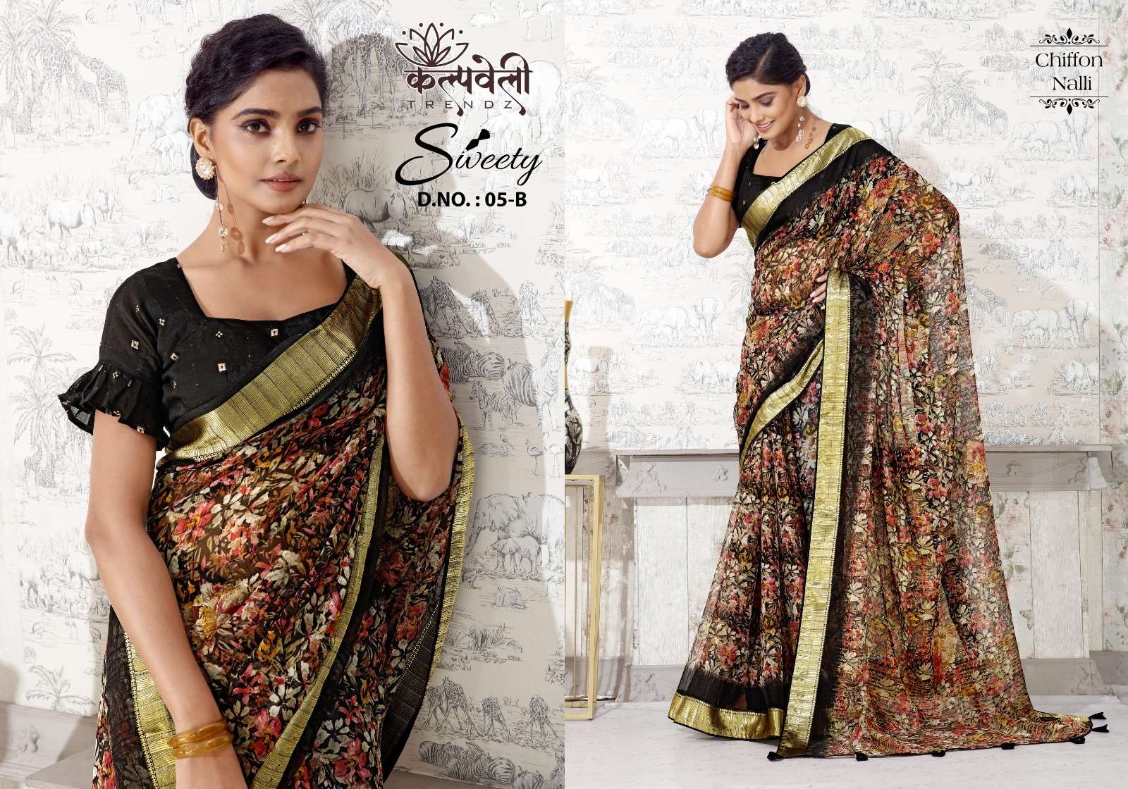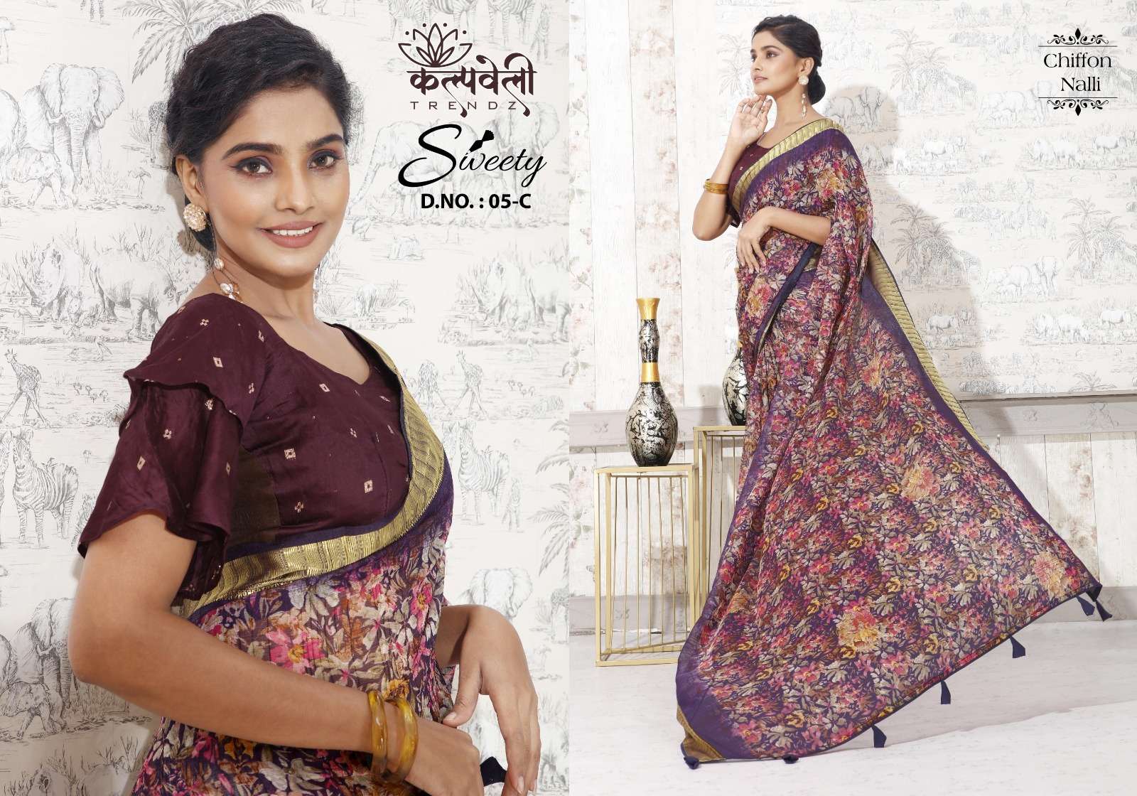 kalpavelly trendz present sweety 5 beautiful flower print sarees collection
