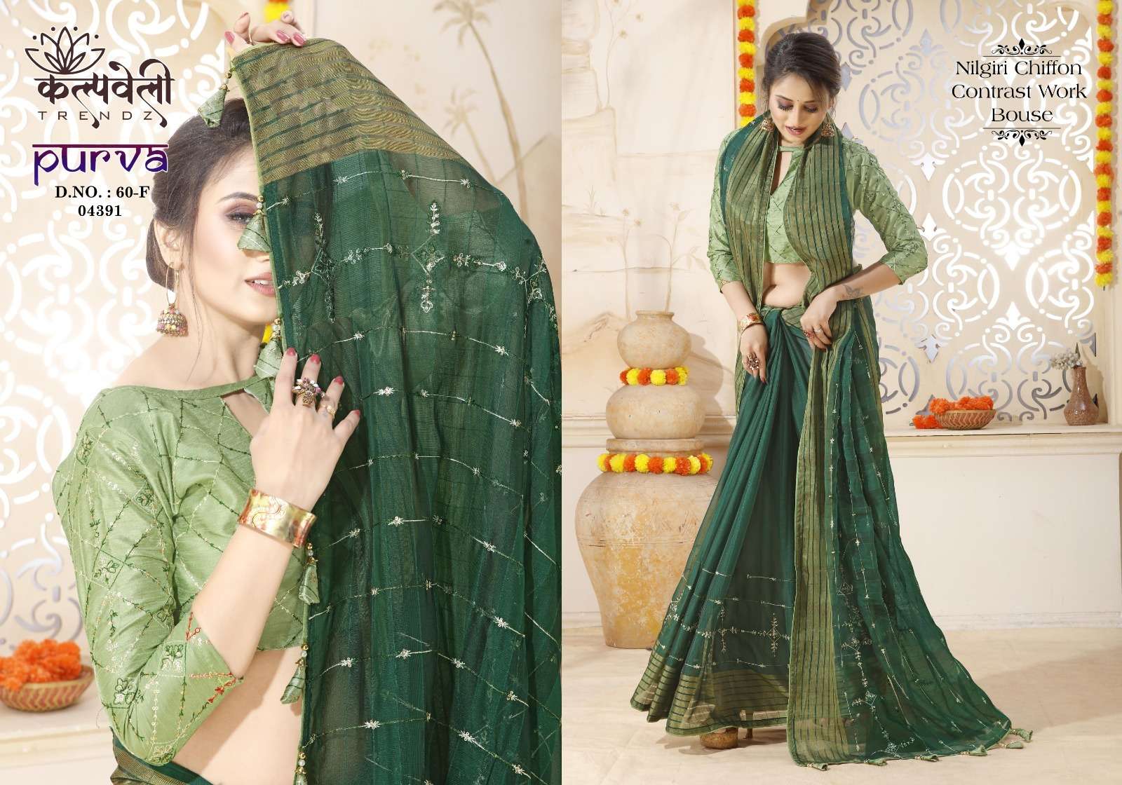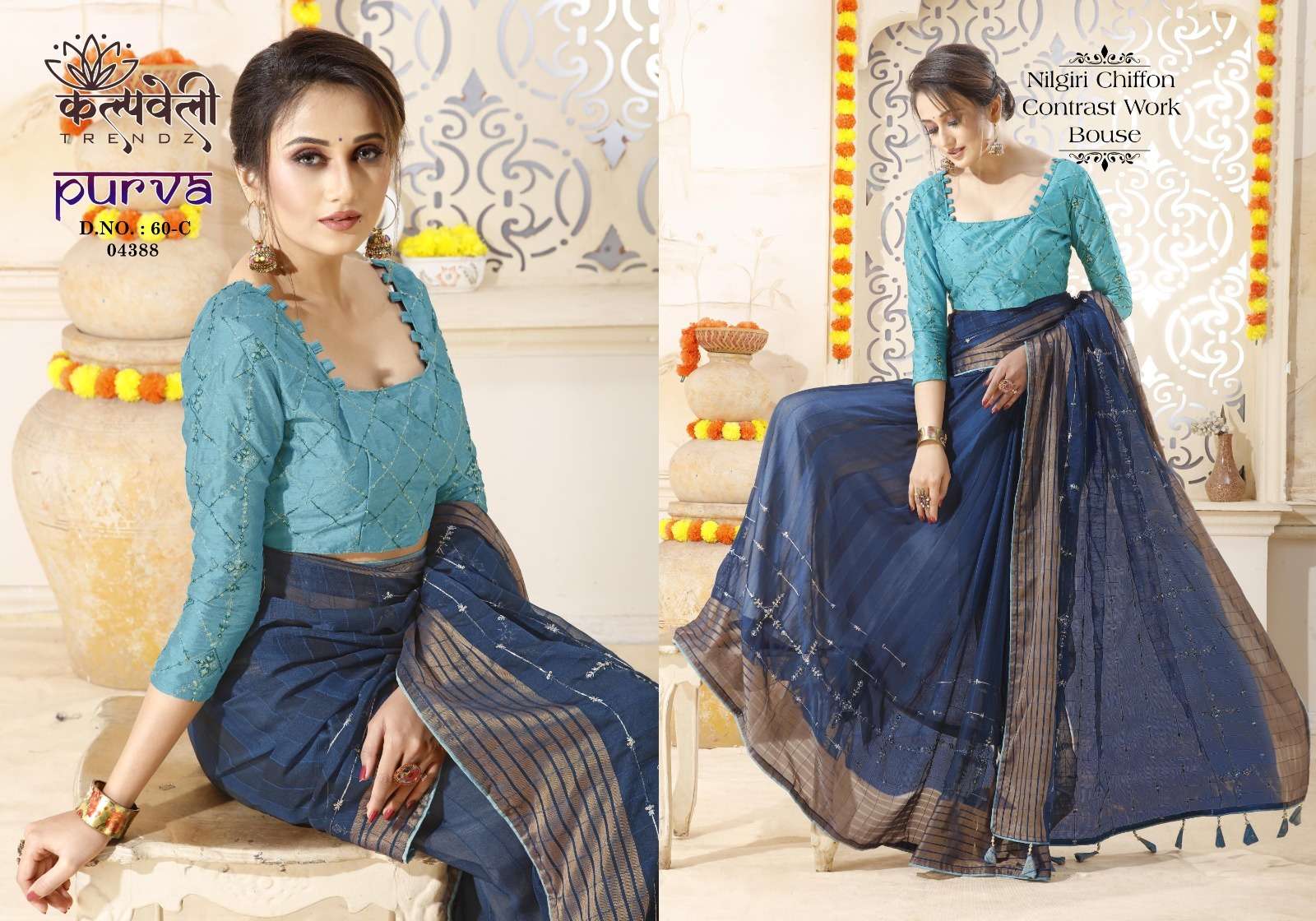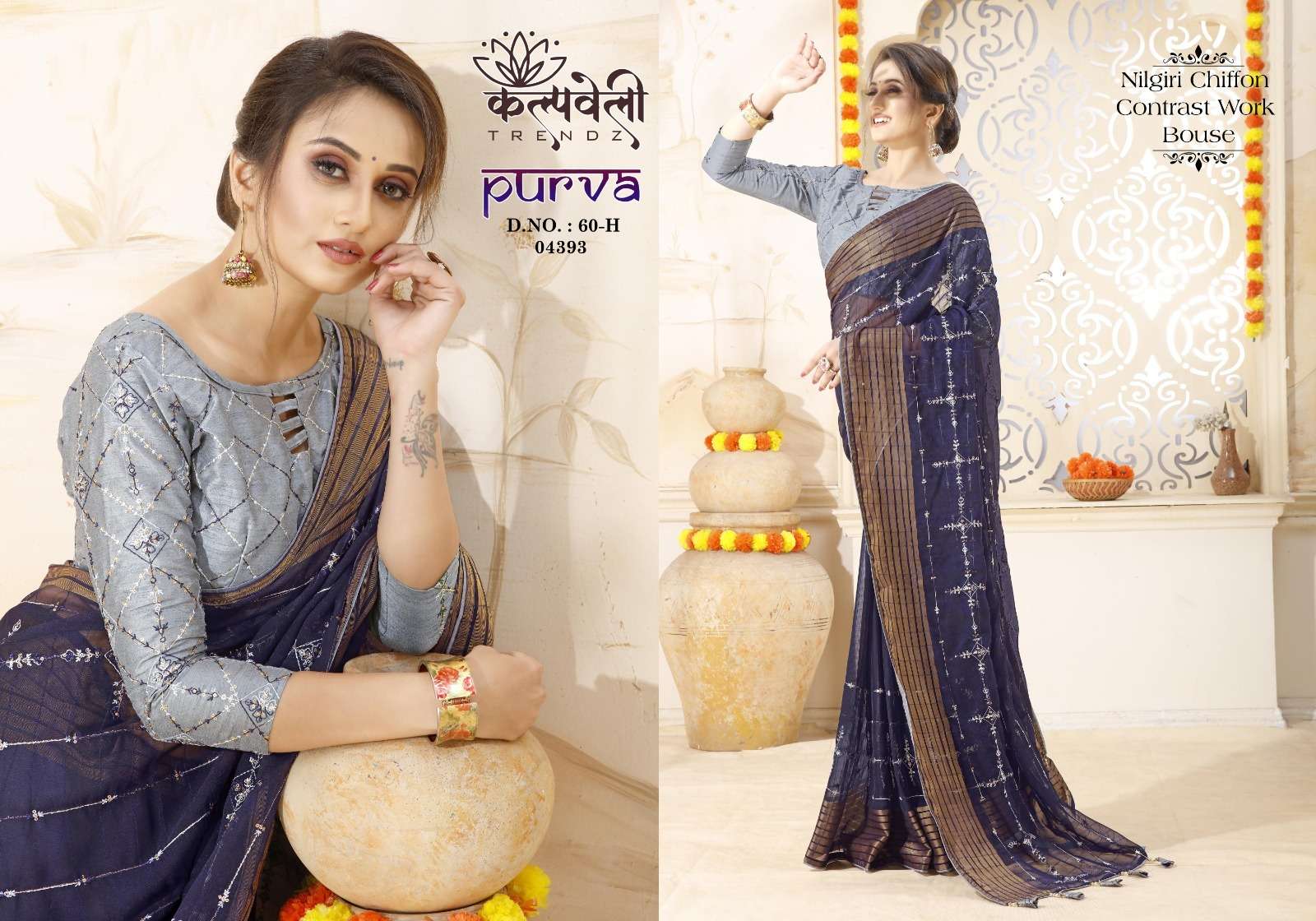 kalpavelly trendz purva 60 amazing embroidery work design chiffon sarees collection