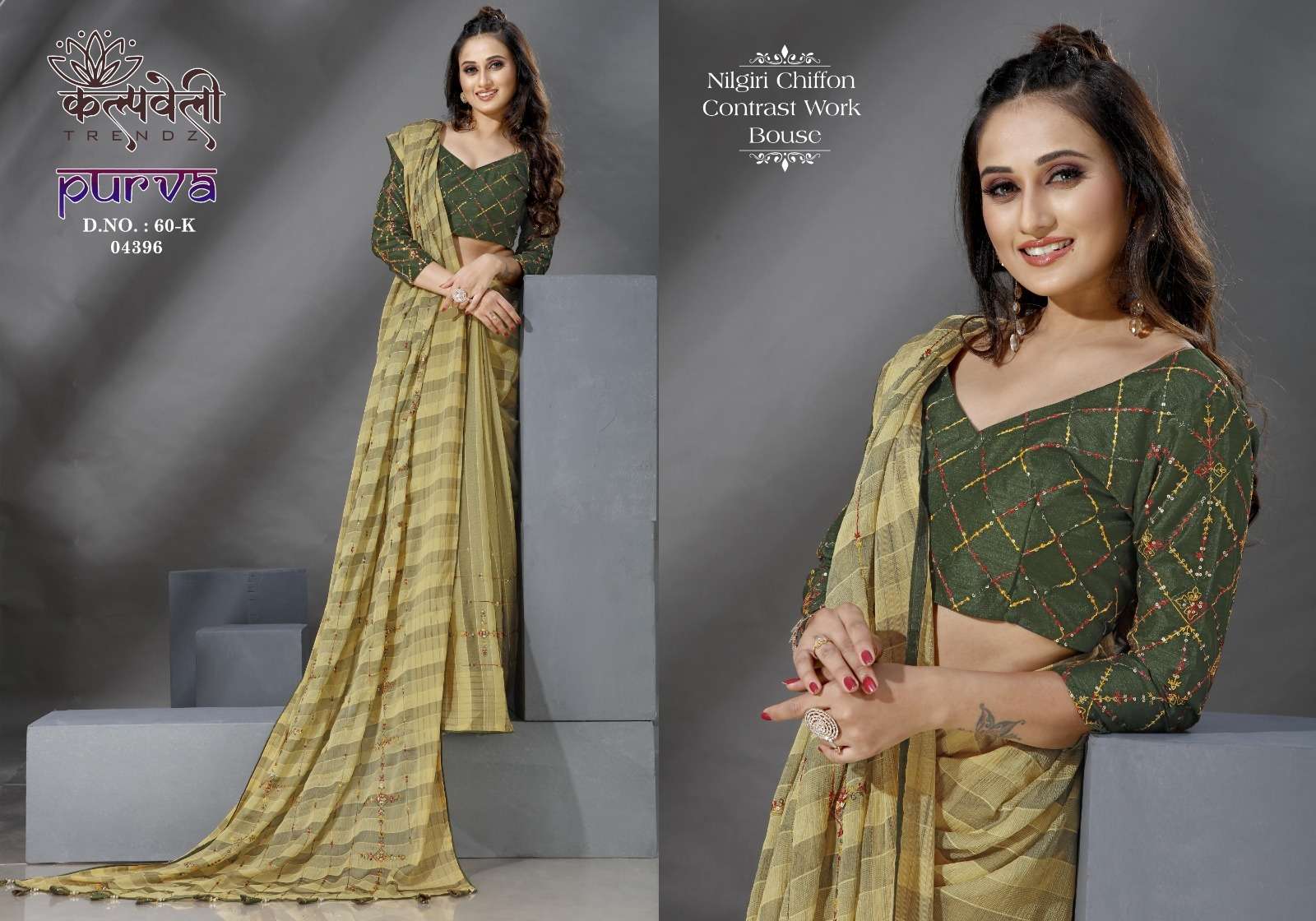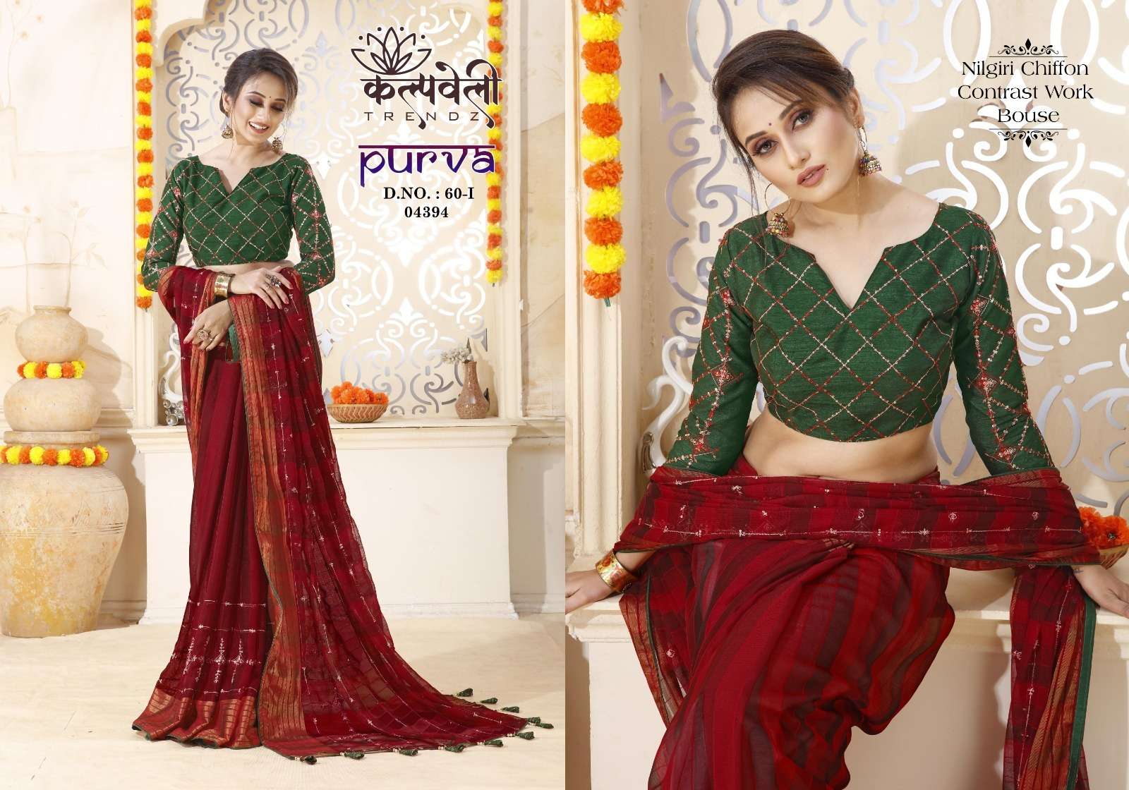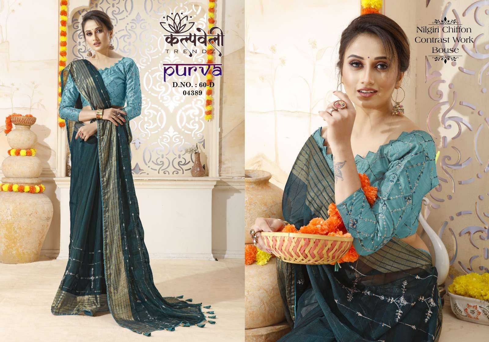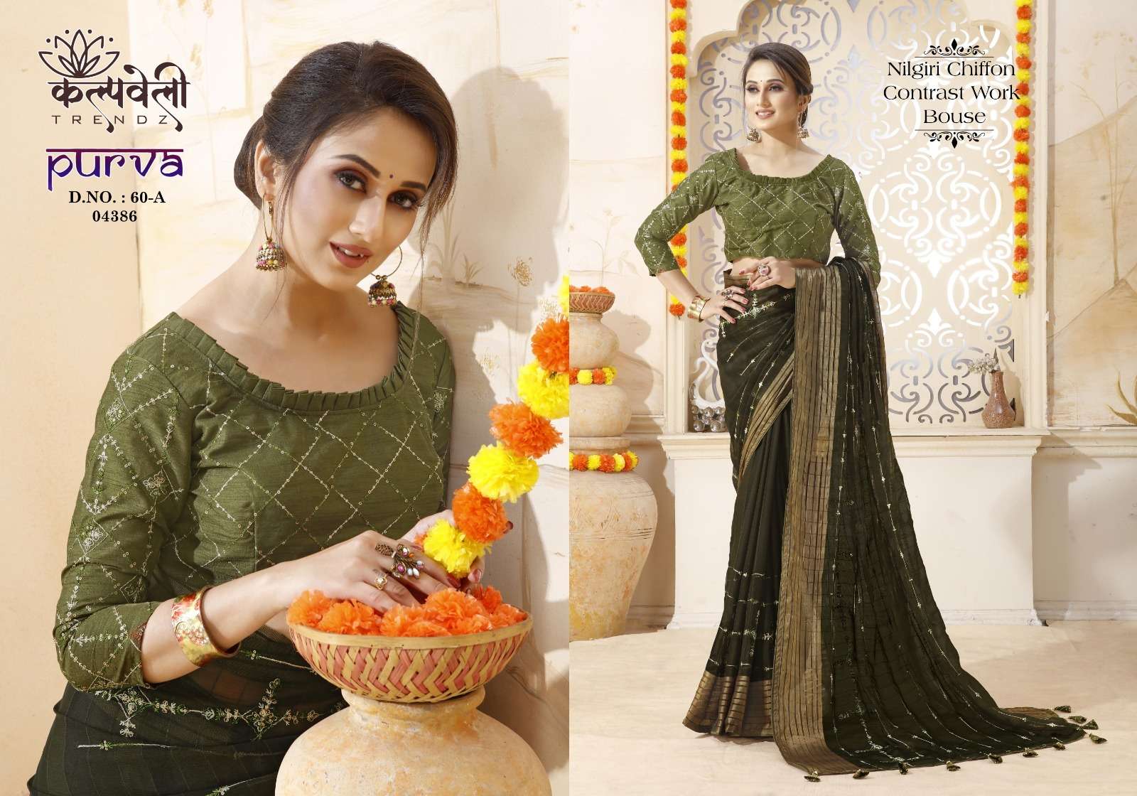 kalpavelly trendz purva 60 amazing embroidery work design chiffon sarees collection